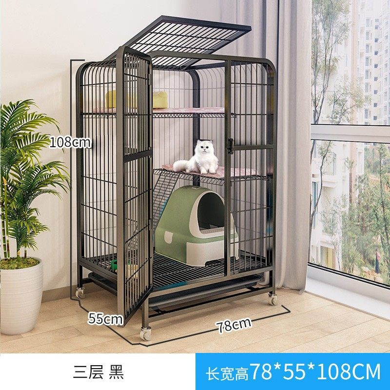 • 블랙 108 #3 층 사각 튜브 고양이 케이지 (78 × 55 × 108cm)