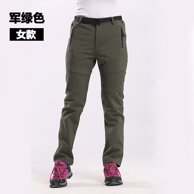 크로스 보더 남성과 여성의 폭행 바지 양털 부드러운 쉘 바지 오염 방지 따뜻한 가을과 겨울 두꺼운 등산 바지 남성 도매