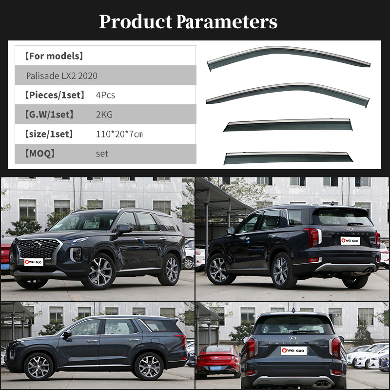 현대 파리 레인 실드 측면에 적합 창 디플렉터 Palisade LX2 창 바이저스토어 가기