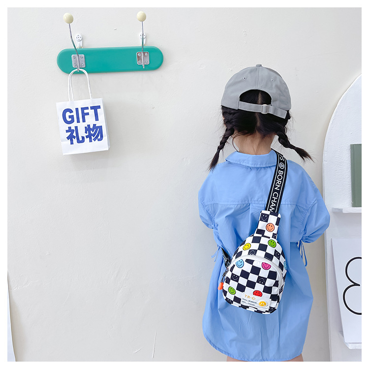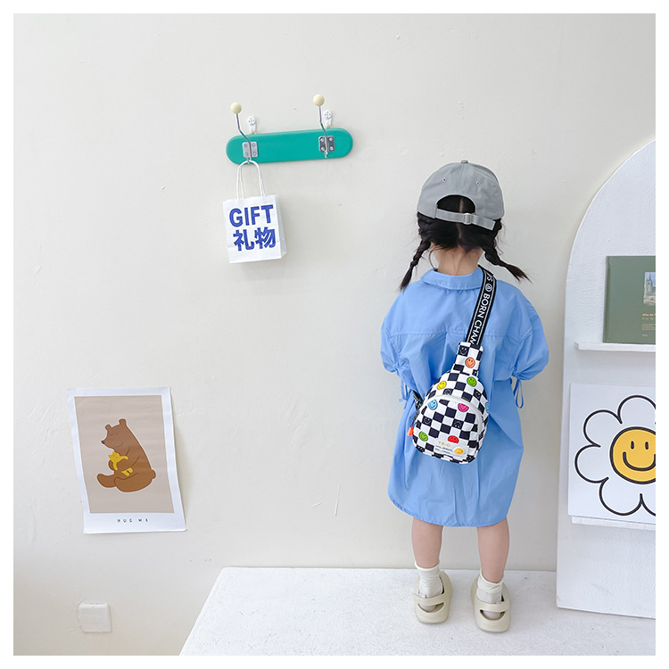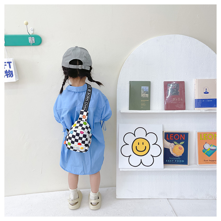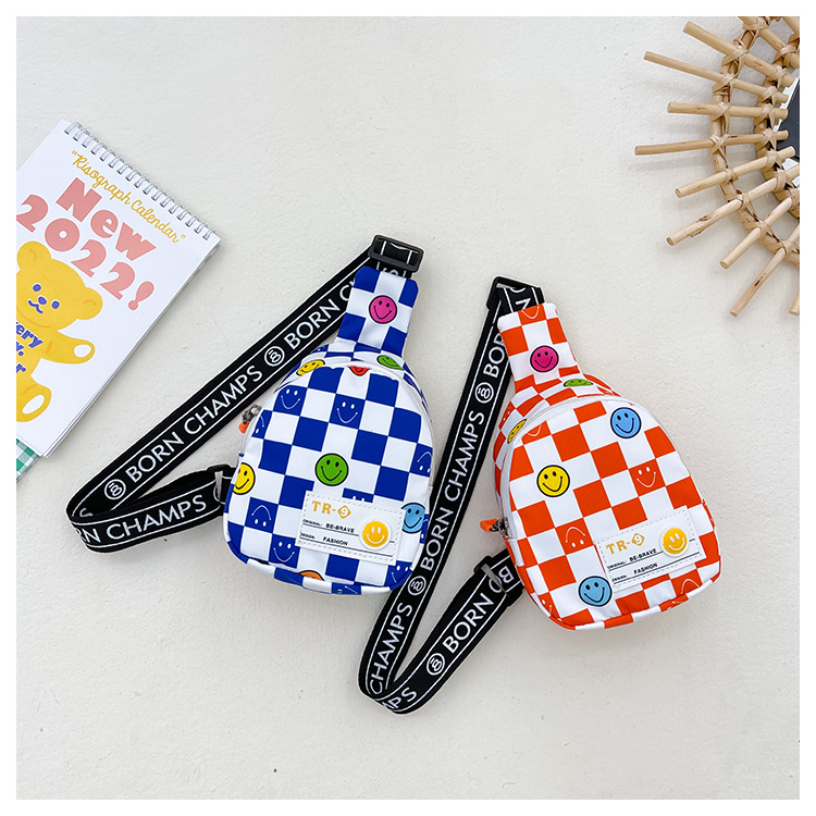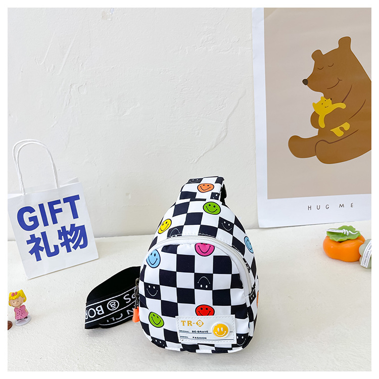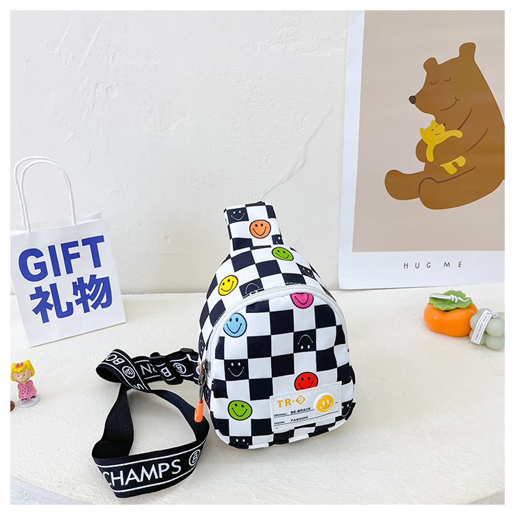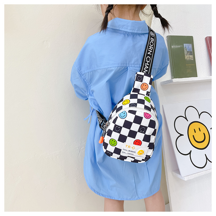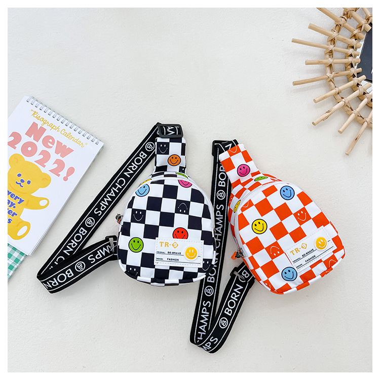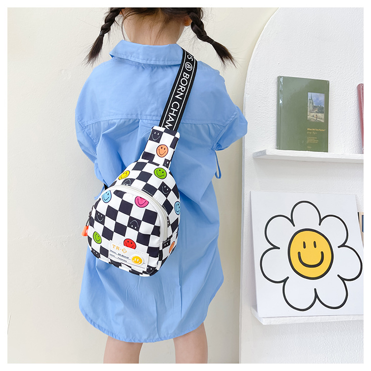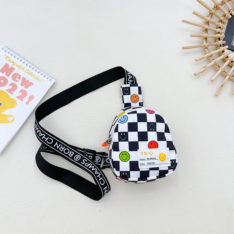 한국 스타일 스마일 어린이 가슴 가방 2022 새로운 체스 판 체크 보드 소년의 잘 생긴 크로스 바디 백 귀여운 아기 동전 지갑 유행