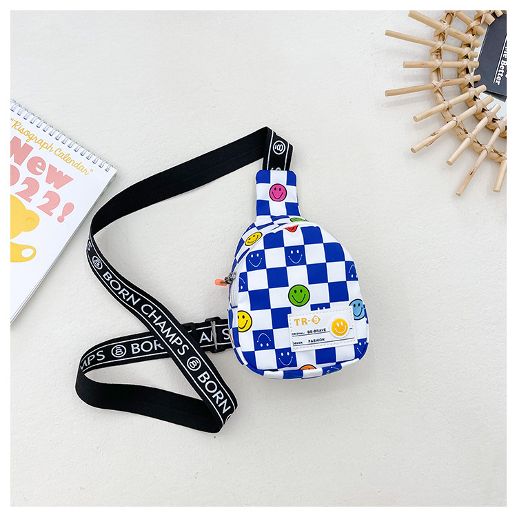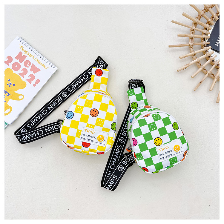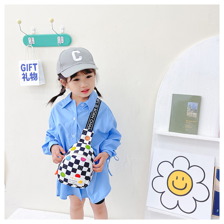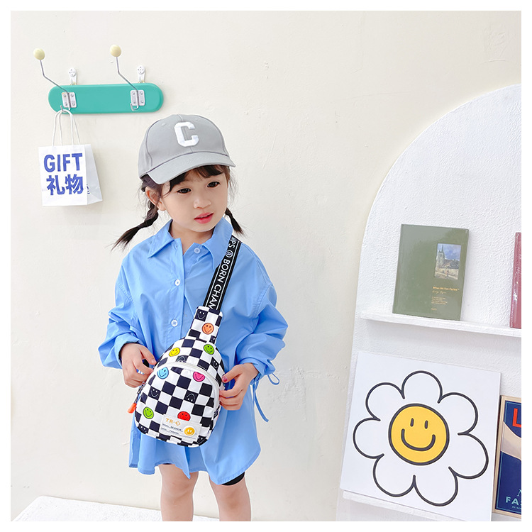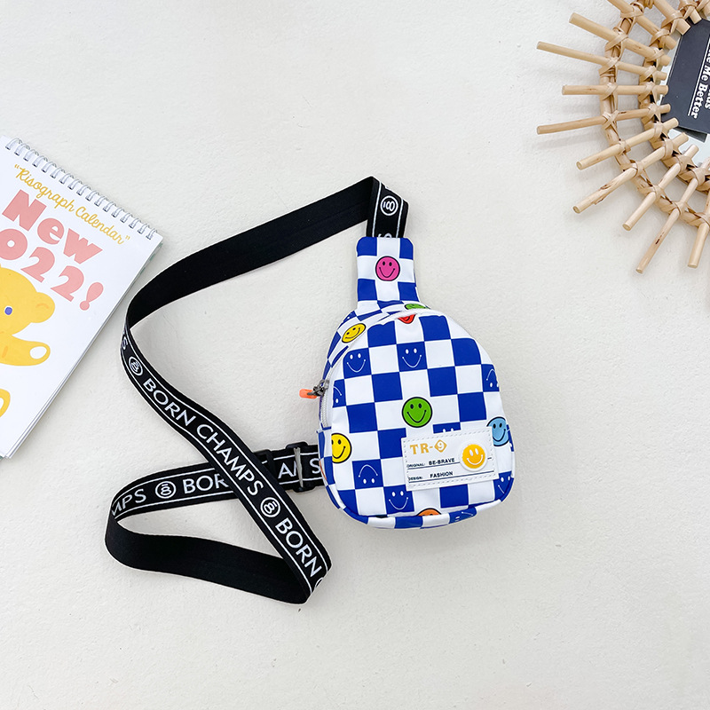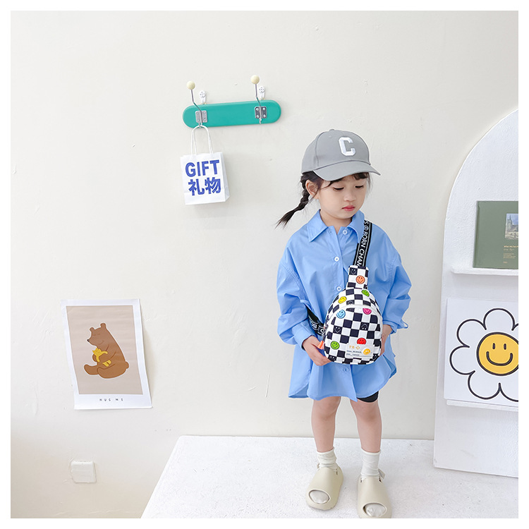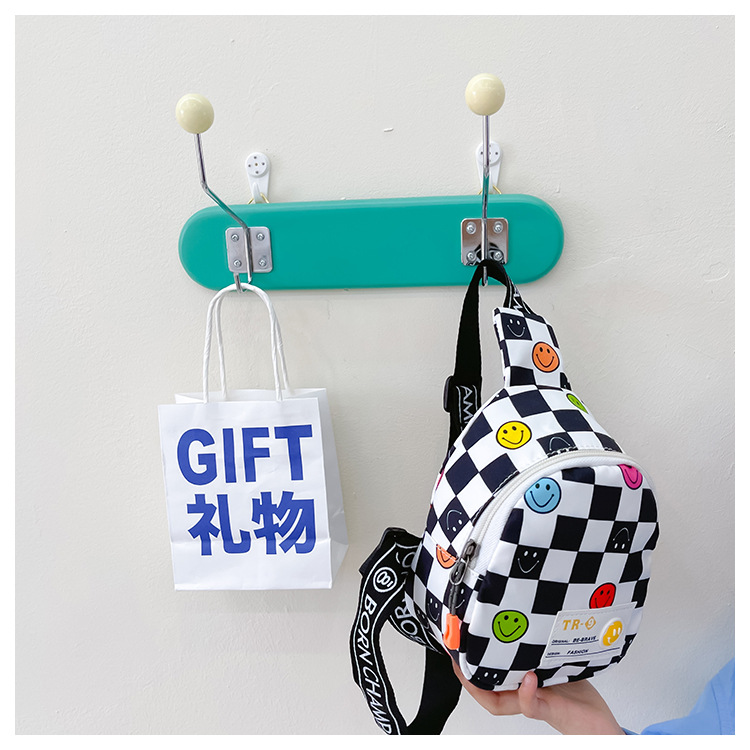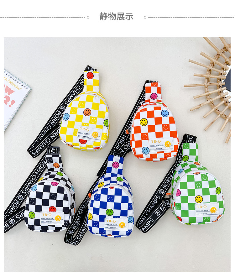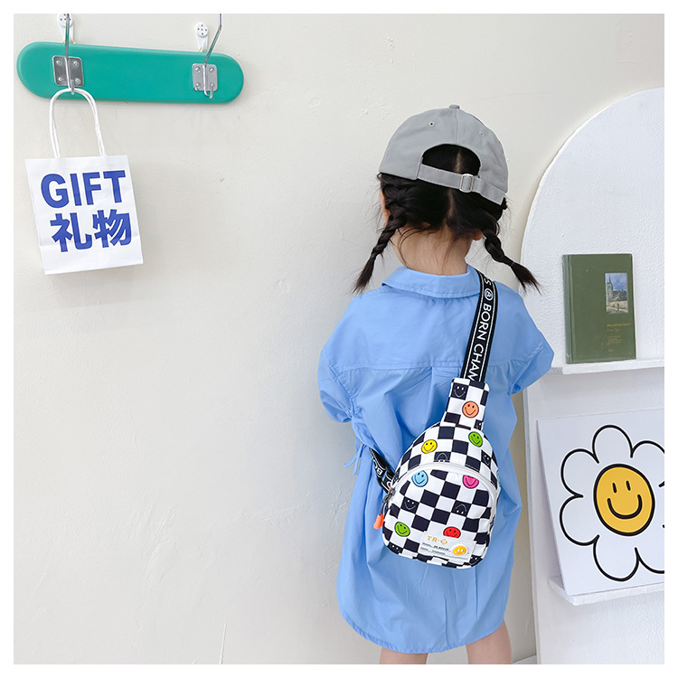 한국 스타일 스마일 어린이 가슴 가방 2022 새로운 체스 판 체크 보드 소년의 잘 생긴 크로스 바디 백 귀여운 아기 동전 지갑 유행