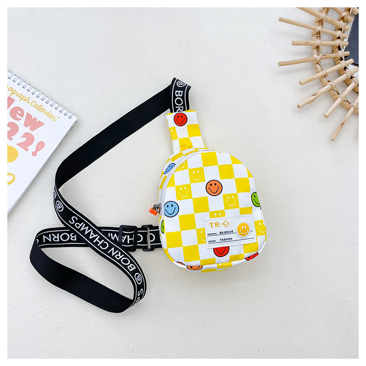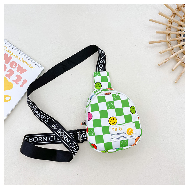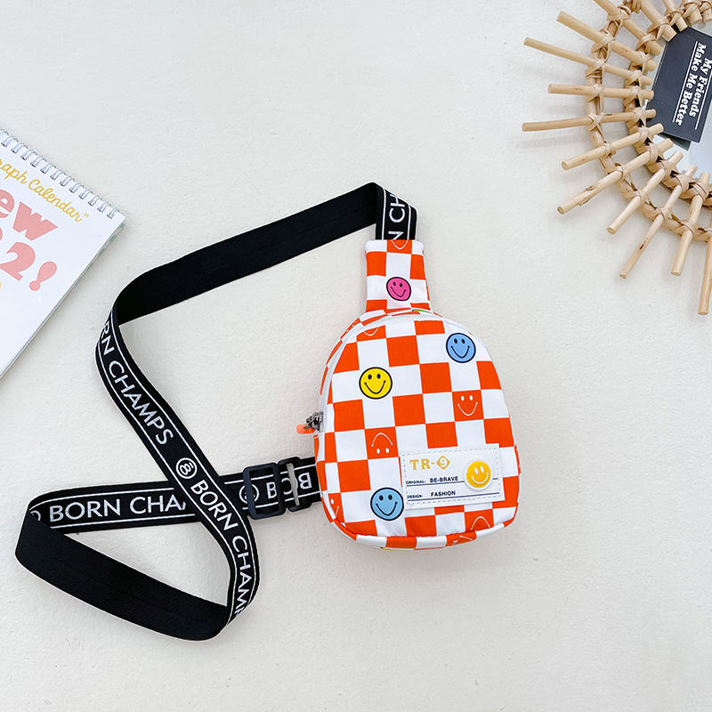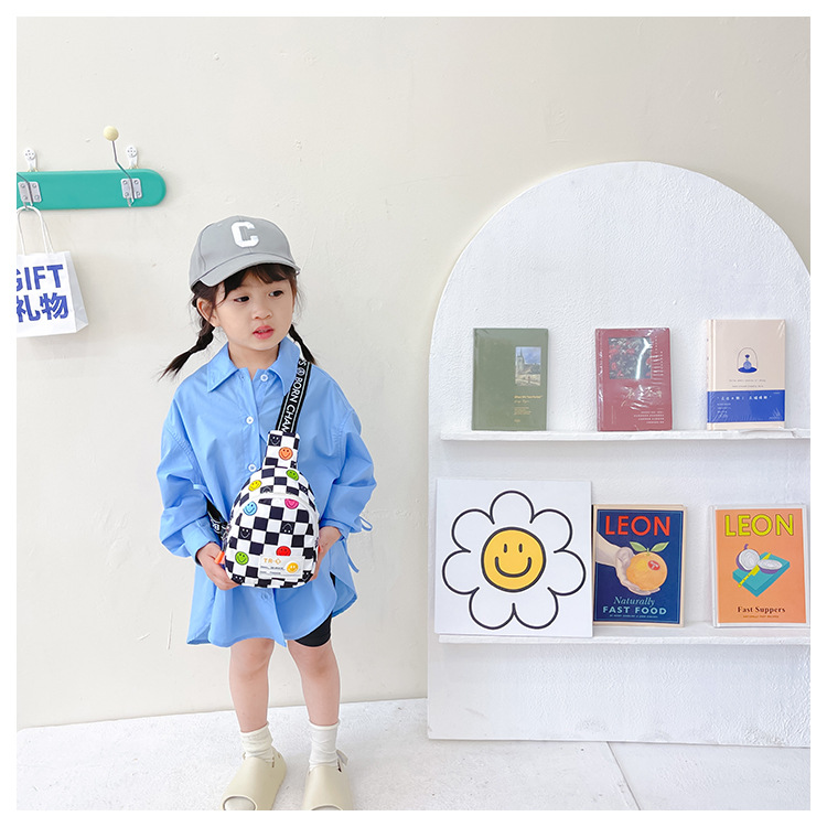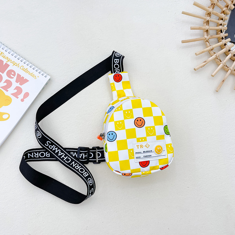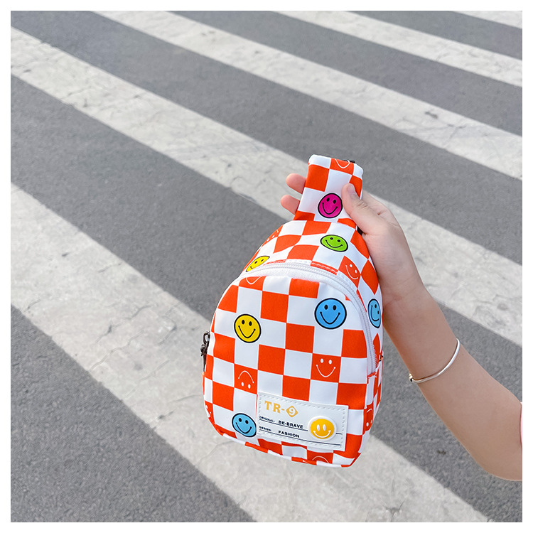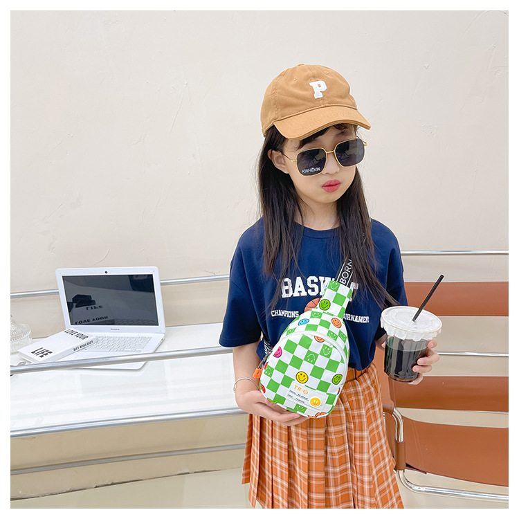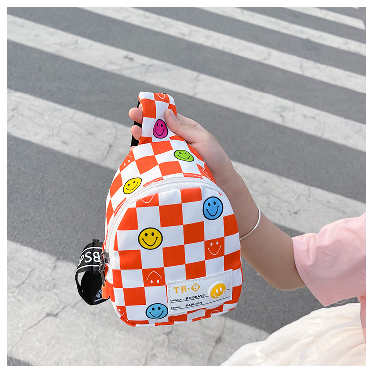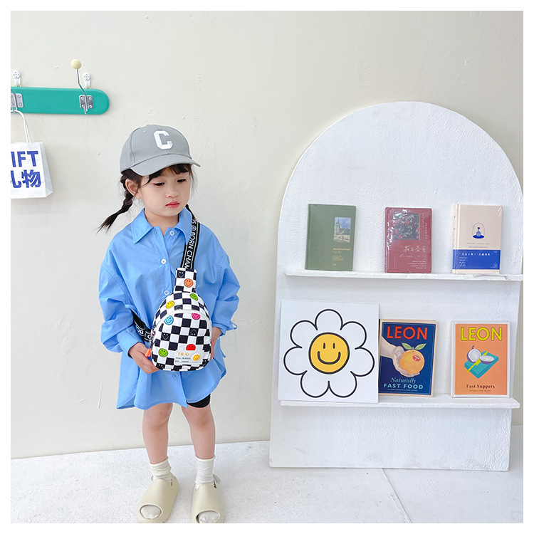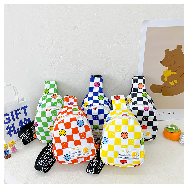 한국 스타일 스마일 어린이 가슴 가방 2022 새로운 체스 판 체크 보드 소년의 잘 생긴 크로스 바디 백 귀여운 아기 동전 지갑 유행