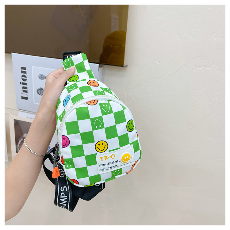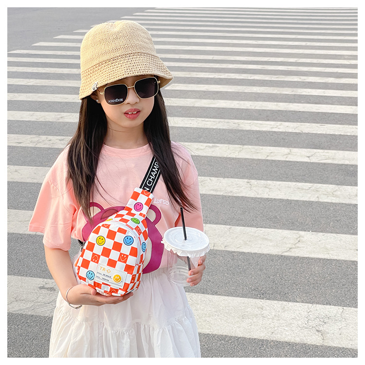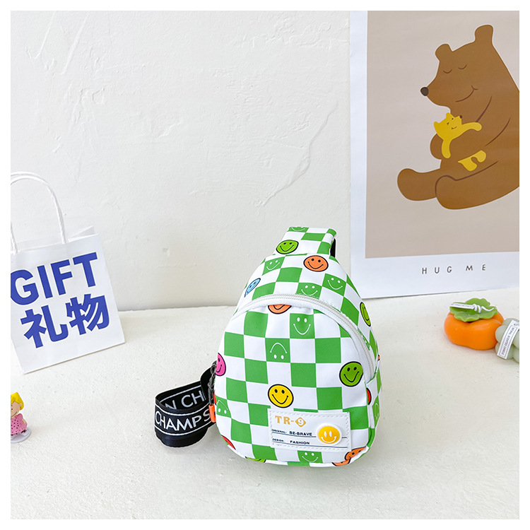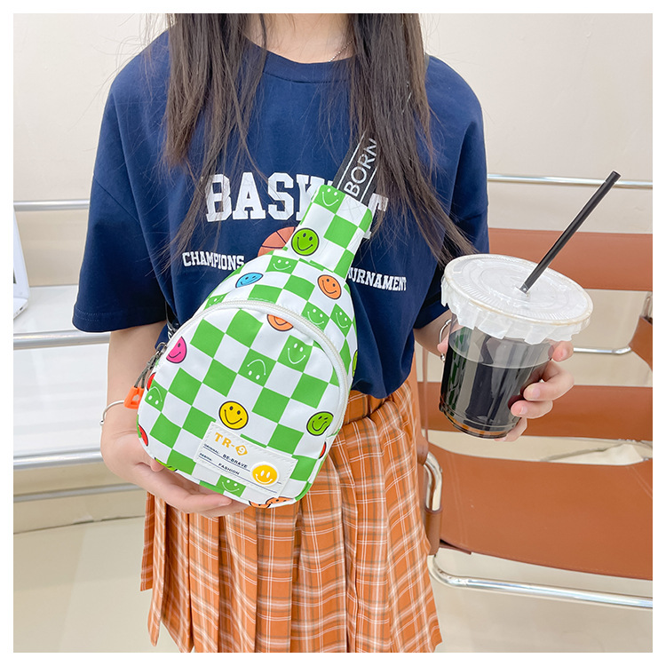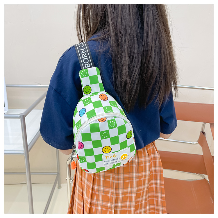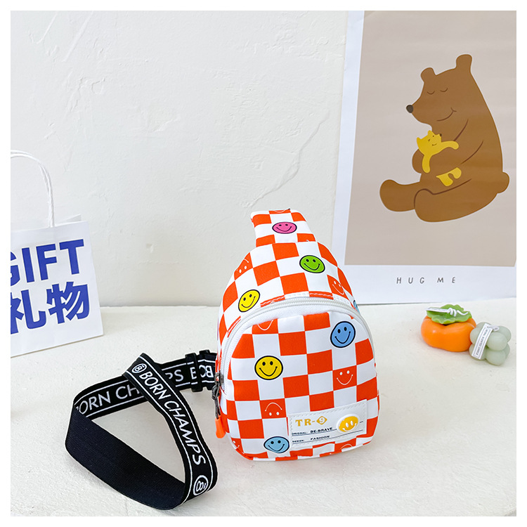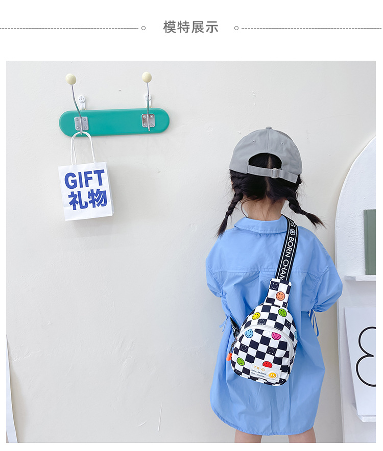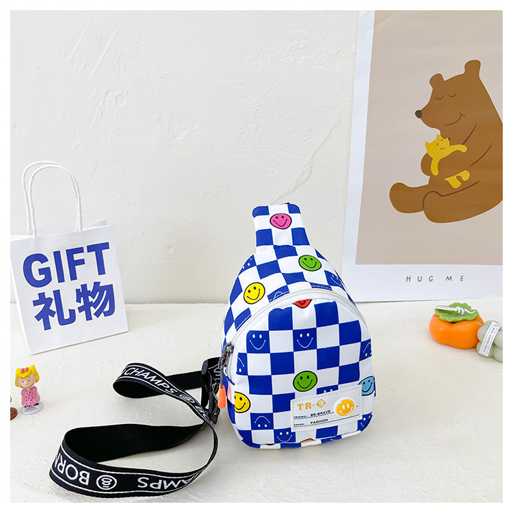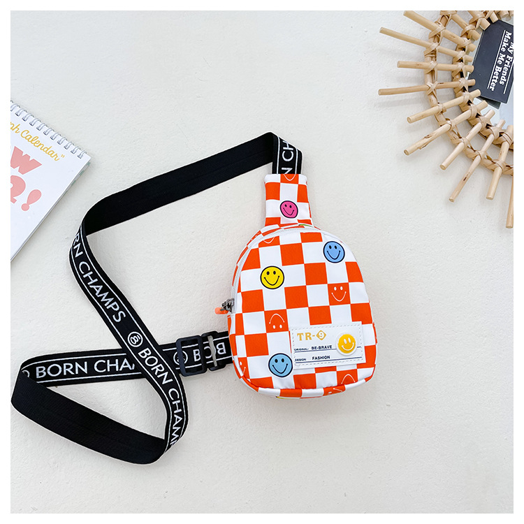 한국 스타일 스마일 어린이 가슴 가방 2022 새로운 체스 판 체크 보드 소년의 잘 생긴 크로스 바디 백 귀여운 아기 동전 지갑 유행