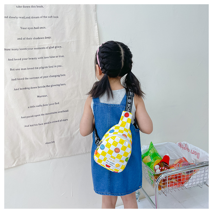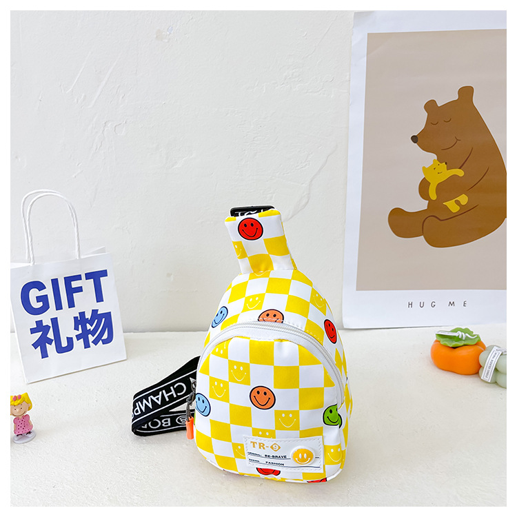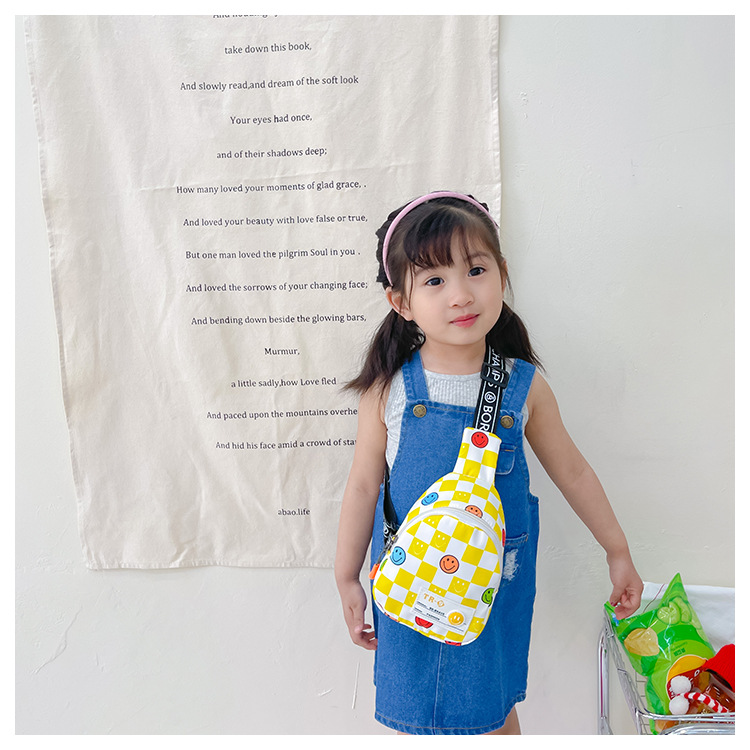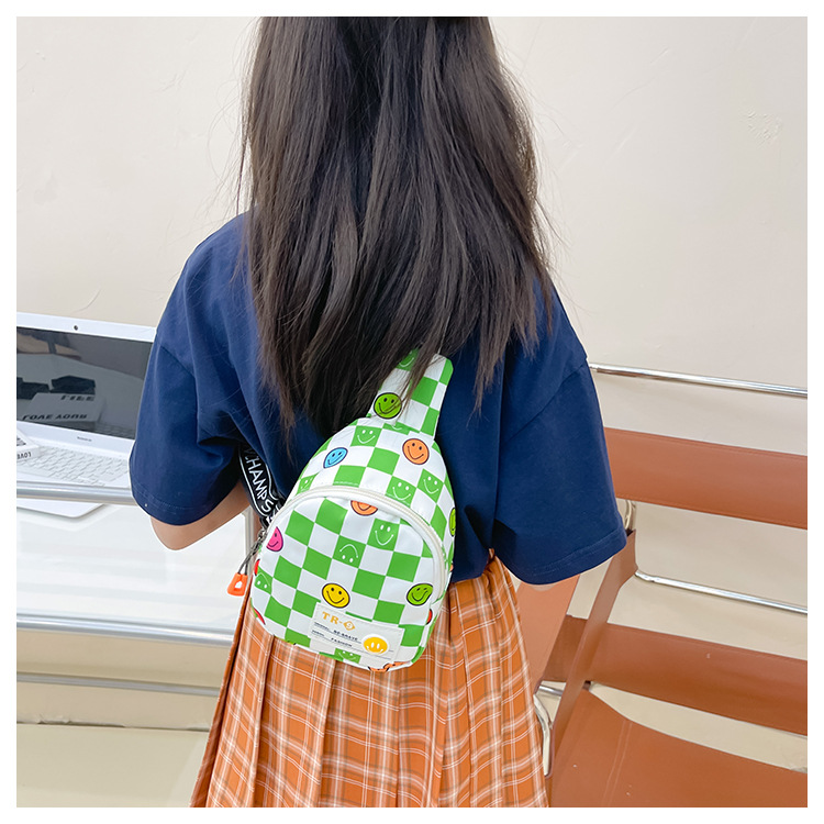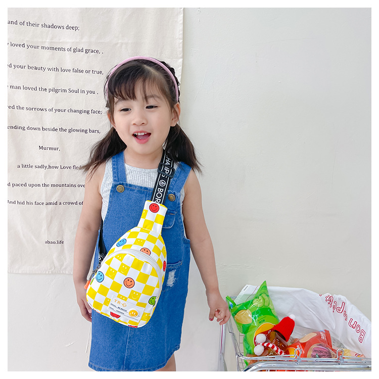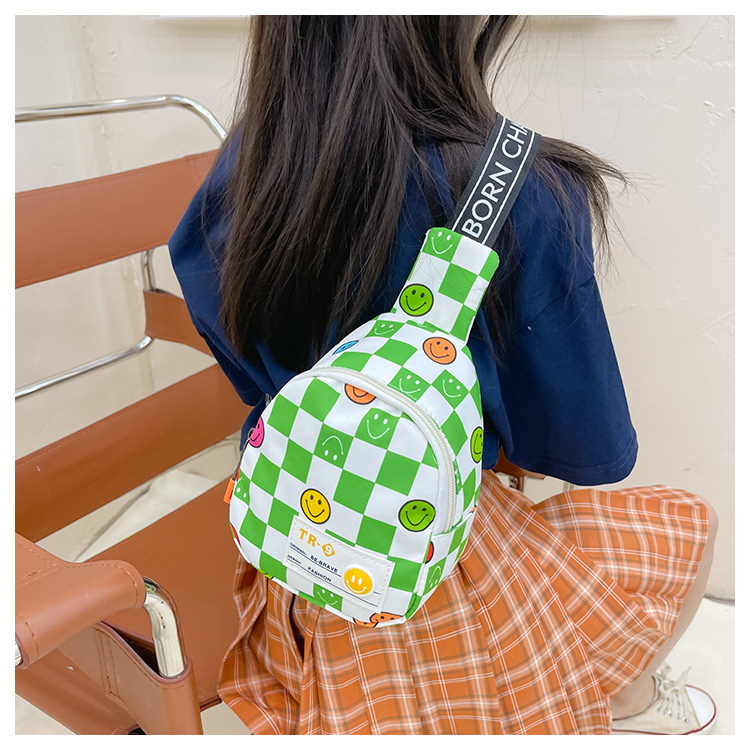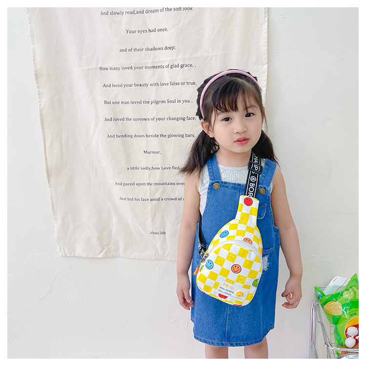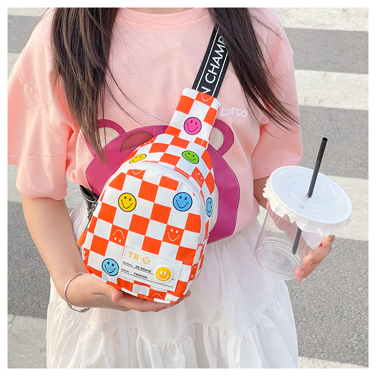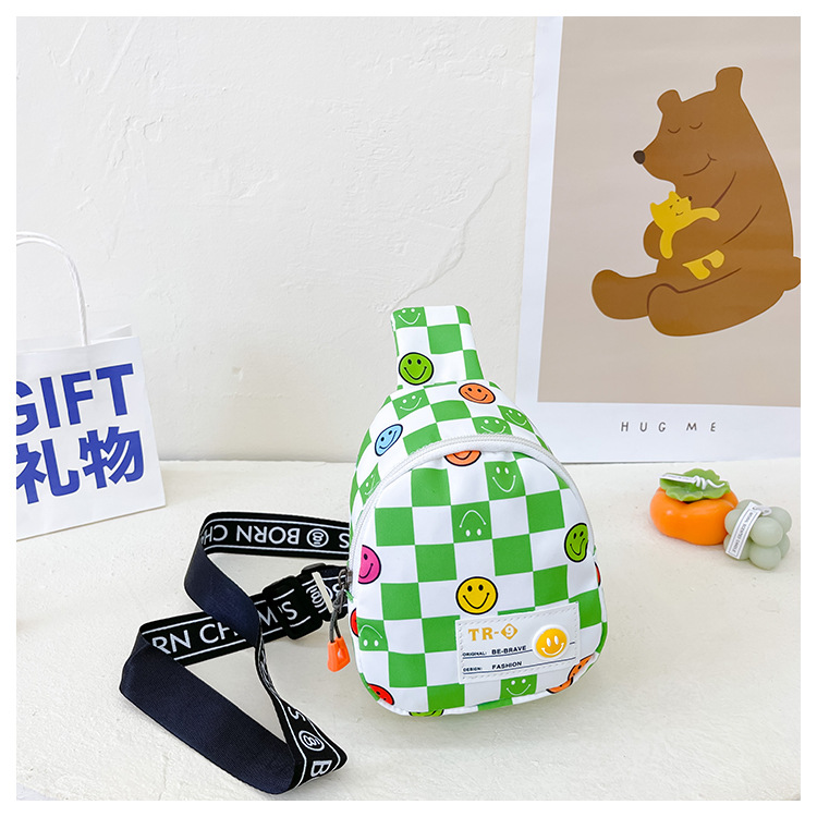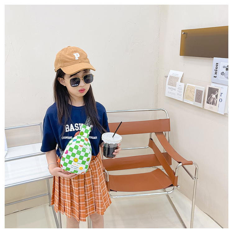 한국 스타일 스마일 어린이 가슴 가방 2022 새로운 체스 판 체크 보드 소년의 잘 생긴 크로스 바디 백 귀여운 아기 동전 지갑 유행