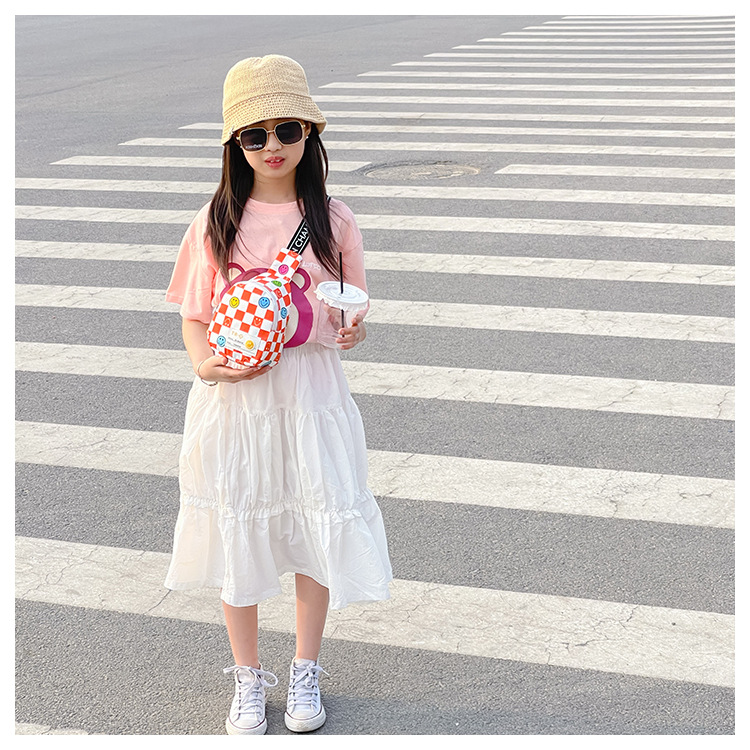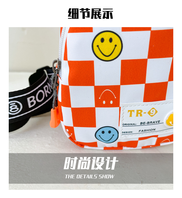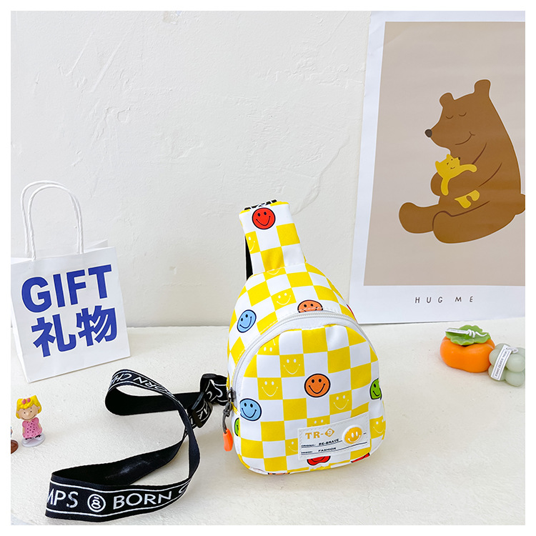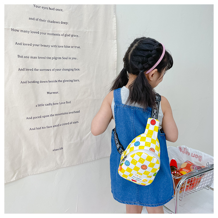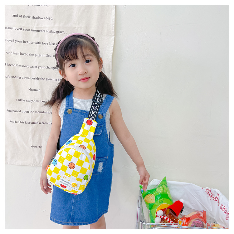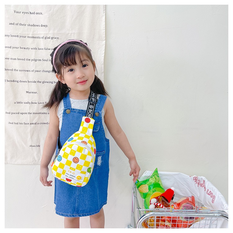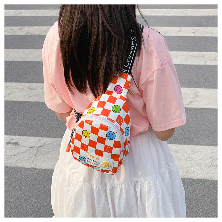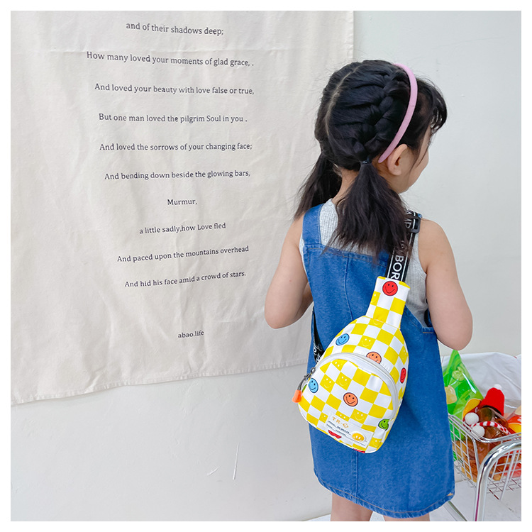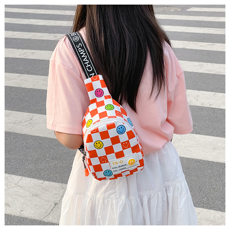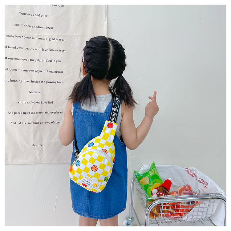 한국 스타일 스마일 어린이 가슴 가방 2022 새로운 체스 판 체크 보드 소년의 잘 생긴 크로스 바디 백 귀여운 아기 동전 지갑 유행