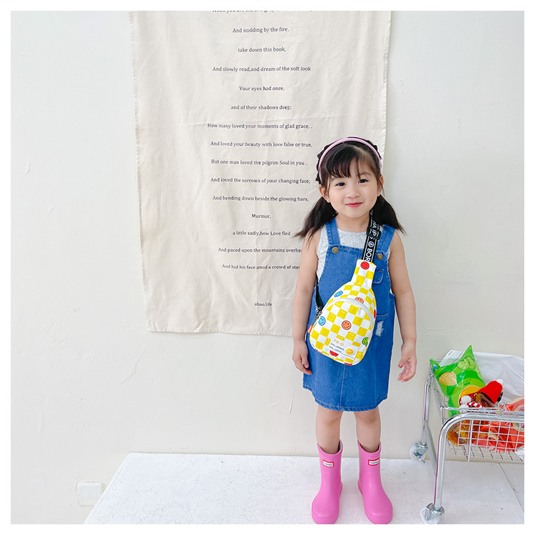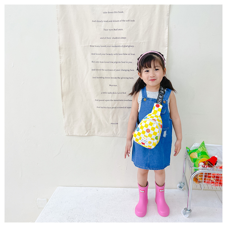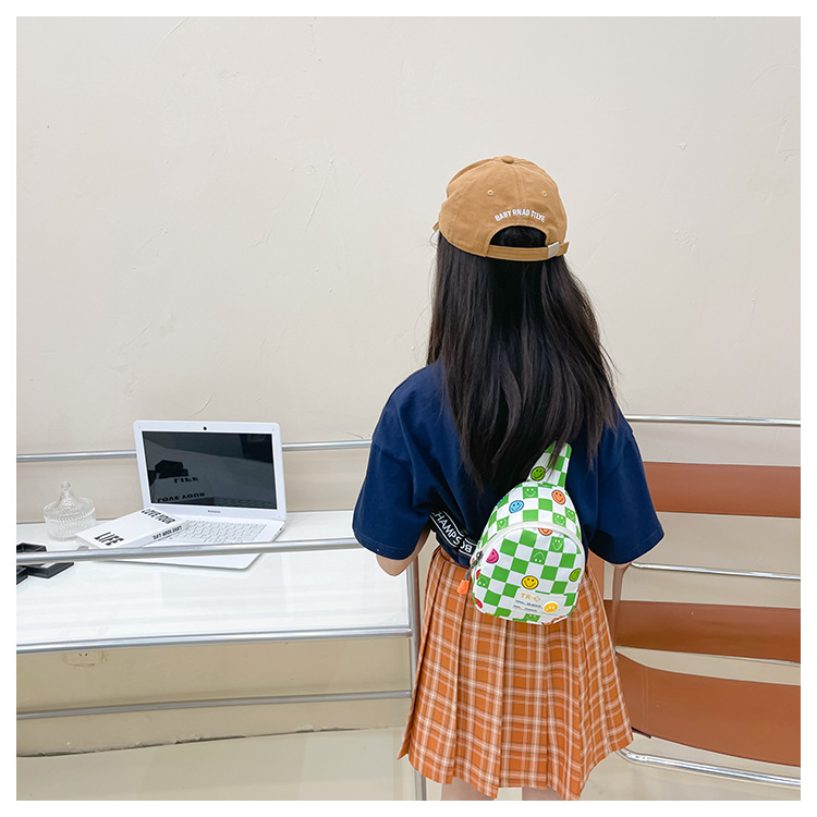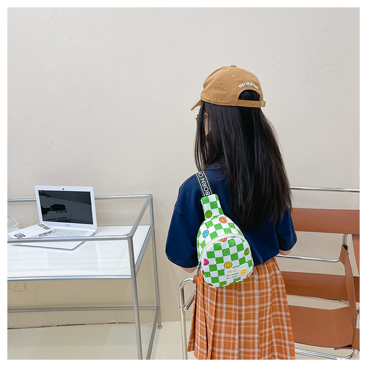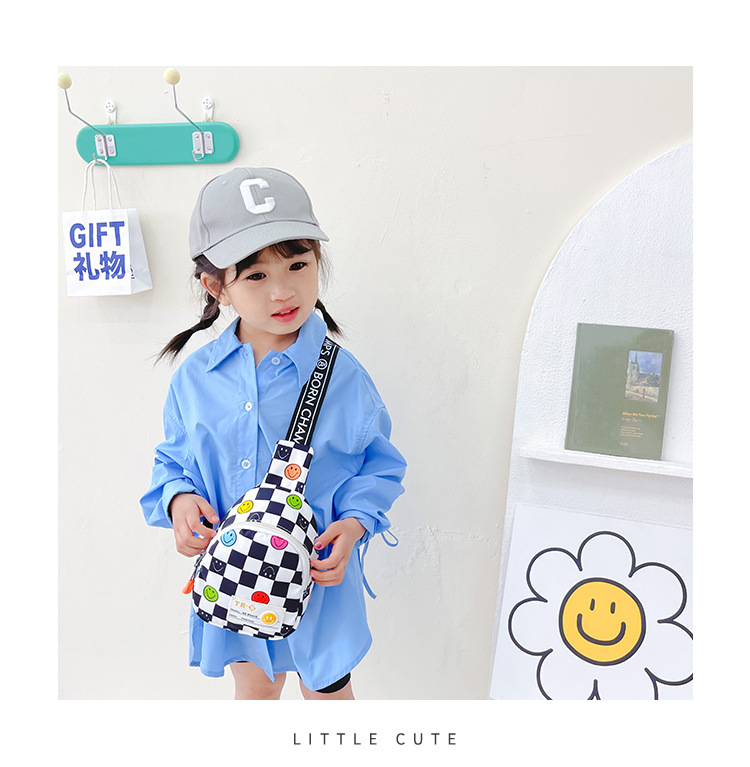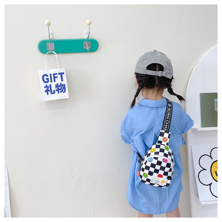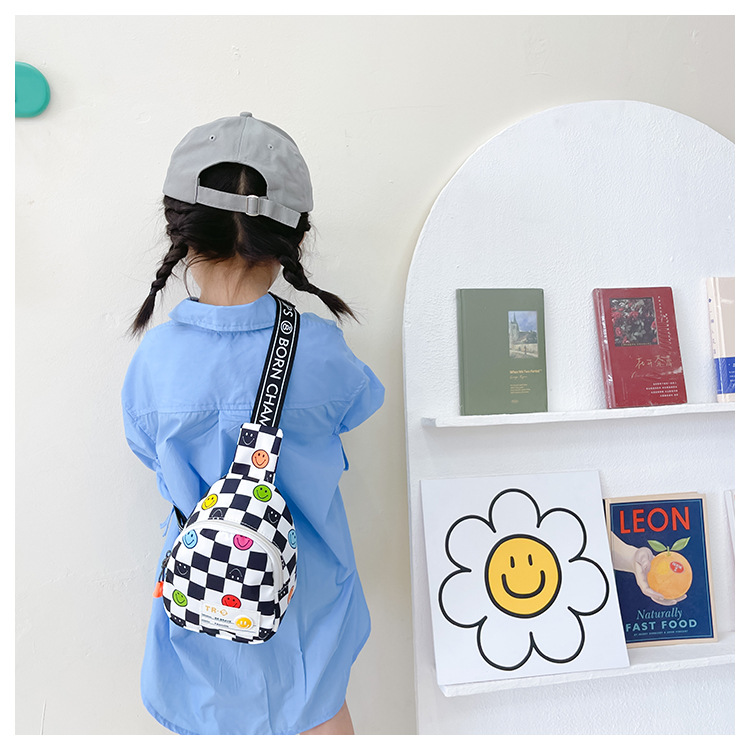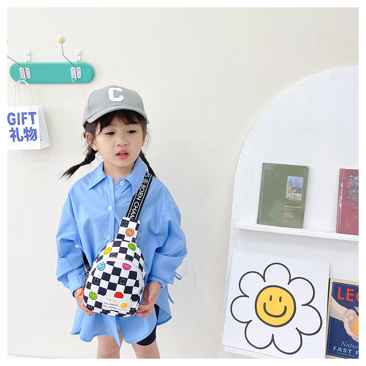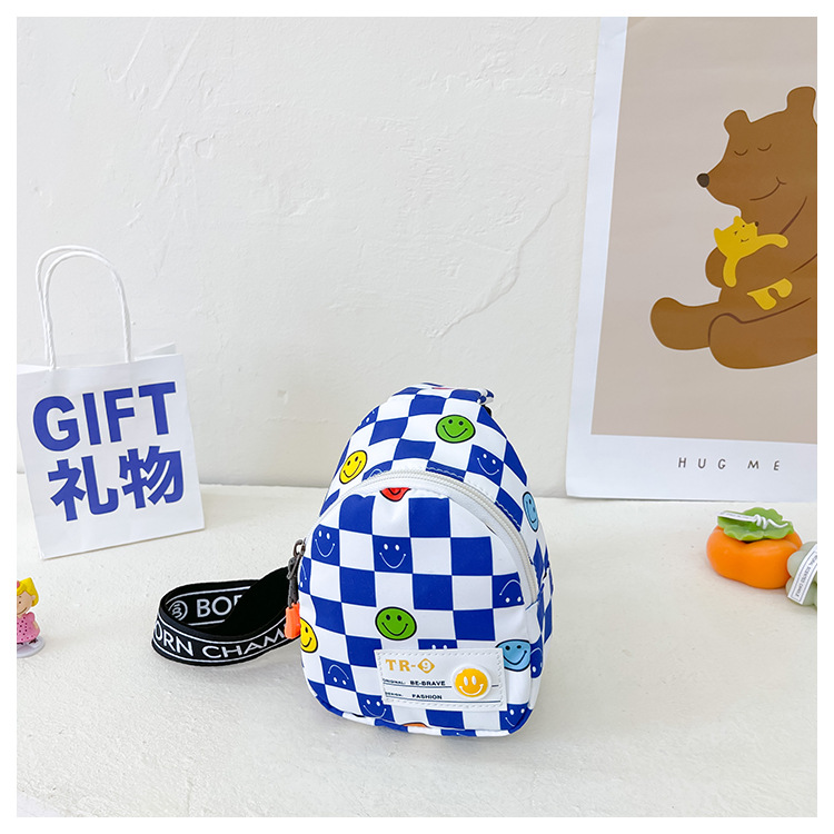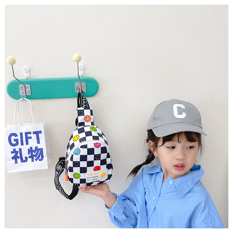 한국 스타일 스마일 어린이 가슴 가방 2022 새로운 체스 판 체크 보드 소년의 잘 생긴 크로스 바디 백 귀여운 아기 동전 지갑 유행스토어 가기