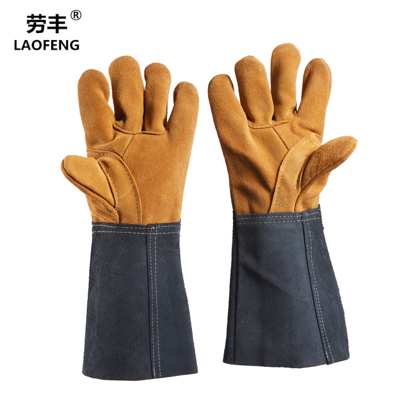 용접 장갑 도매 긴 스웨이드 전체 가죽 용접기 용접 장갑 단열 내구성 보호 노동 보호 긴 가죽 장갑