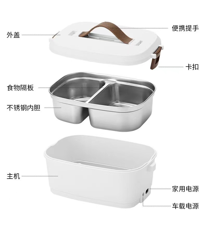 직장인을 위한 유럽/미국 표준 전기 도시락, 물 없이 사용 가능, 차량용 도시락, 가정용 USB 가열 보온 전기 도시락, 가볍고 편리함스토어 가기