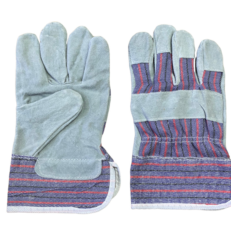 红灰条纹牛二层劳保手套
