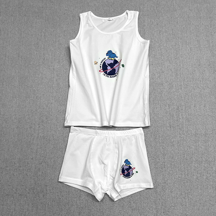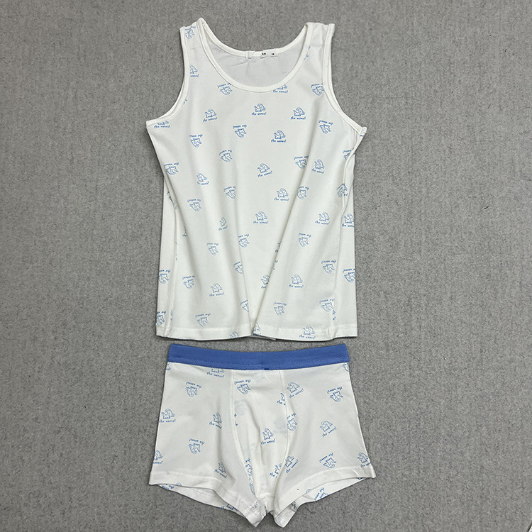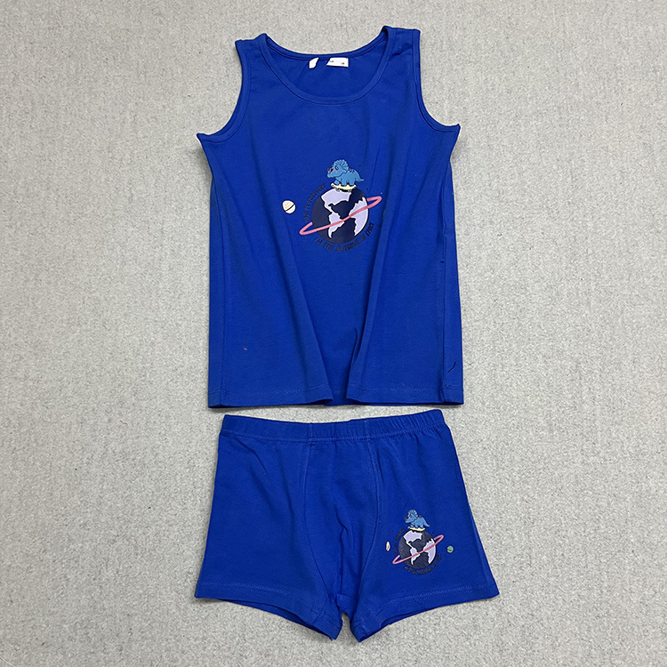 유럽과 미국의 대외 무역 싱글 중형 및 대형 소년 민소매 조끼 + 반바지 2 개 세트 소년 여름 면화 홈웨어스토어 가기