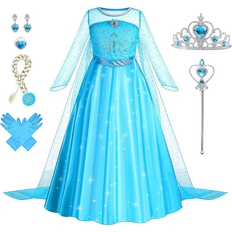 유럽과 미국 대외 무역 아동 의류 여아 원피스 냉동 인쇄 공주 엘사 원피스 어린이 성능 원피스