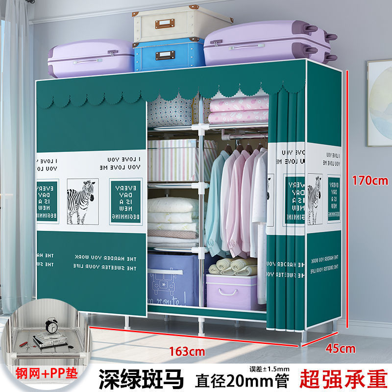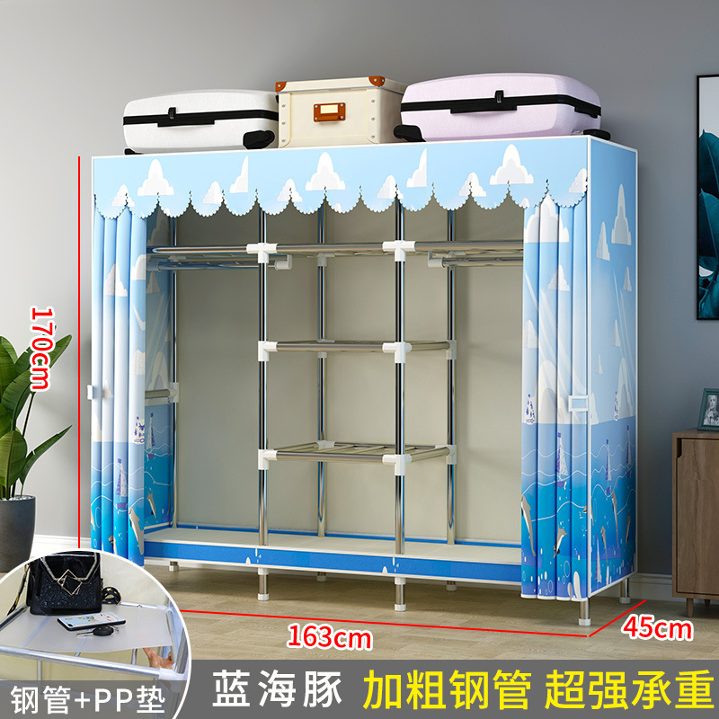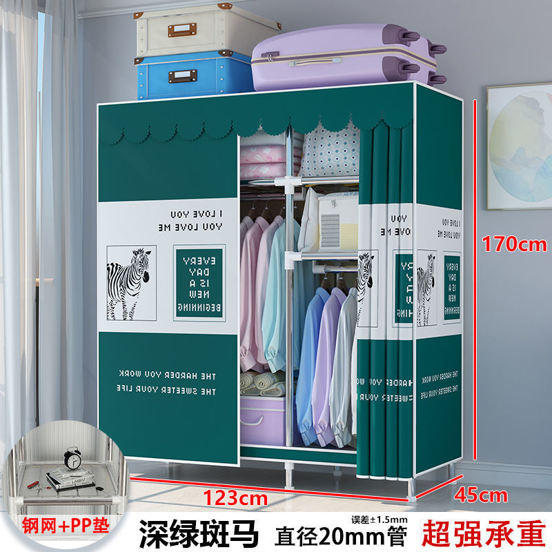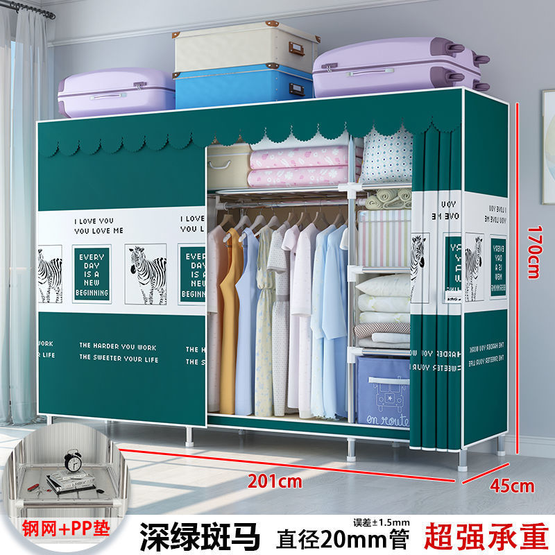 간단한 옷장 현대 간단한 천 옷장 강철 파이프 대담한 강화 홈 침실 스토리지 교수형 캐비닛