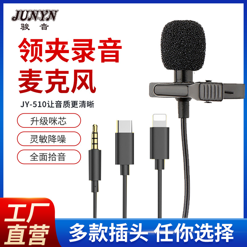 유선 라발리에 마이크 휴대폰 녹음 비디오 라이브 방송 소음 감소 소형 마이크 콘덴서 전방향성 사운드 카드스토어 가기