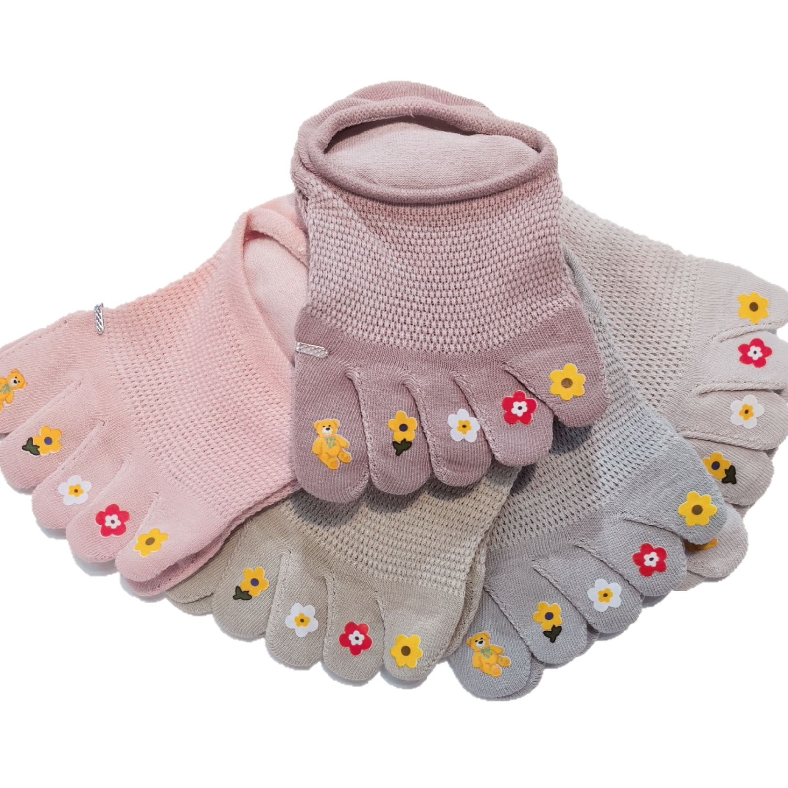 한국 스타일 작은 꽃무늬 여름 메쉬 발가락 양말, 투명하고 귀여운 발가락 양말