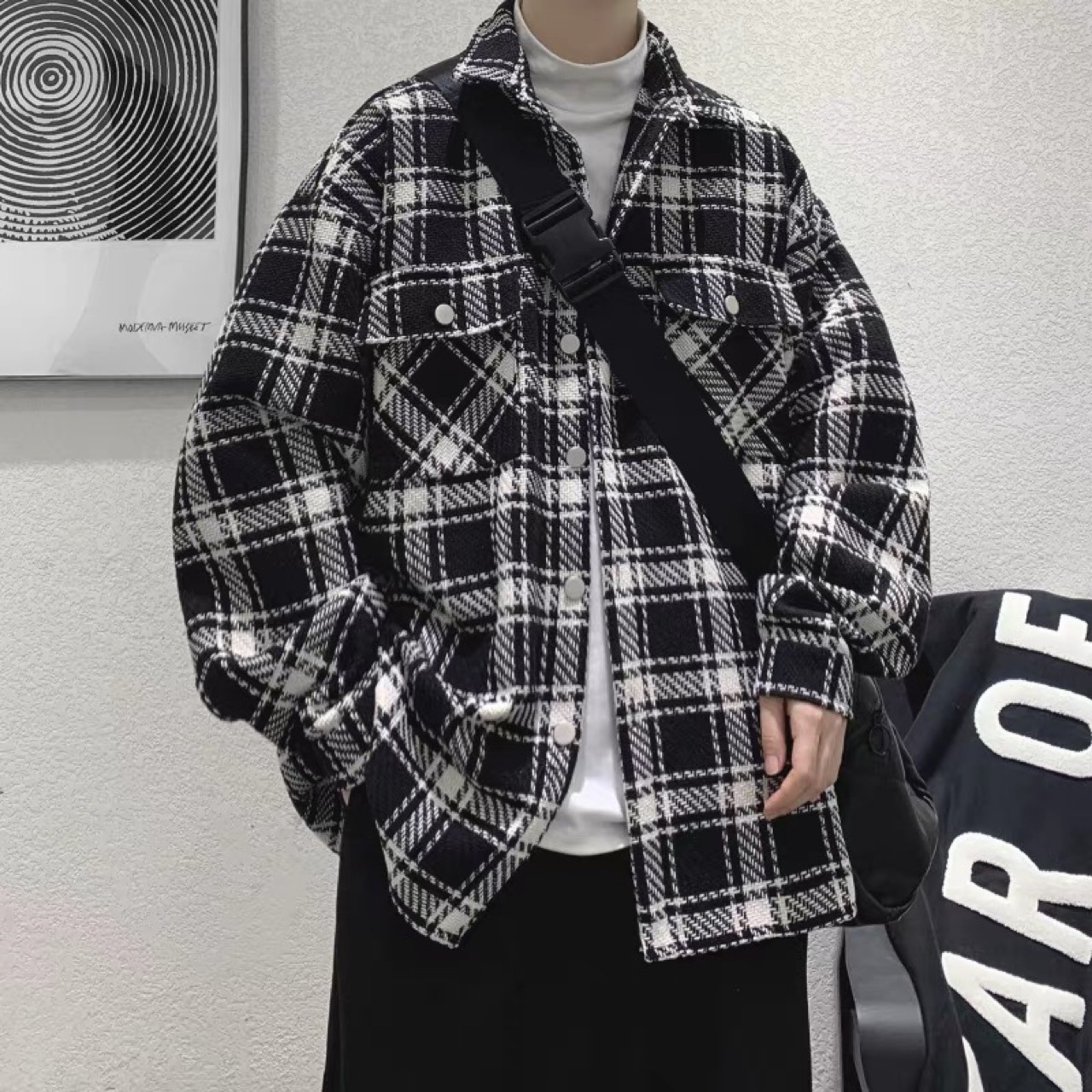 2022 체크 무늬 셔츠 코트 봄과 가을 한국 스타일 인스 타 그램 유행 소년 잘 생긴 느슨한 캐주얼 재킷스토어 가기