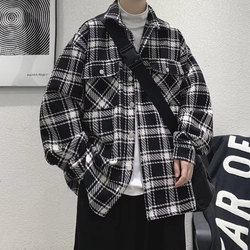 2022 체크 무늬 셔츠 코트 봄과 가을 한국 스타일 인스 타 그램 유행 소년 잘 생긴 느슨한 캐주얼 재킷