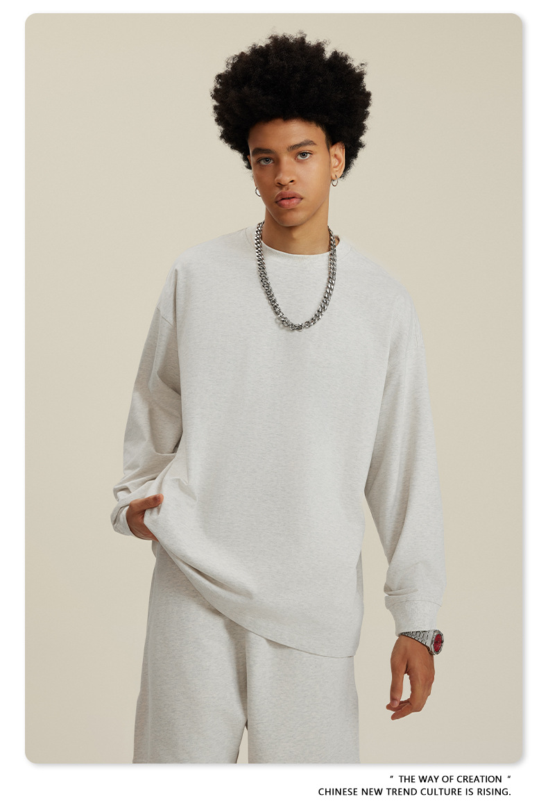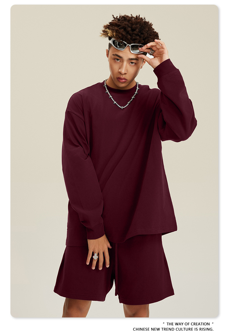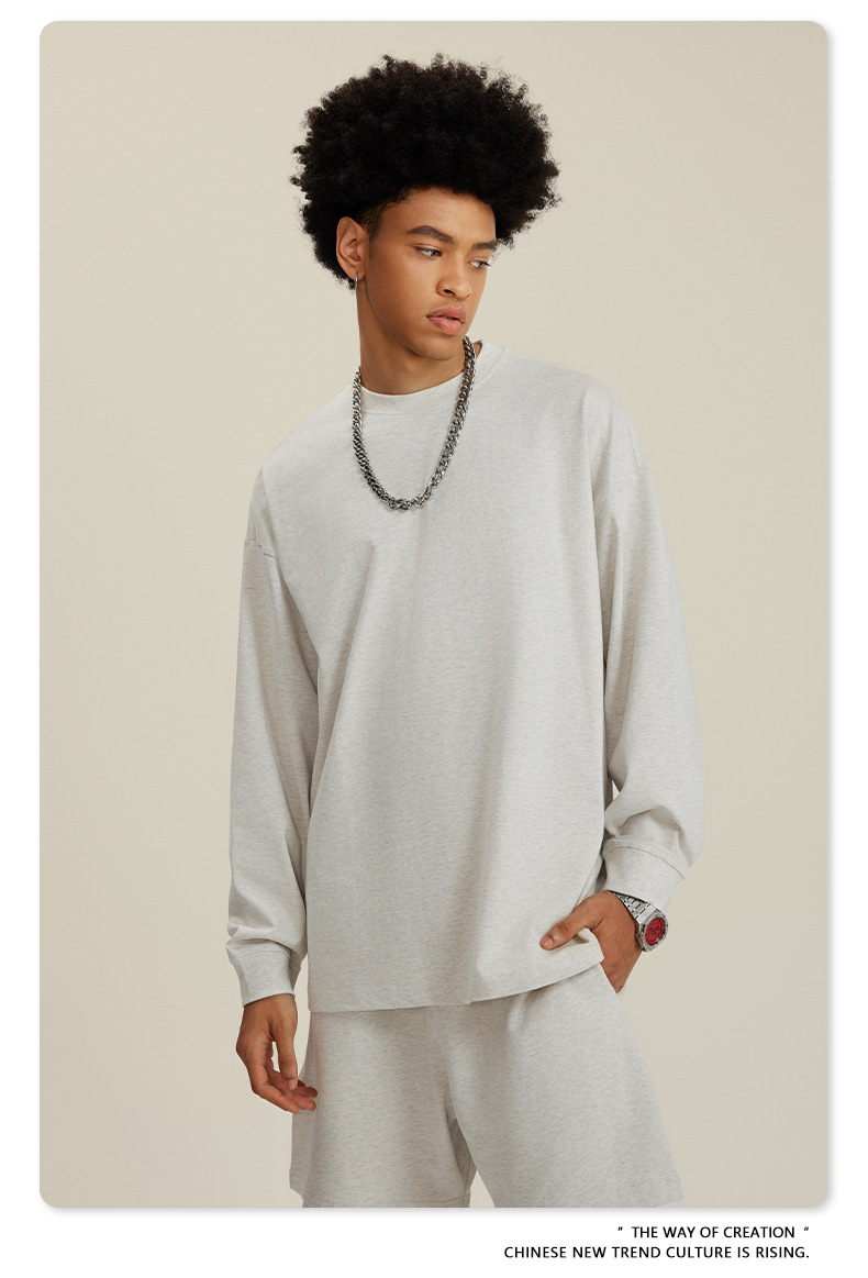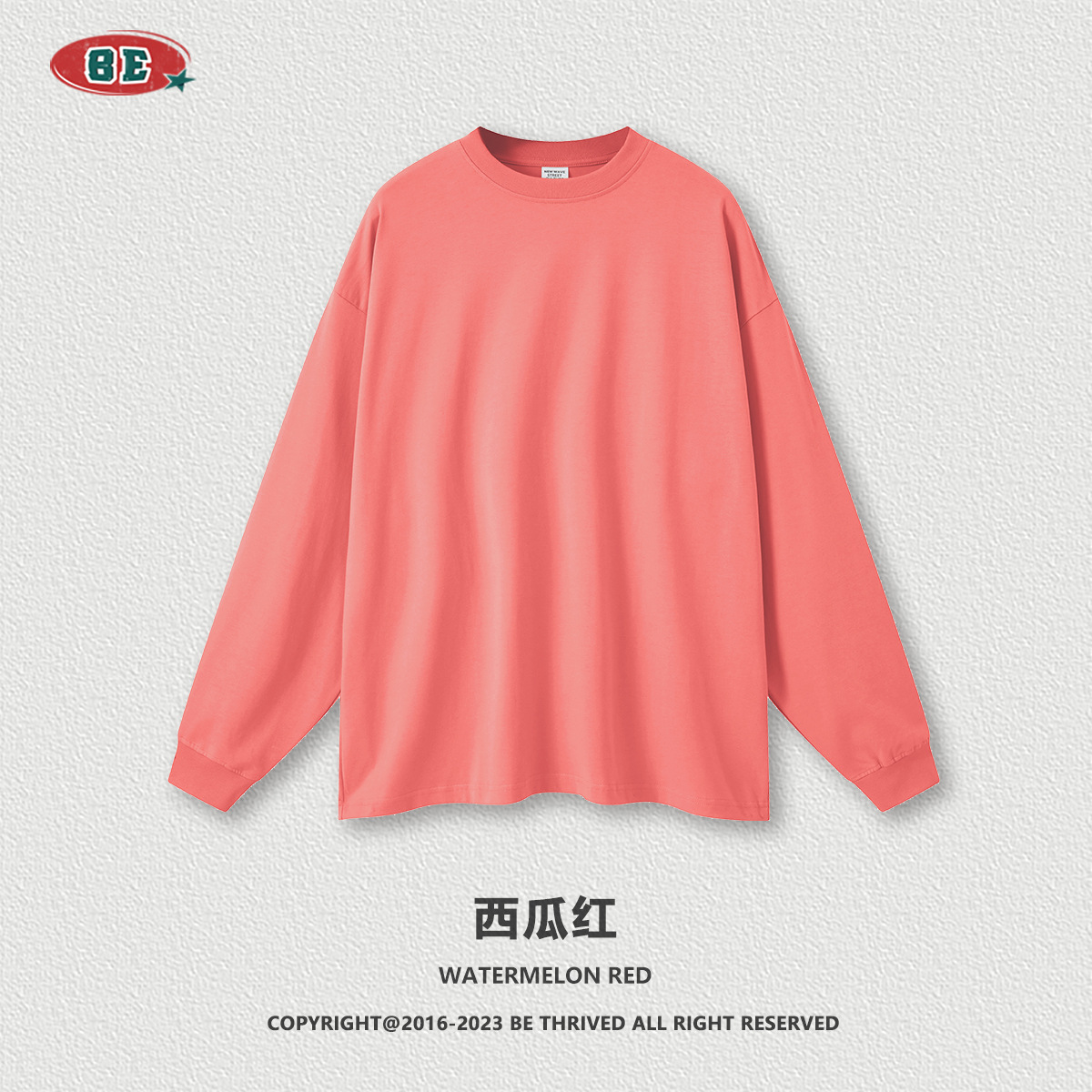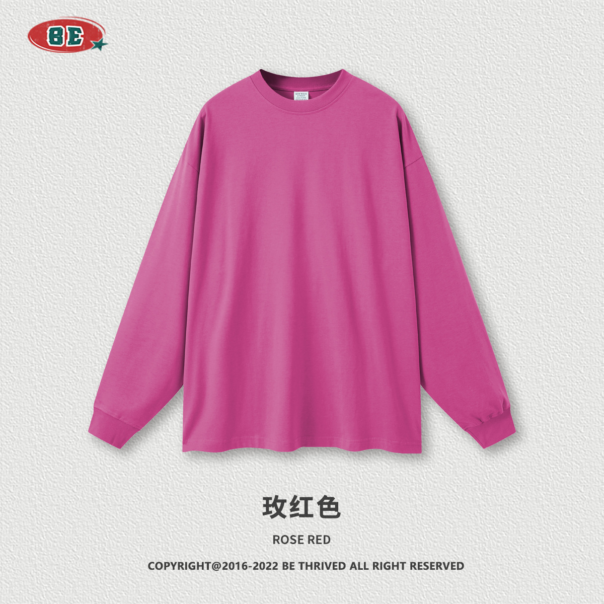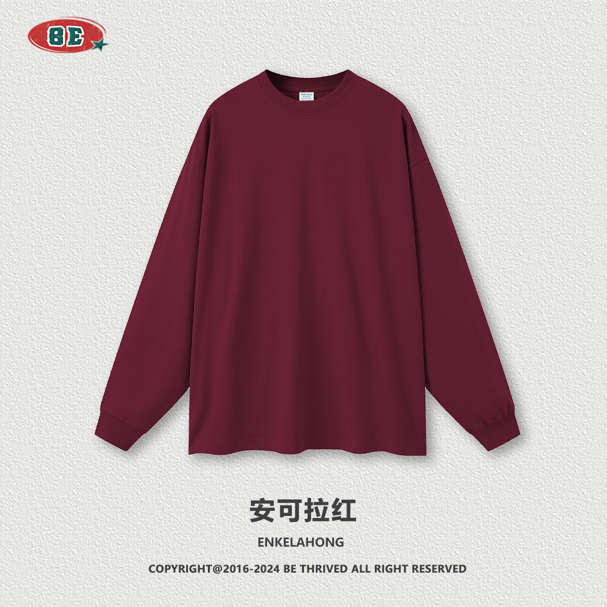 BE 남성 의류 2025 봄 의류 미국 솔리드 컬러 코튼 긴팔 남성 퓨어 코튼 루즈 긴팔 커플 티셔츠 남성용