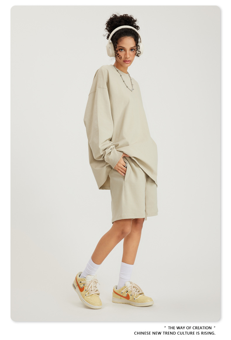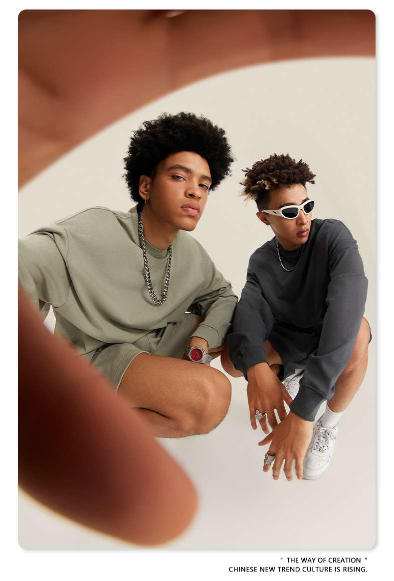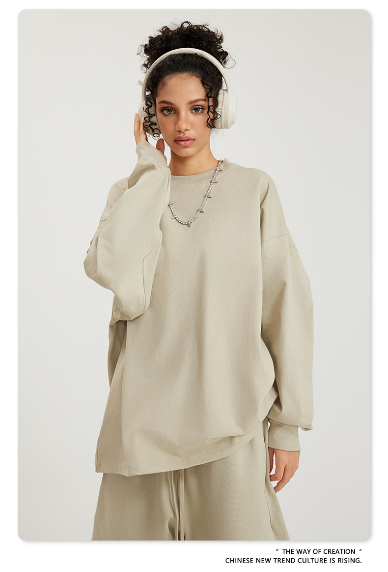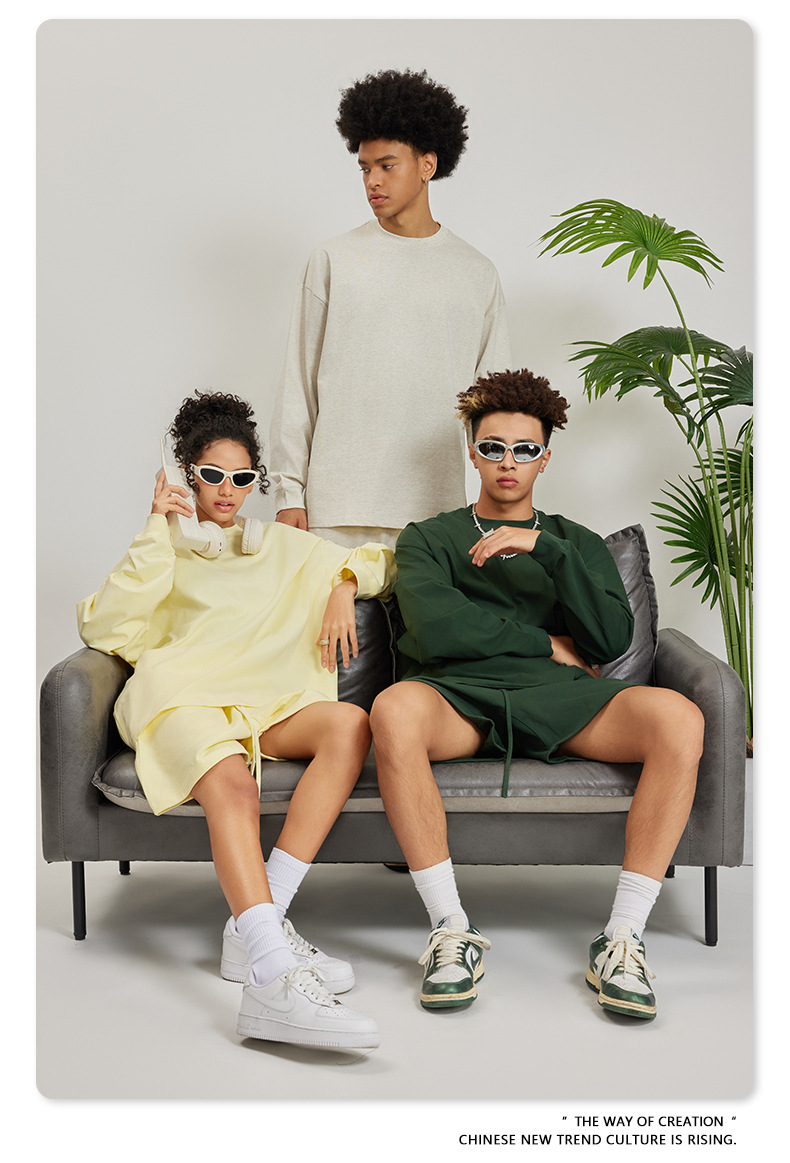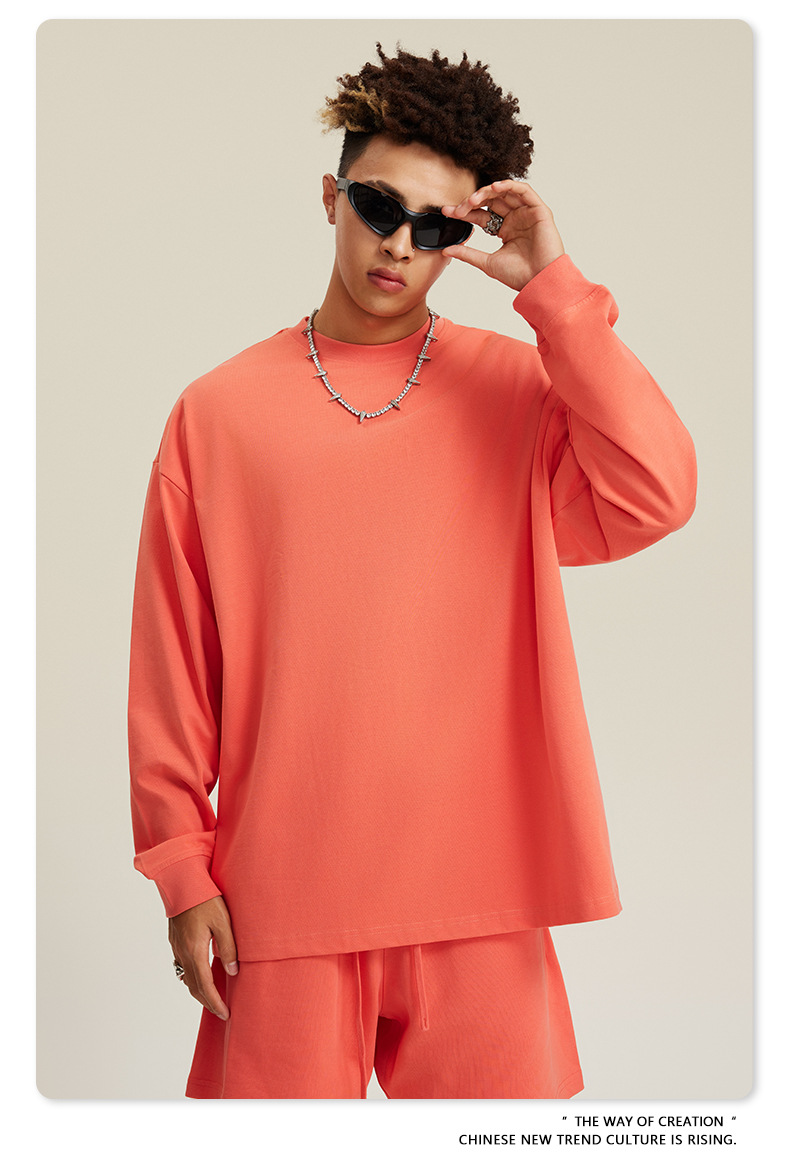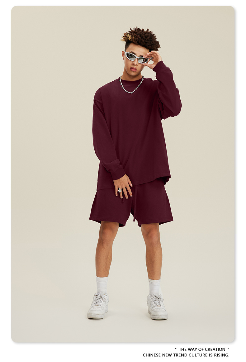 BE 남성 의류 2025 봄 의류 미국 솔리드 컬러 코튼 긴팔 남성 퓨어 코튼 루즈 긴팔 커플 티셔츠 남성용