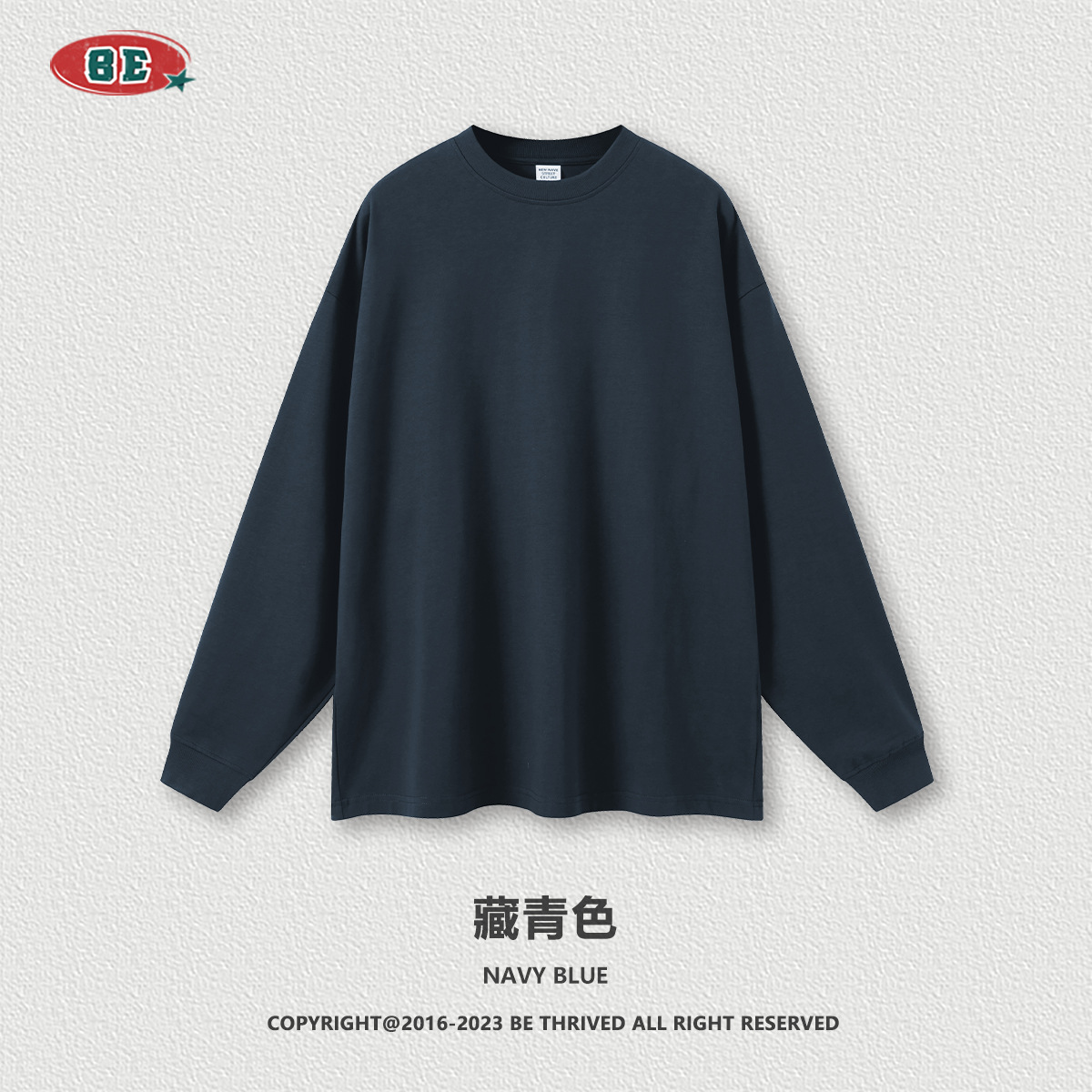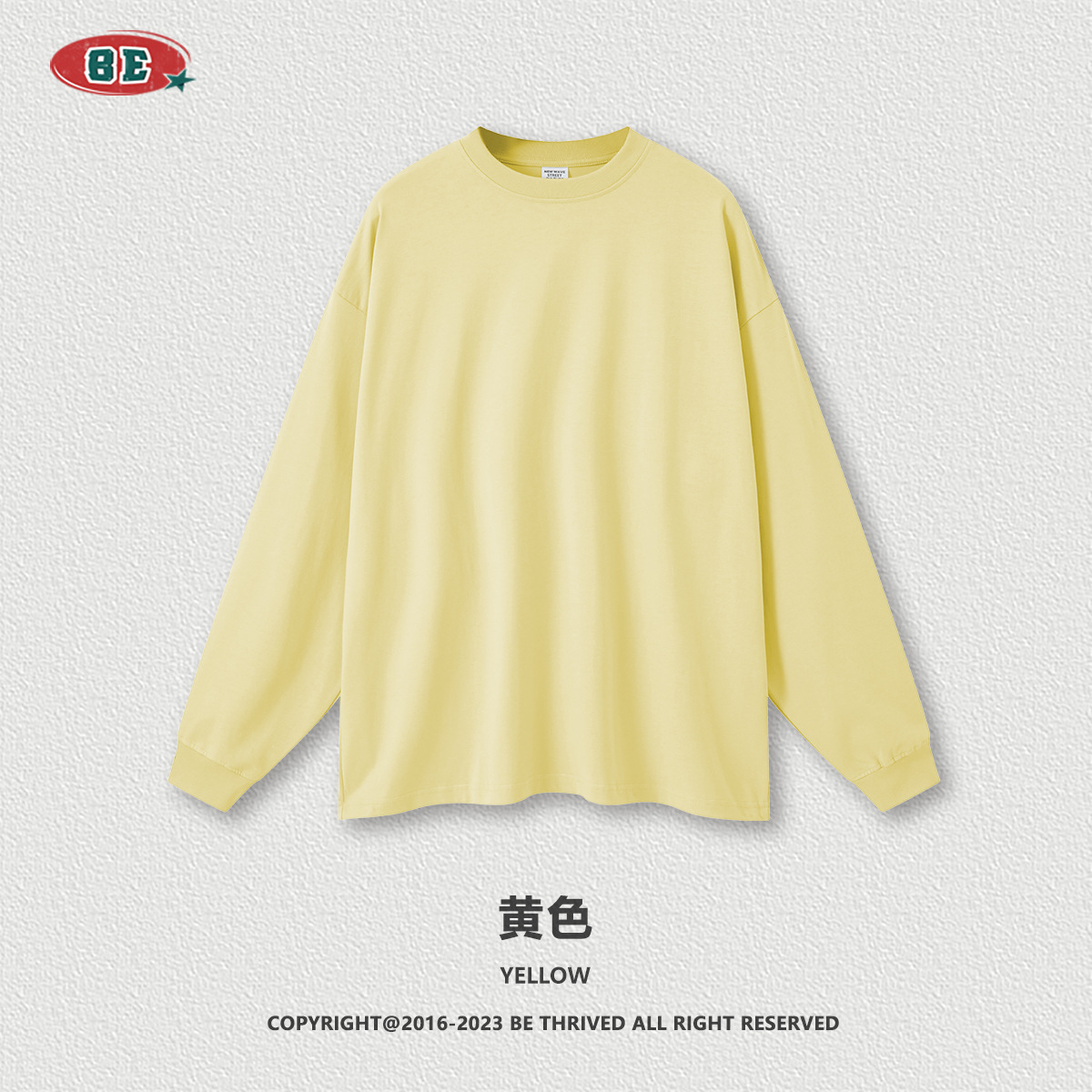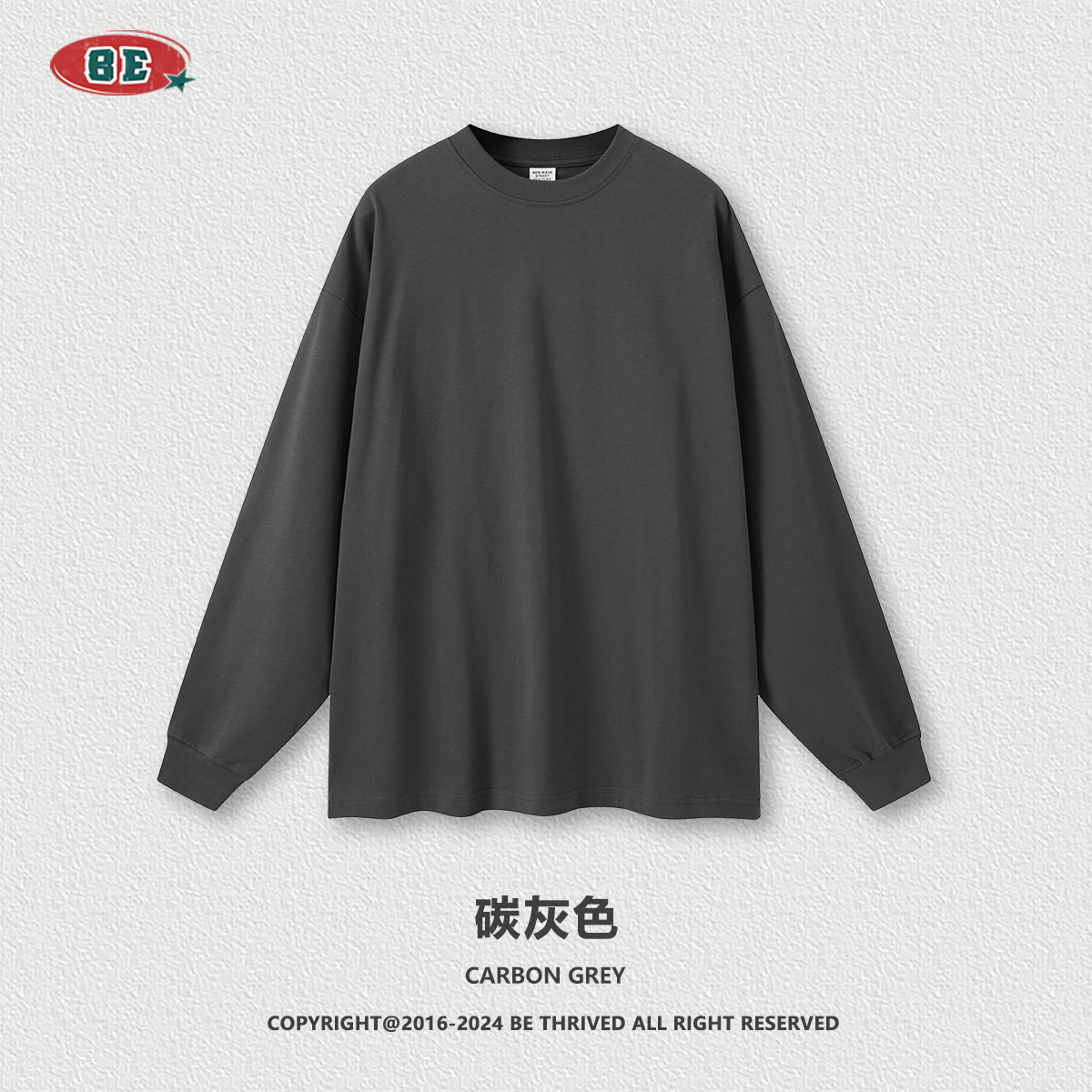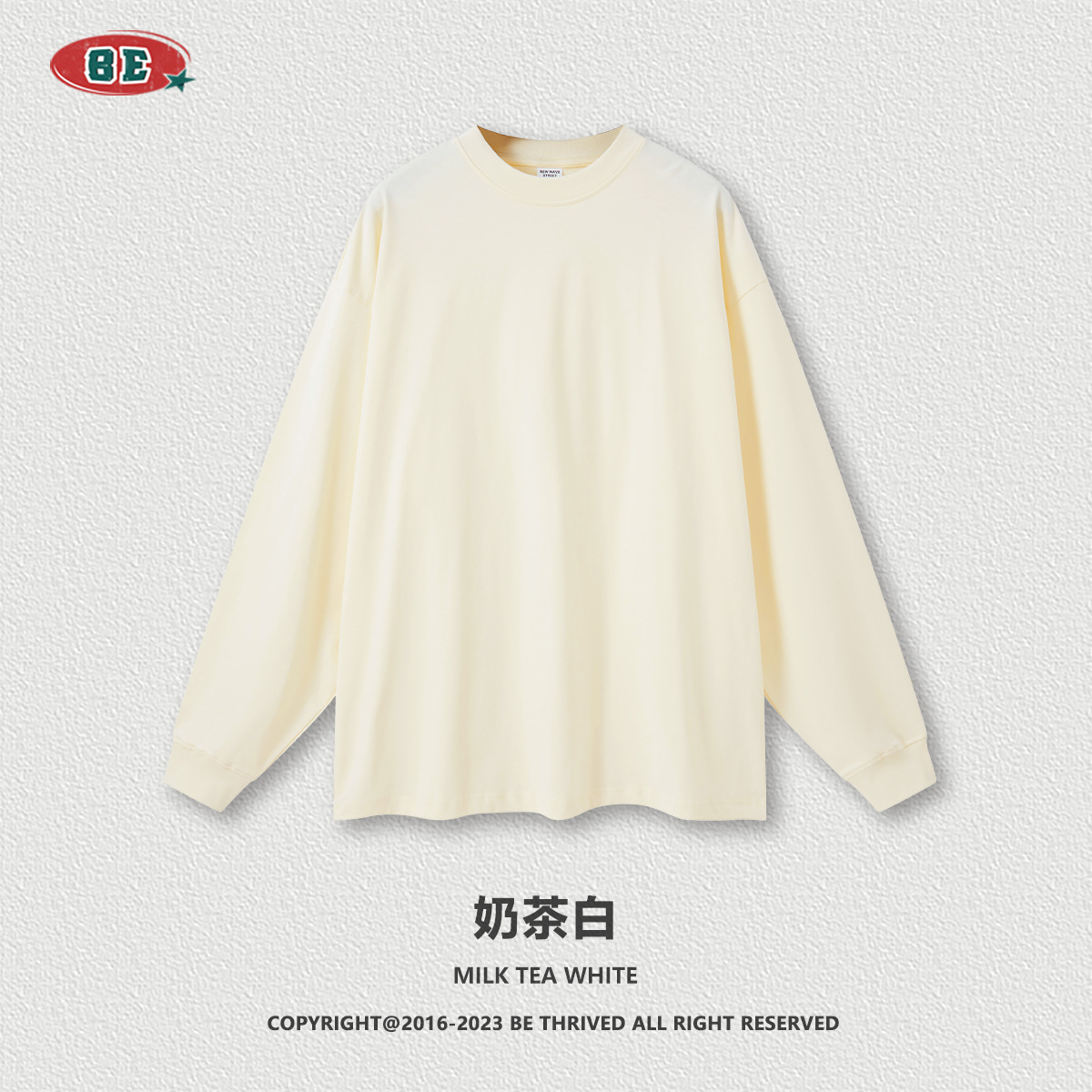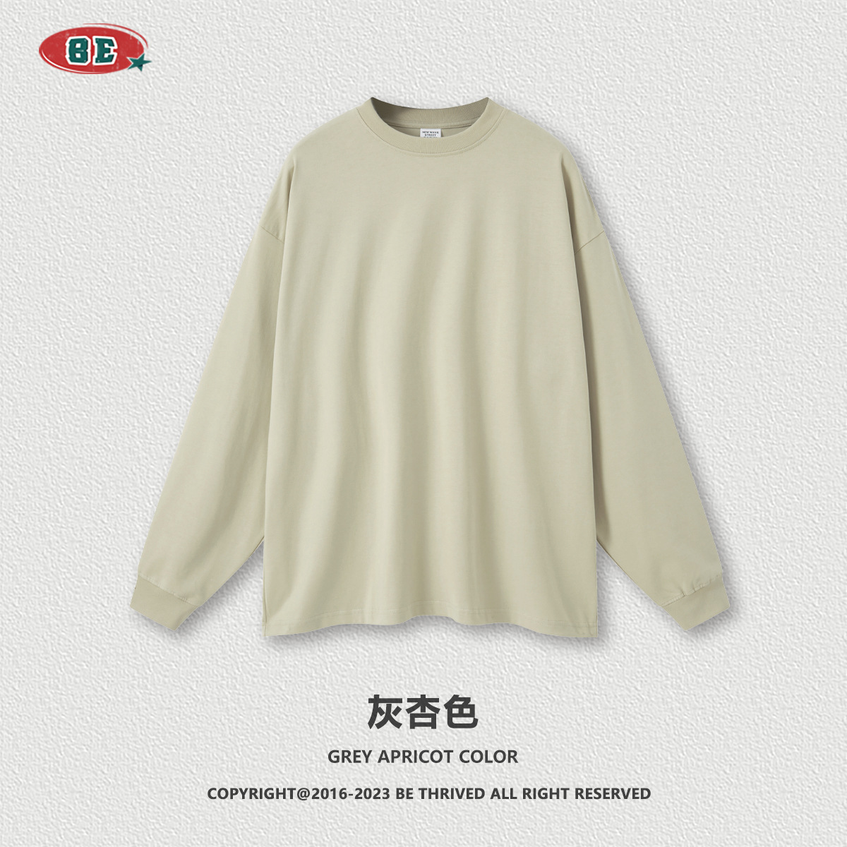 BE 남성 의류 2025 봄 의류 미국 솔리드 컬러 코튼 긴팔 남성 퓨어 코튼 루즈 긴팔 커플 티셔츠 남성용스토어 가기