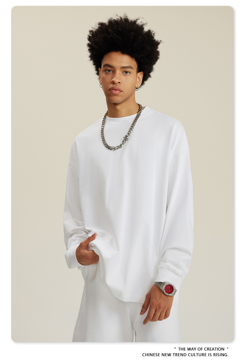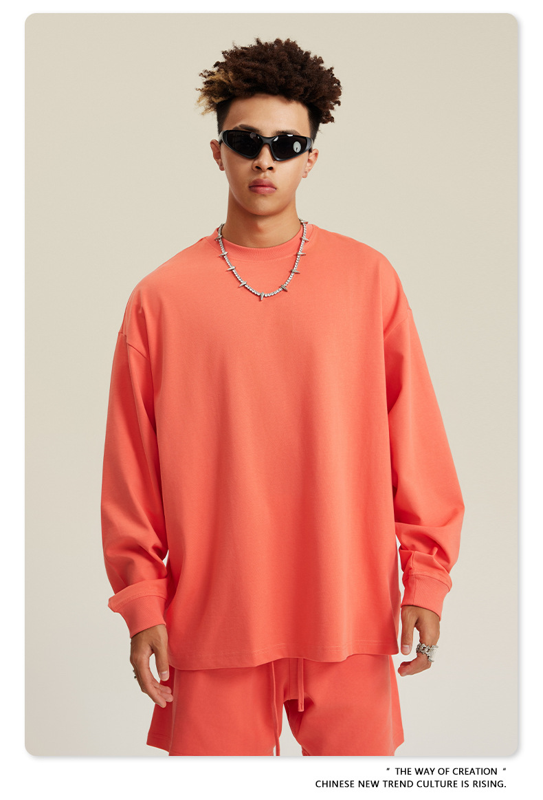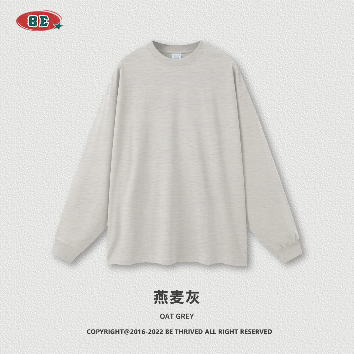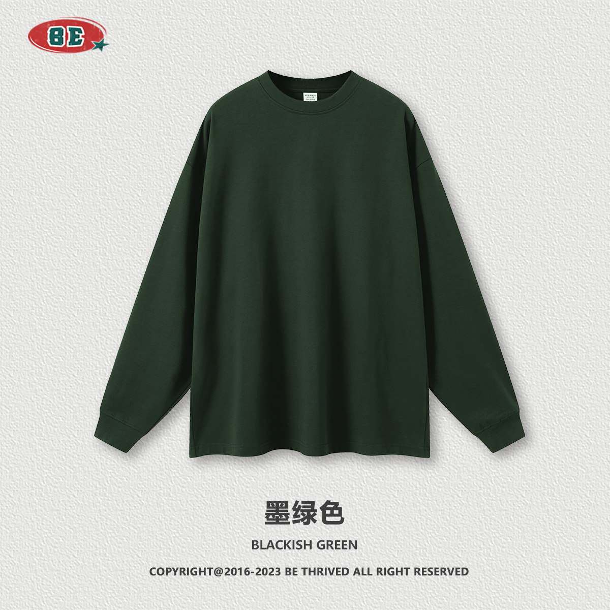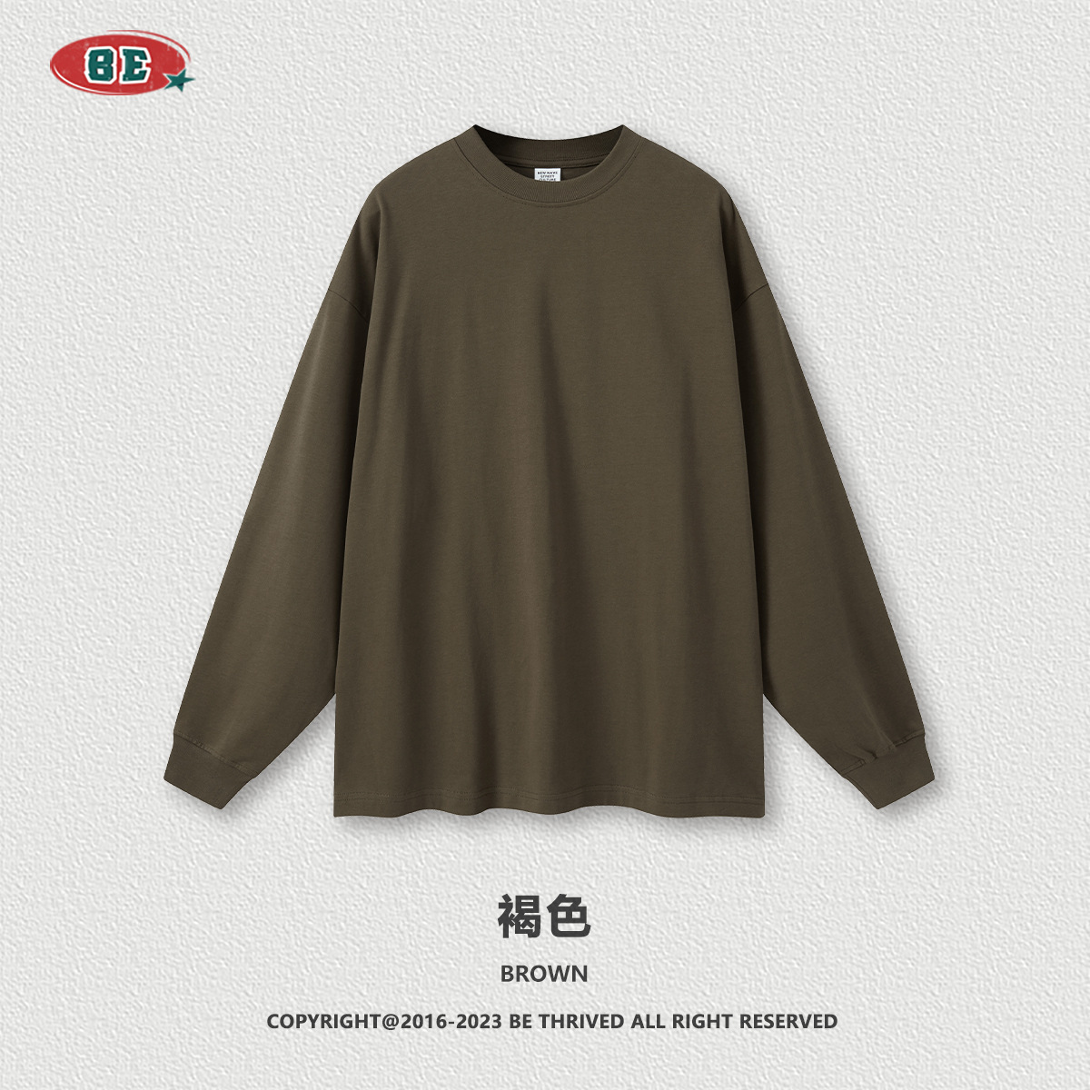 BE 남성 의류 2025 봄 의류 미국 솔리드 컬러 코튼 긴팔 남성 퓨어 코튼 루즈 긴팔 커플 티셔츠 남성용스토어 가기