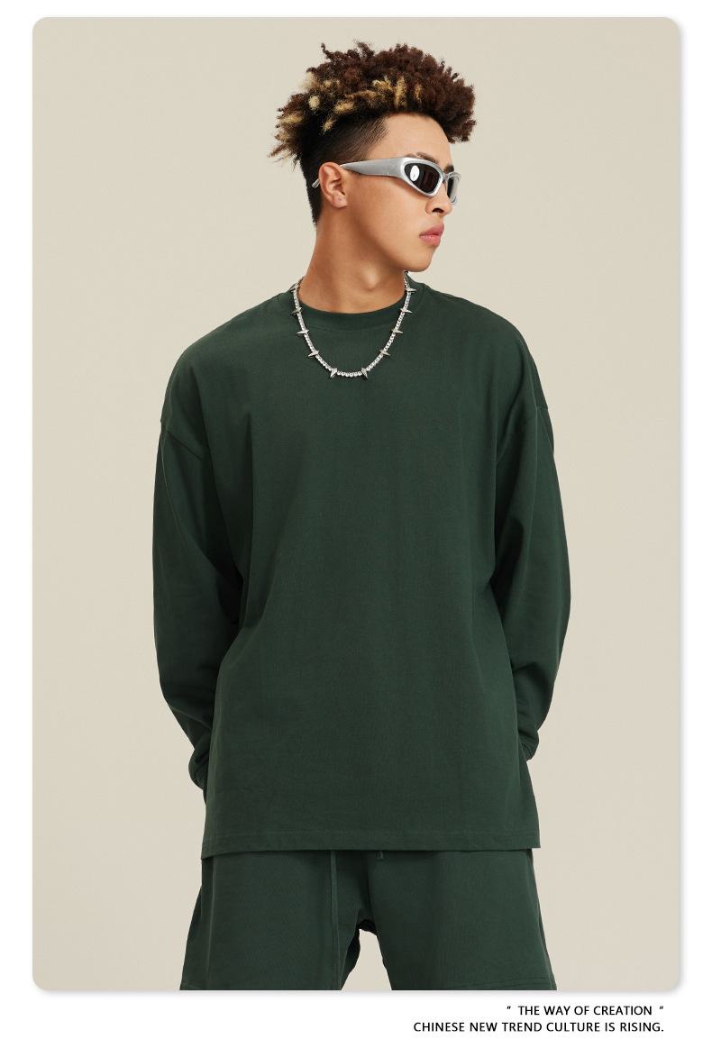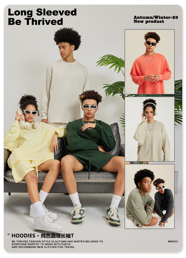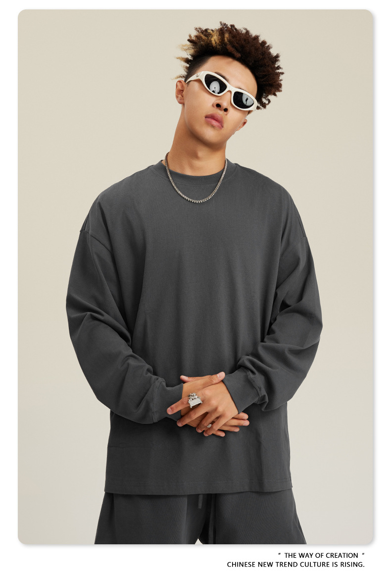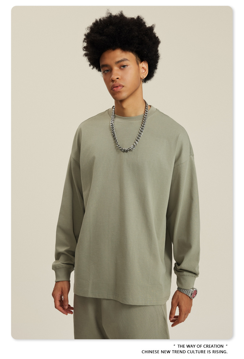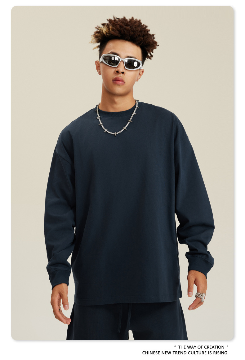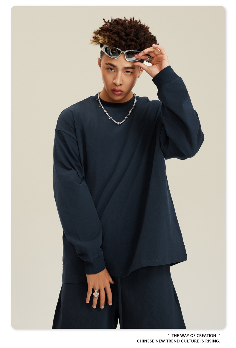 BE 남성 의류 2025 봄 의류 미국 솔리드 컬러 코튼 긴팔 남성 퓨어 코튼 루즈 긴팔 커플 티셔츠 남성용스토어 가기