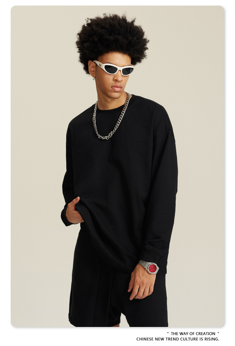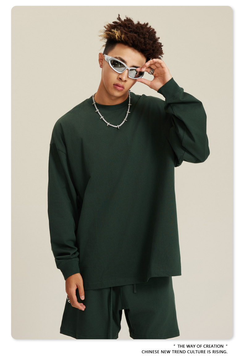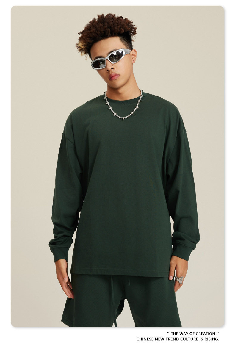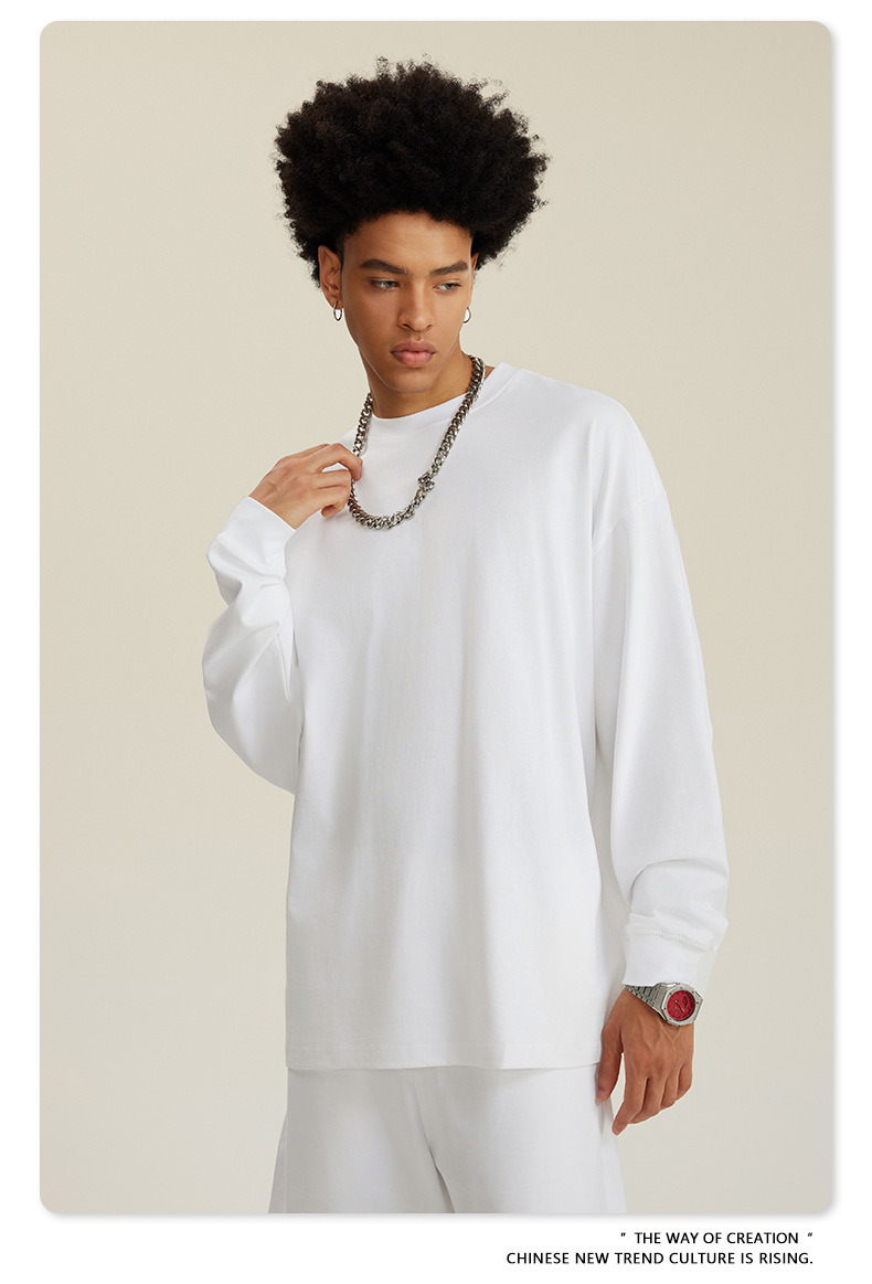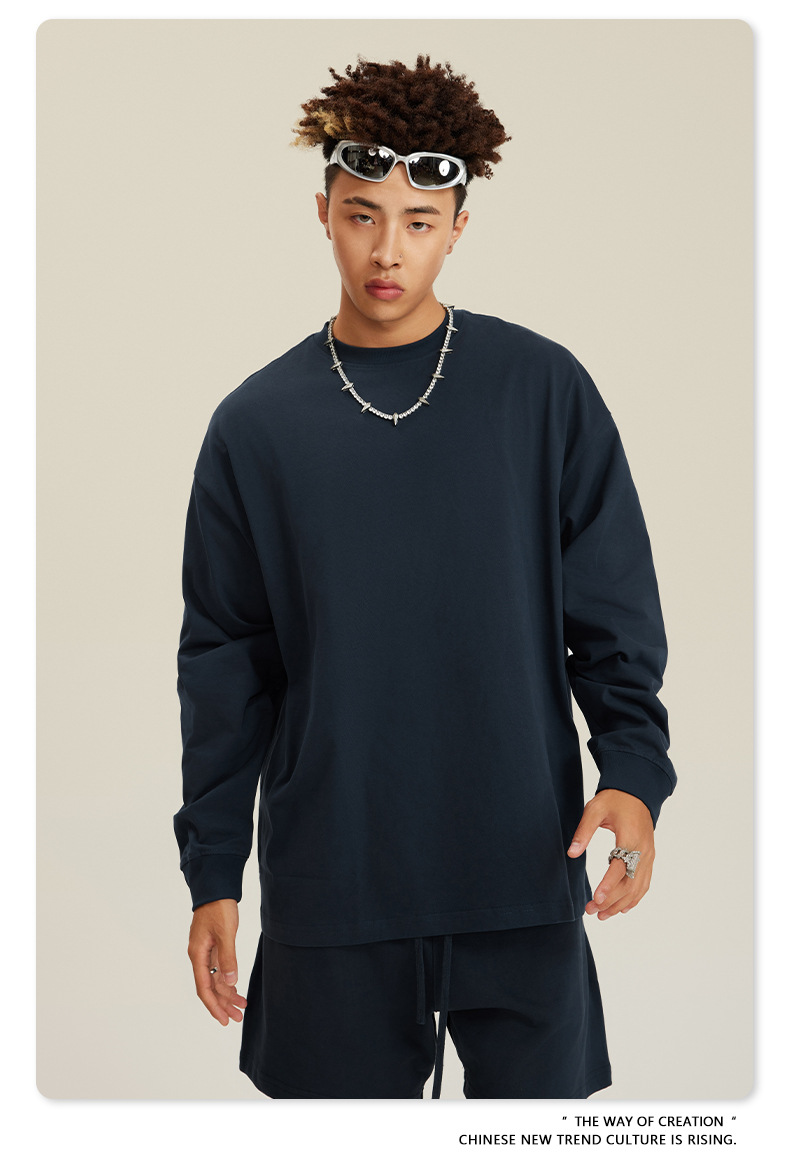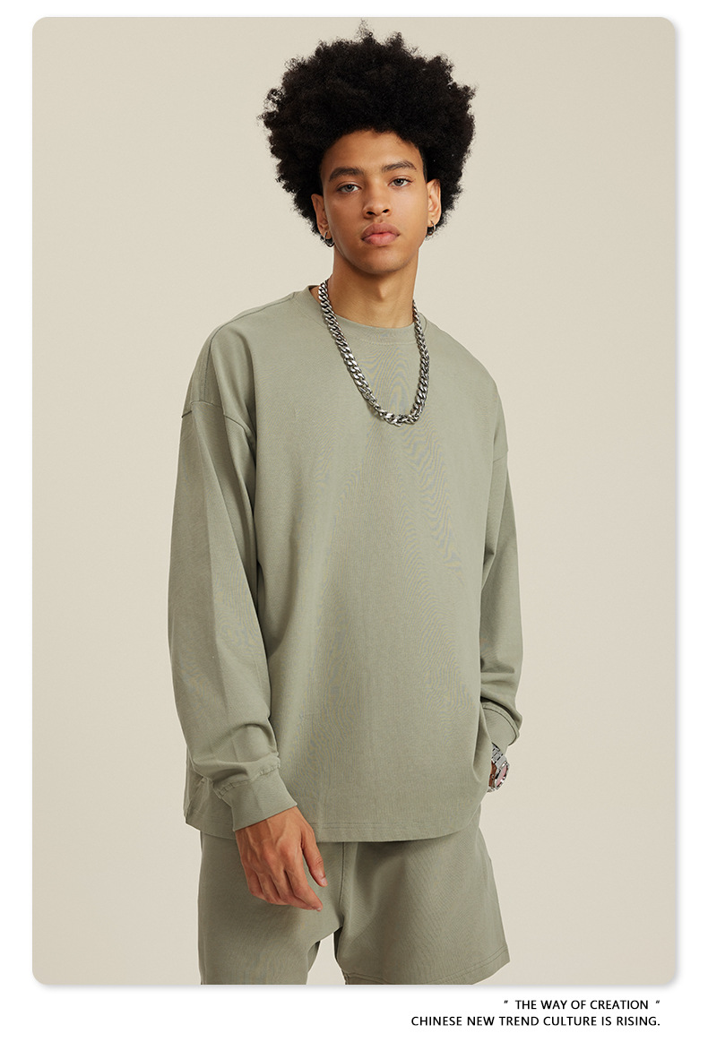 BE 남성 의류 2025 봄 의류 미국 솔리드 컬러 코튼 긴팔 남성 퓨어 코튼 루즈 긴팔 커플 티셔츠 남성용스토어 가기