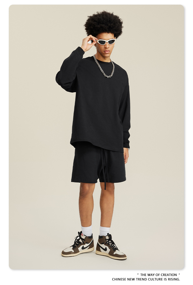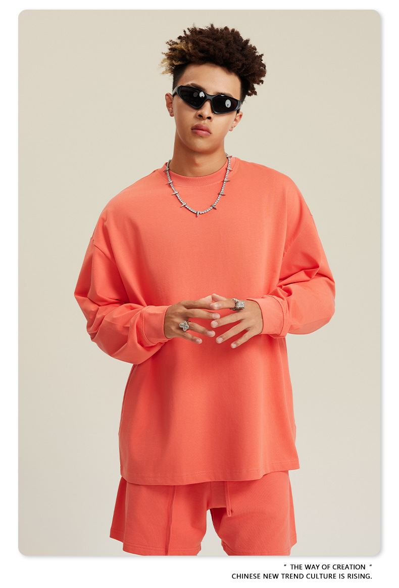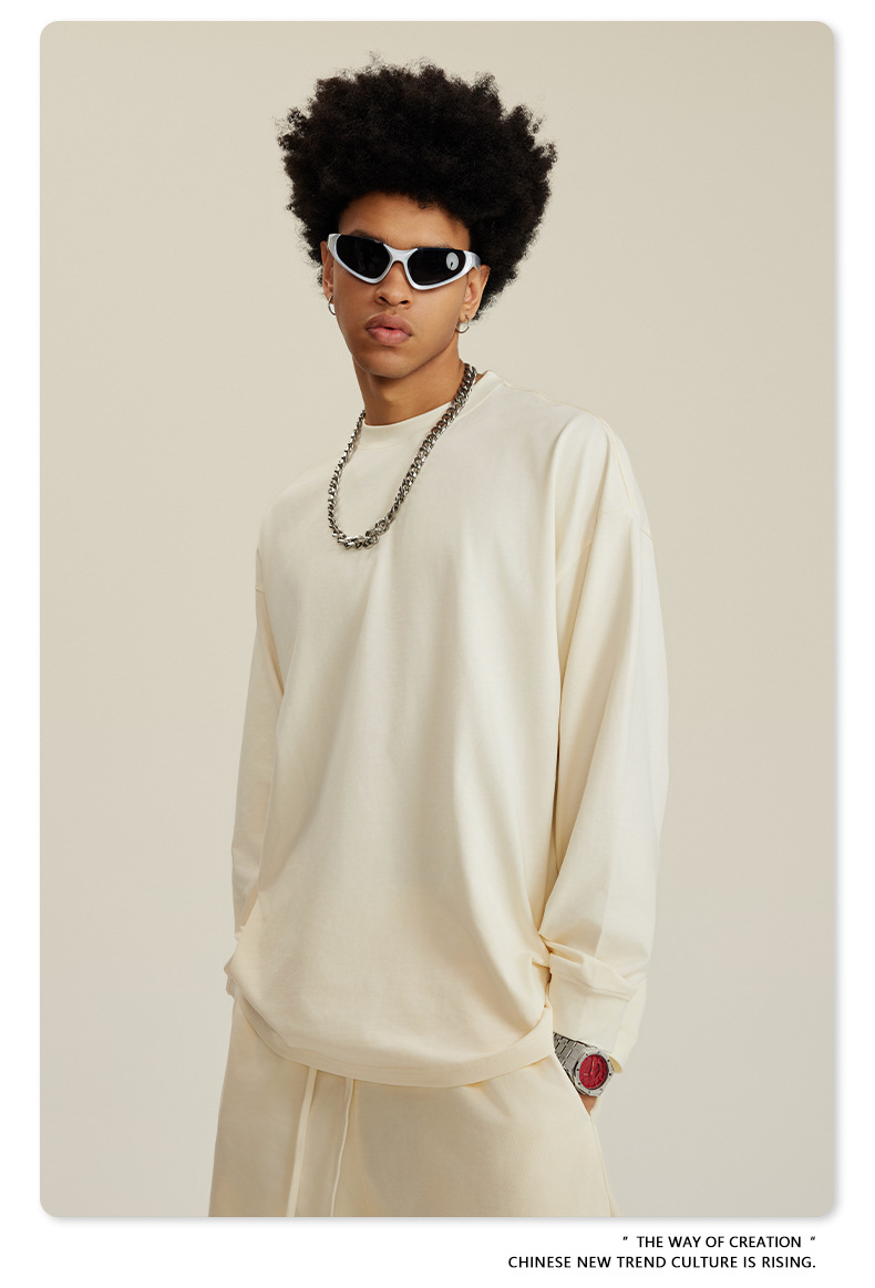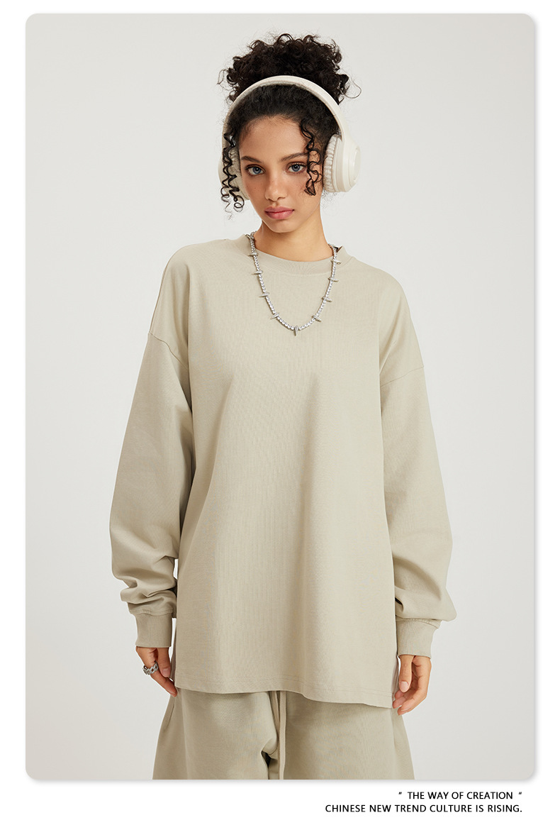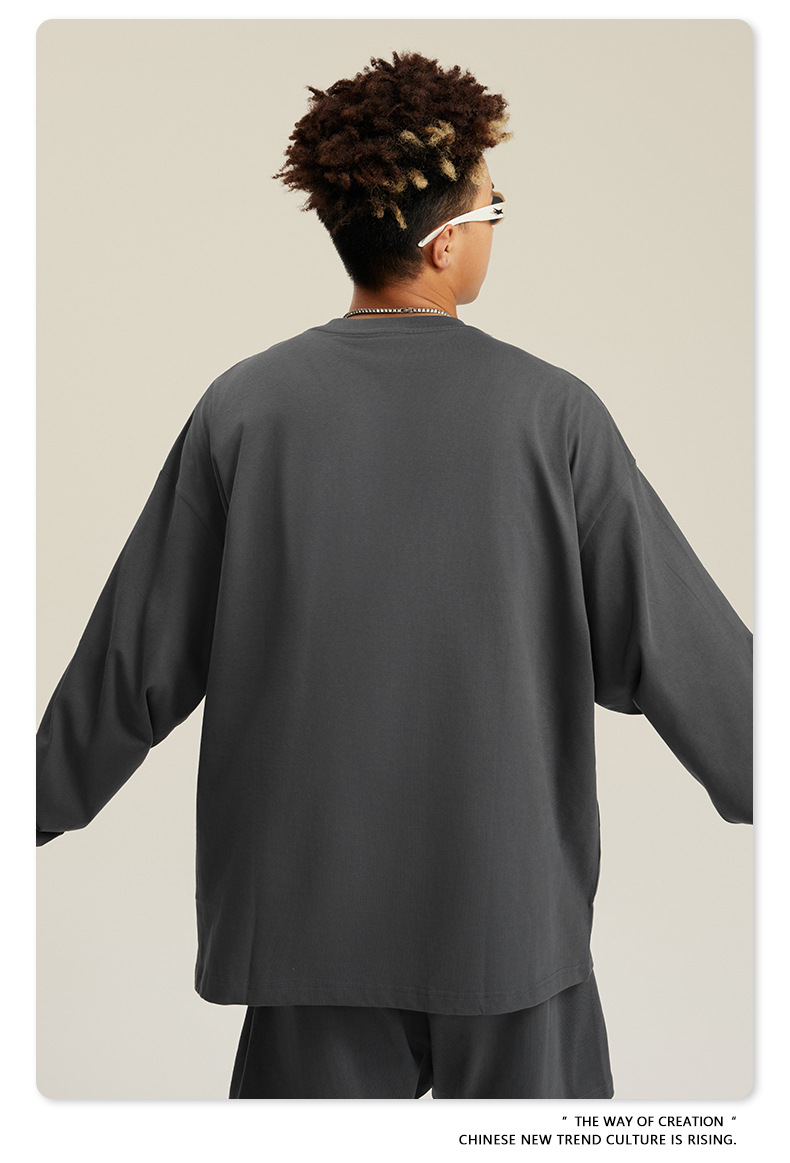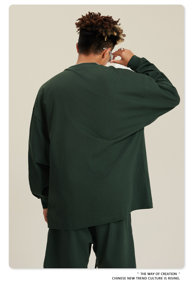BE 남성 의류 2025 봄 의류 미국 솔리드 컬러 코튼 긴팔 남성 퓨어 코튼 루즈 긴팔 커플 티셔츠 남성용스토어 가기