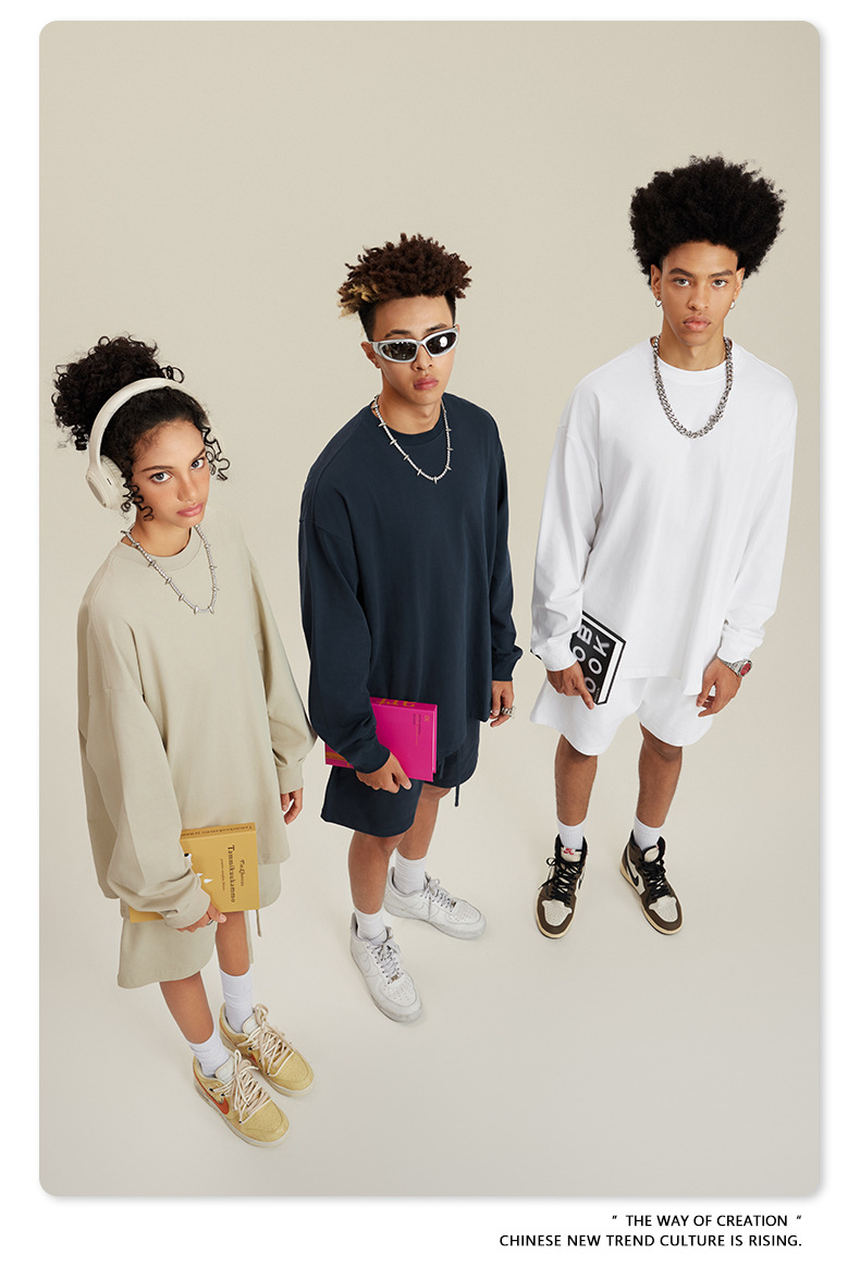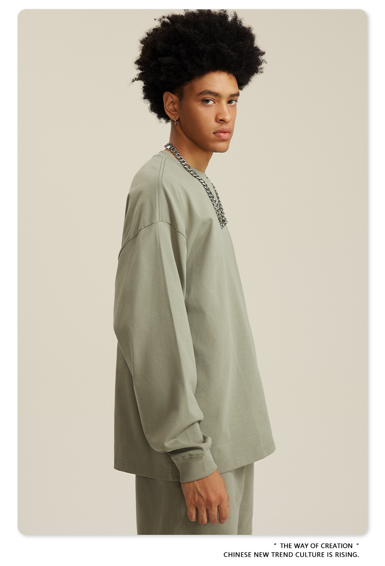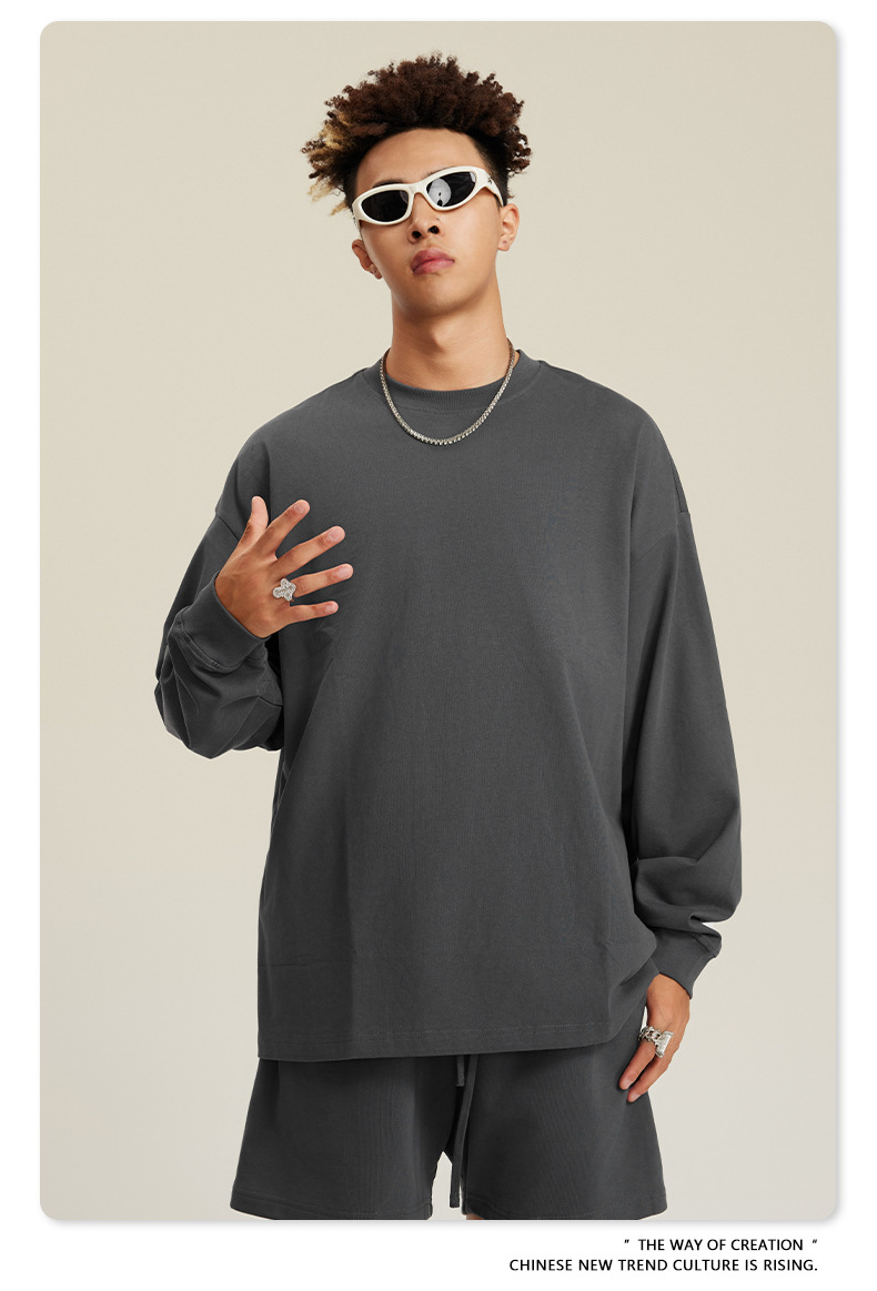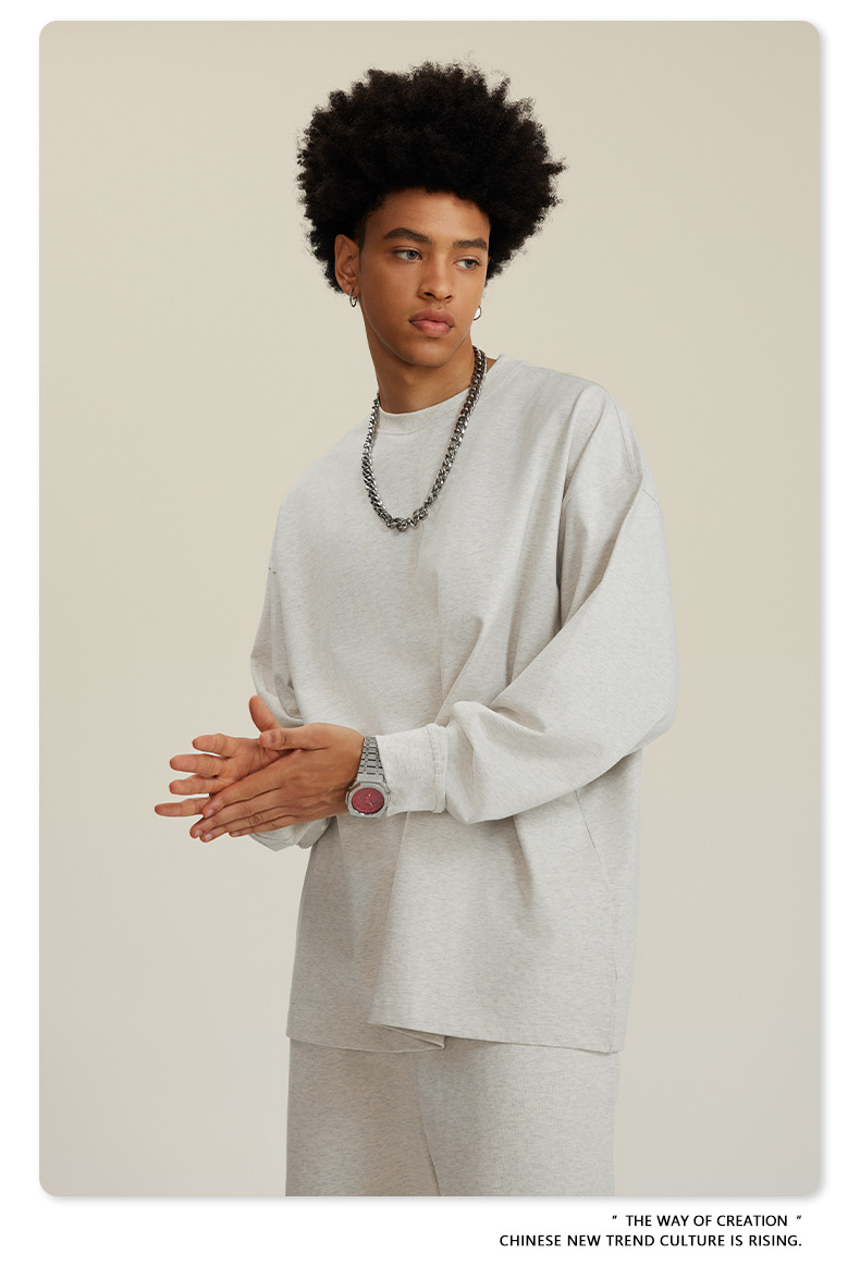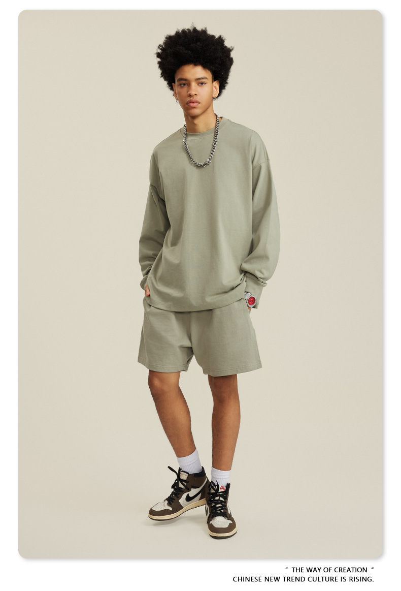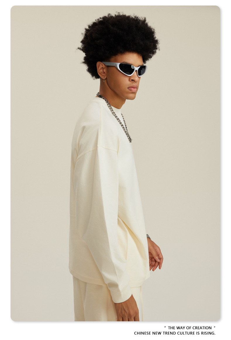 BE 남성 의류 2025 봄 의류 미국 솔리드 컬러 코튼 긴팔 남성 퓨어 코튼 루즈 긴팔 커플 티셔츠 남성용스토어 가기