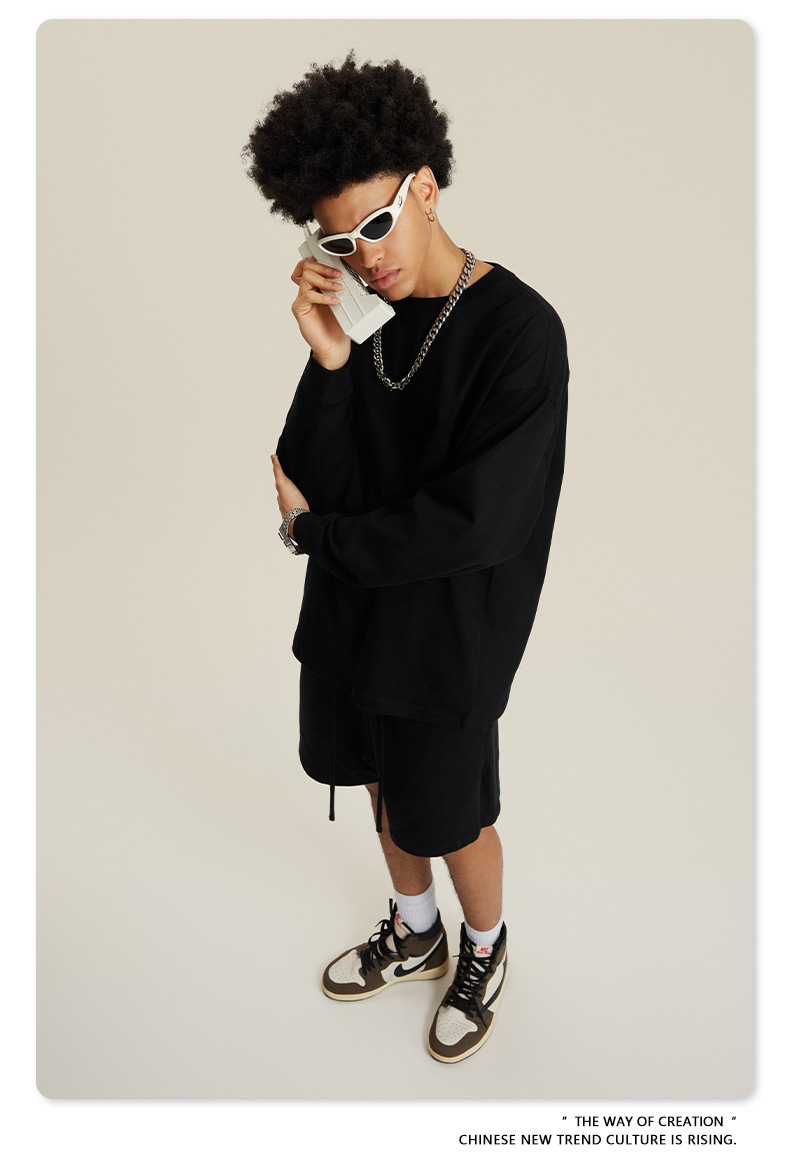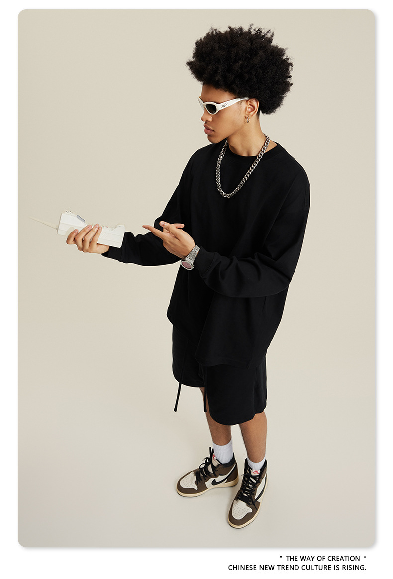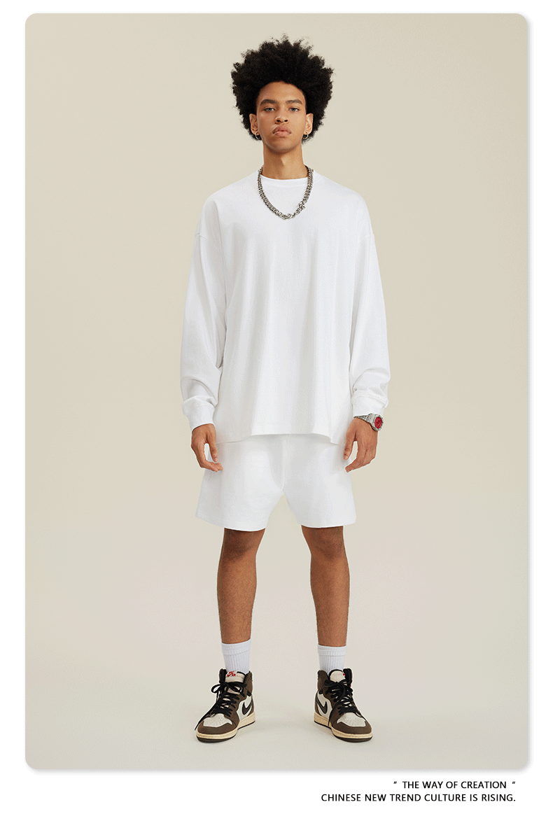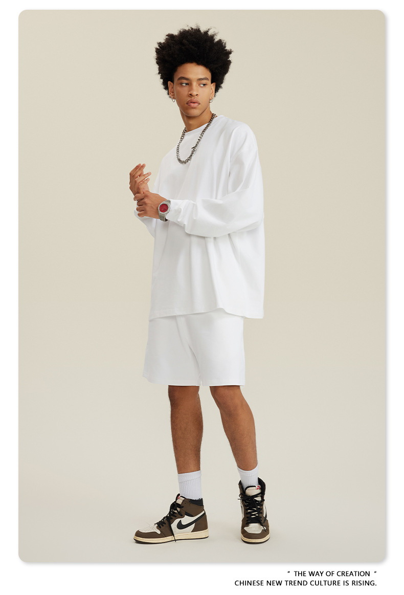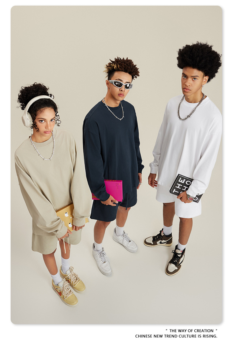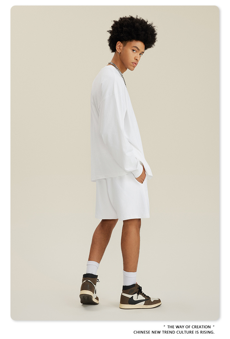 BE 남성 의류 2025 봄 의류 미국 솔리드 컬러 코튼 긴팔 남성 퓨어 코튼 루즈 긴팔 커플 티셔츠 남성용스토어 가기