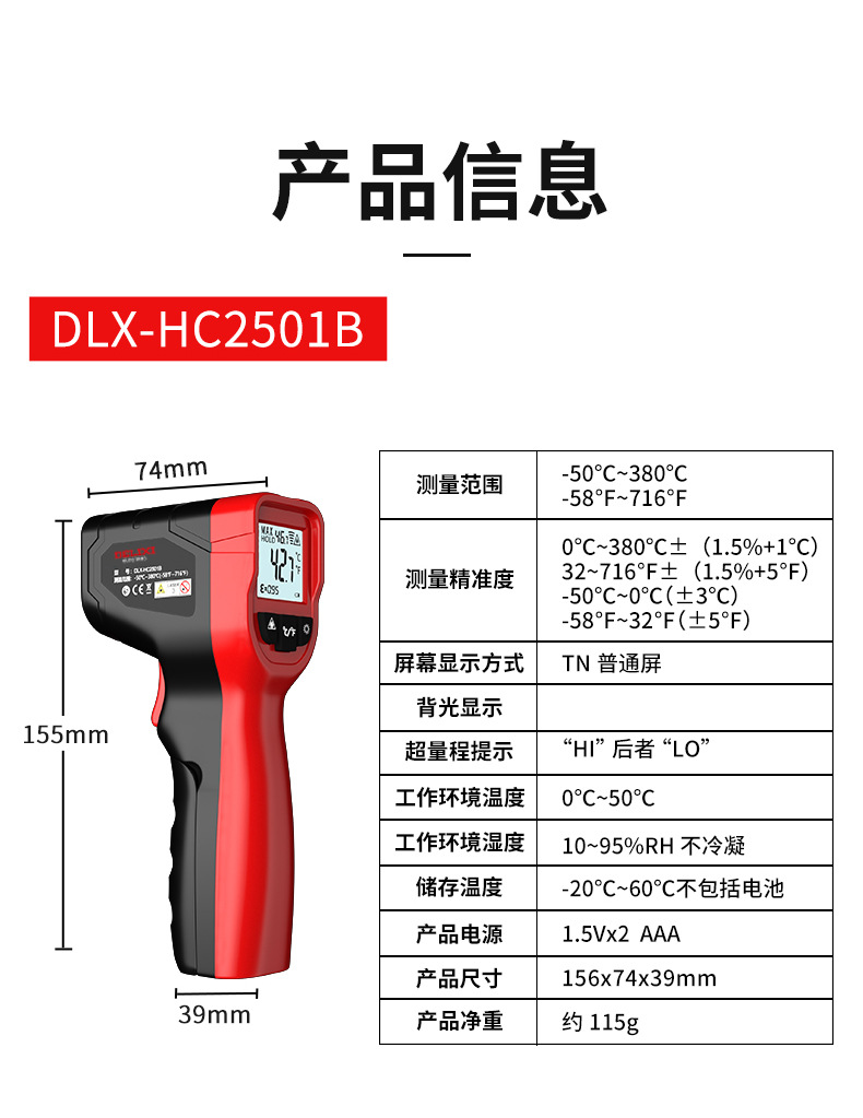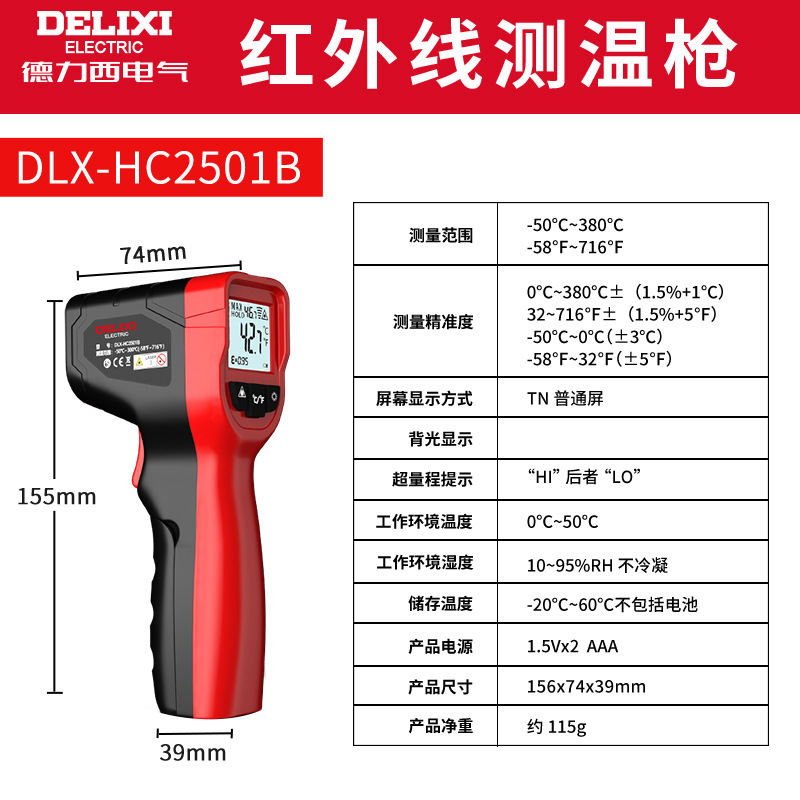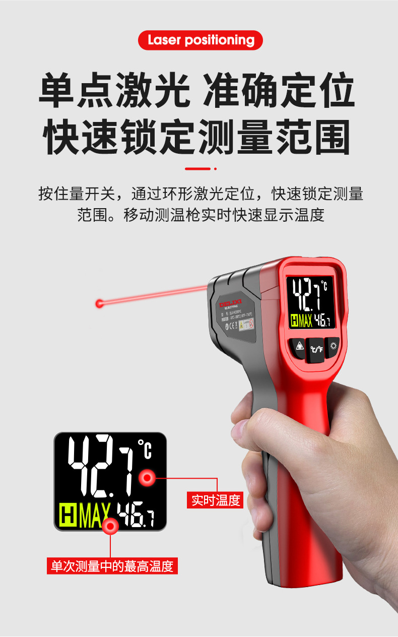 德力西红外测温仪家用烘焙检测高精度油温枪温度计工业厨房测温枪