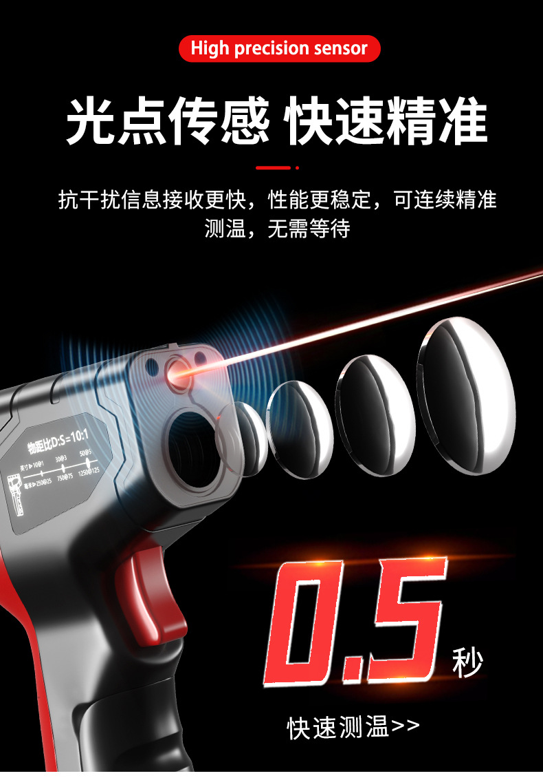 1. 非接触式测量:无需与被测物体直接接触,能够在不影响被测物体温度分布的情况下进行测量,适用于高温、危险或难以接近的物体。