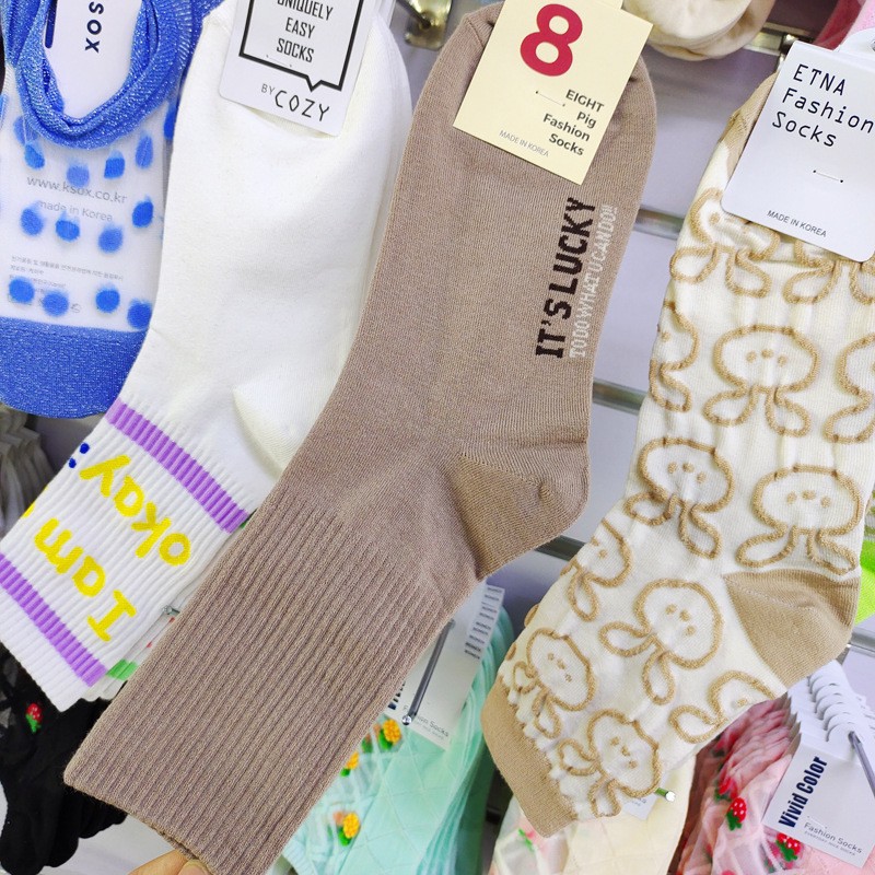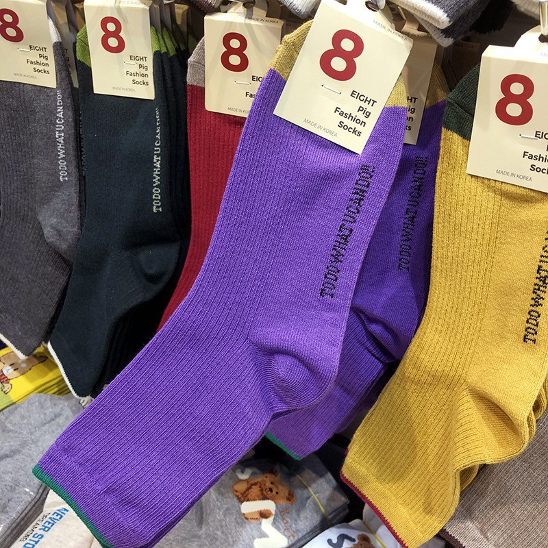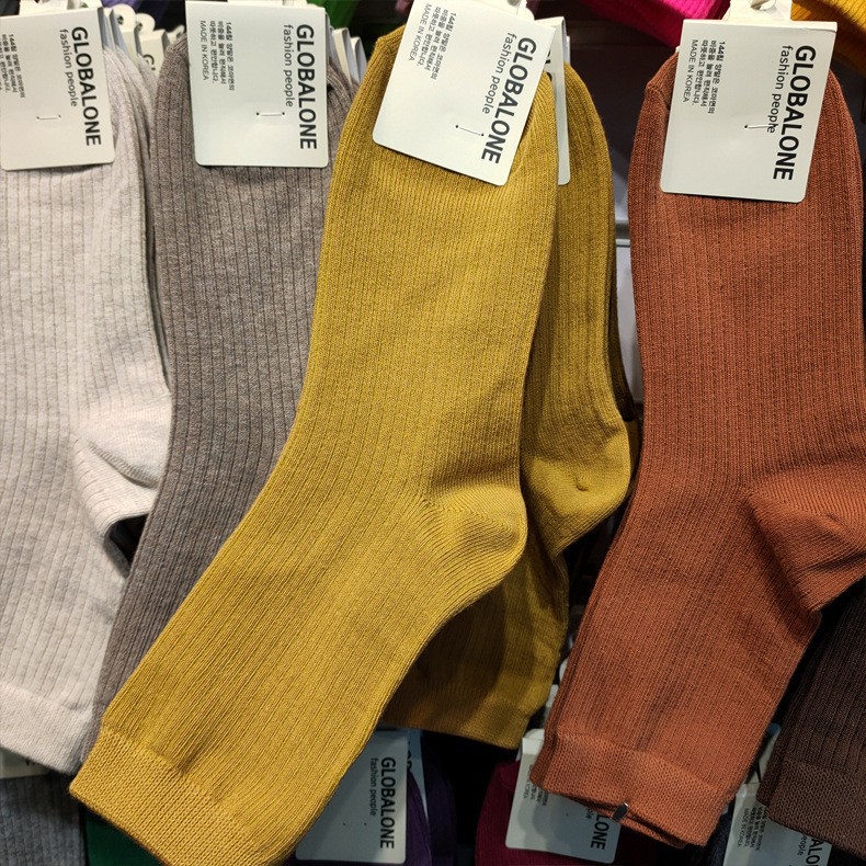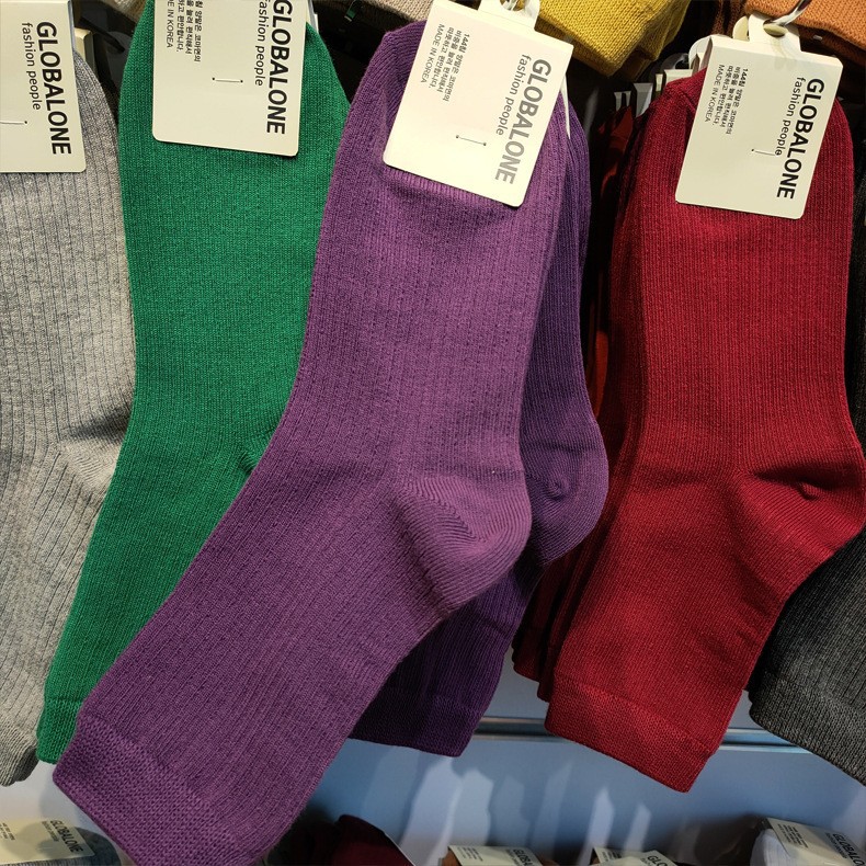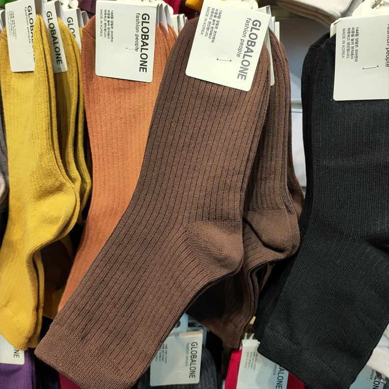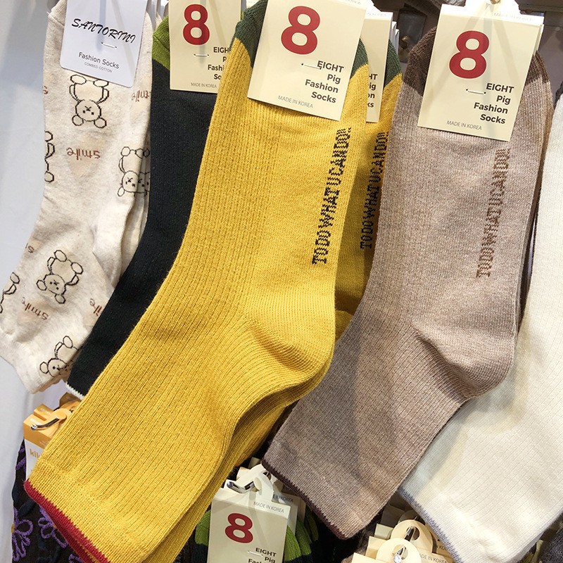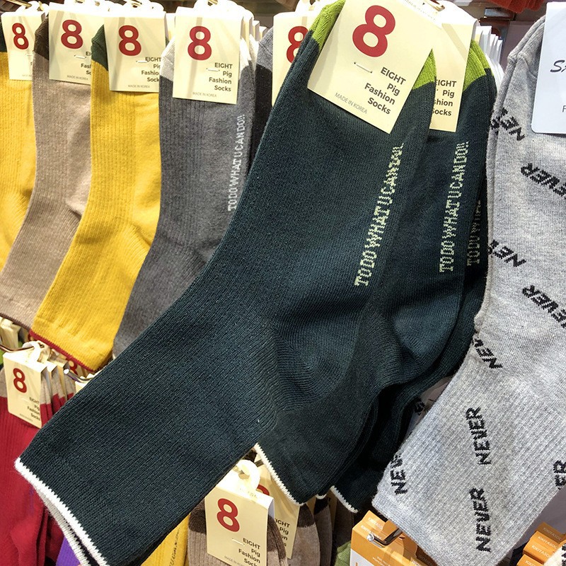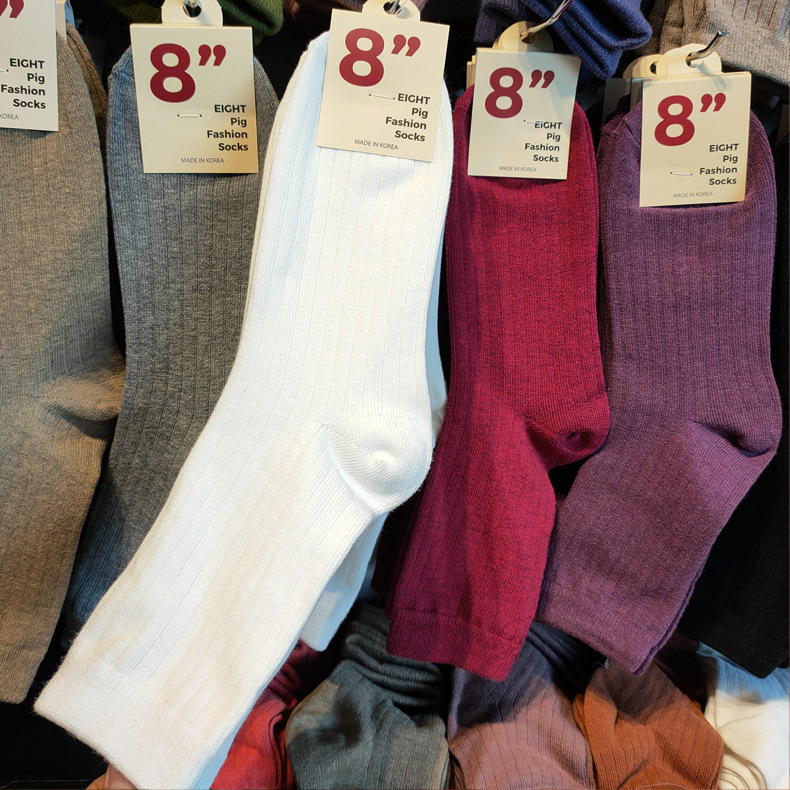 한국 양말 여자 양말 ETNA 파일 양말 이스트 게이트 가을과 겨울 따뜻한 색 단색 간단한 실 면화 양말 긴 튜브스토어 가기