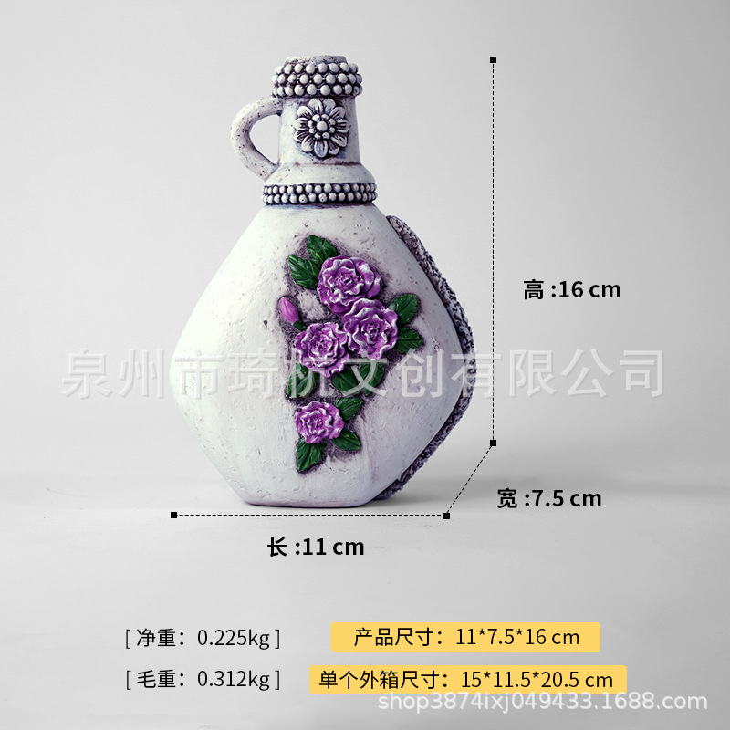 국경 간 뜨거운 판매 미국 빈티지 꽃병 장식품 거실 입구 침실 창조적 인 수지 꽃 삽화 장식품