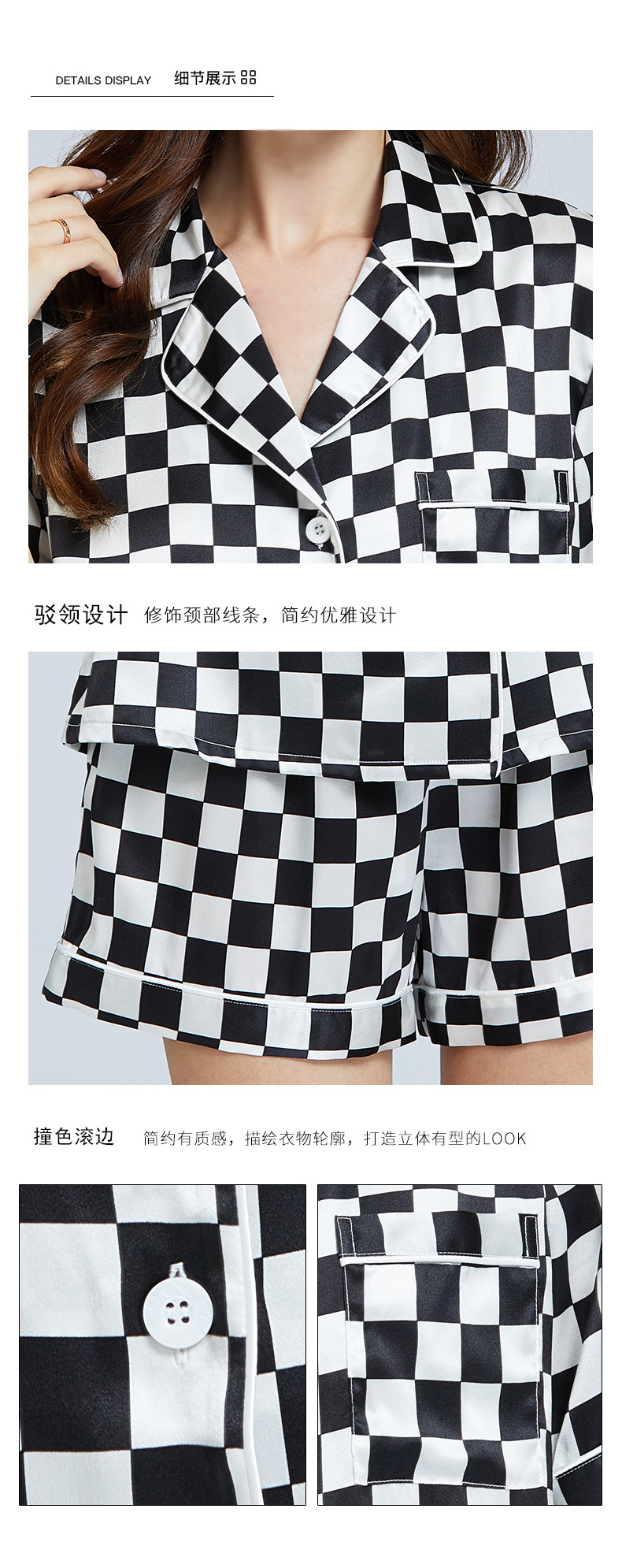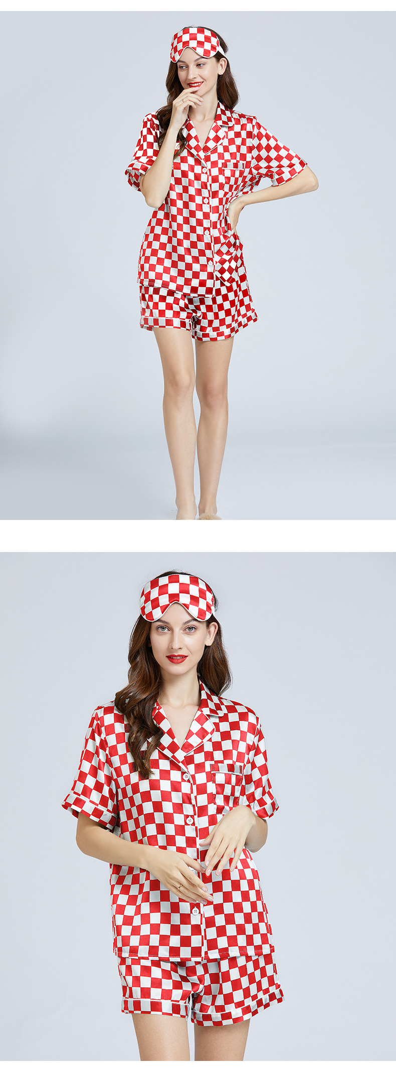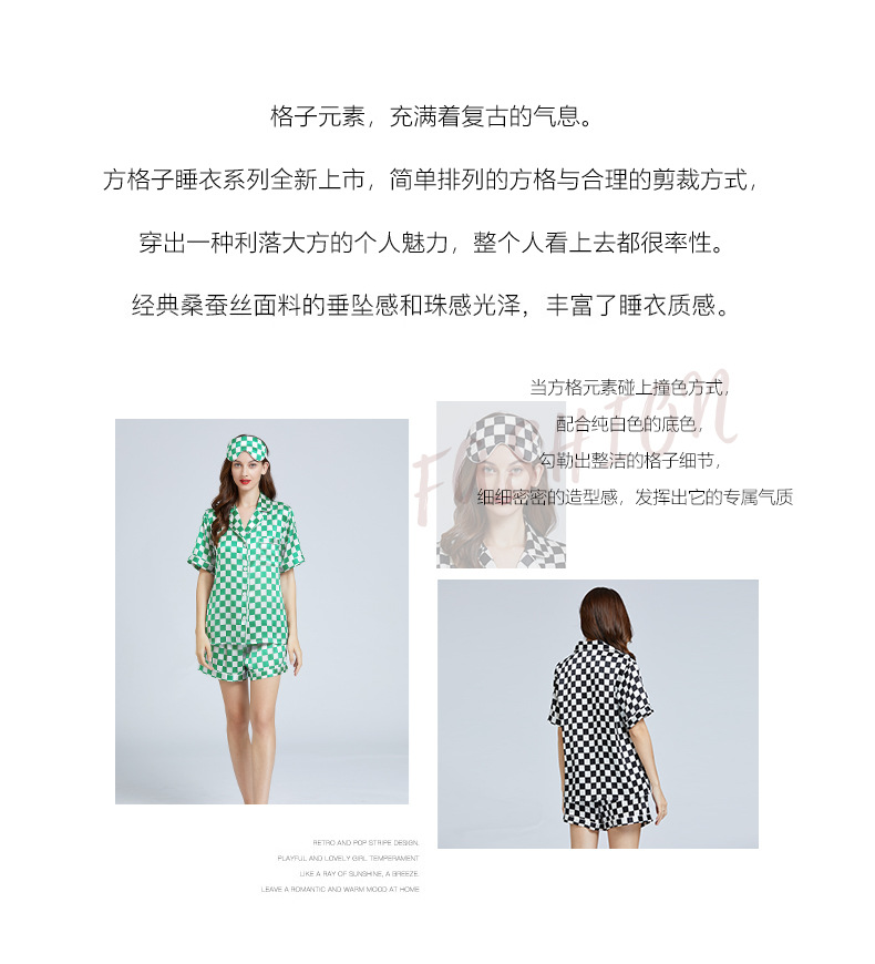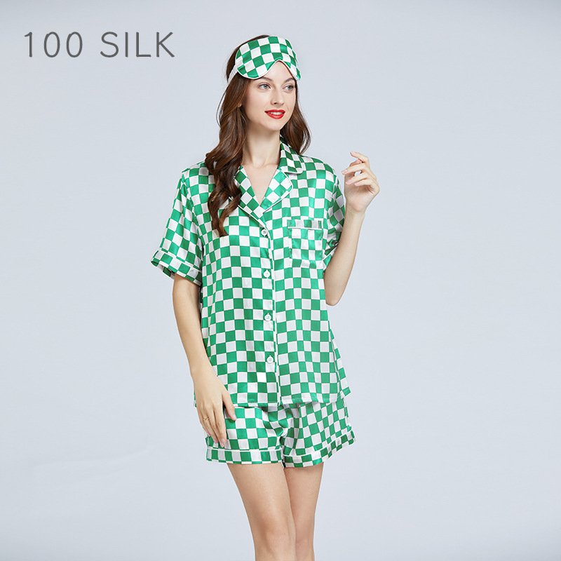 Cocoonie 새로운 프랑스 격자 무늬 잠옷 여자의 세트 19 mm 무거운 실크 잠옷 캐주얼 통기성 옷스토어 가기