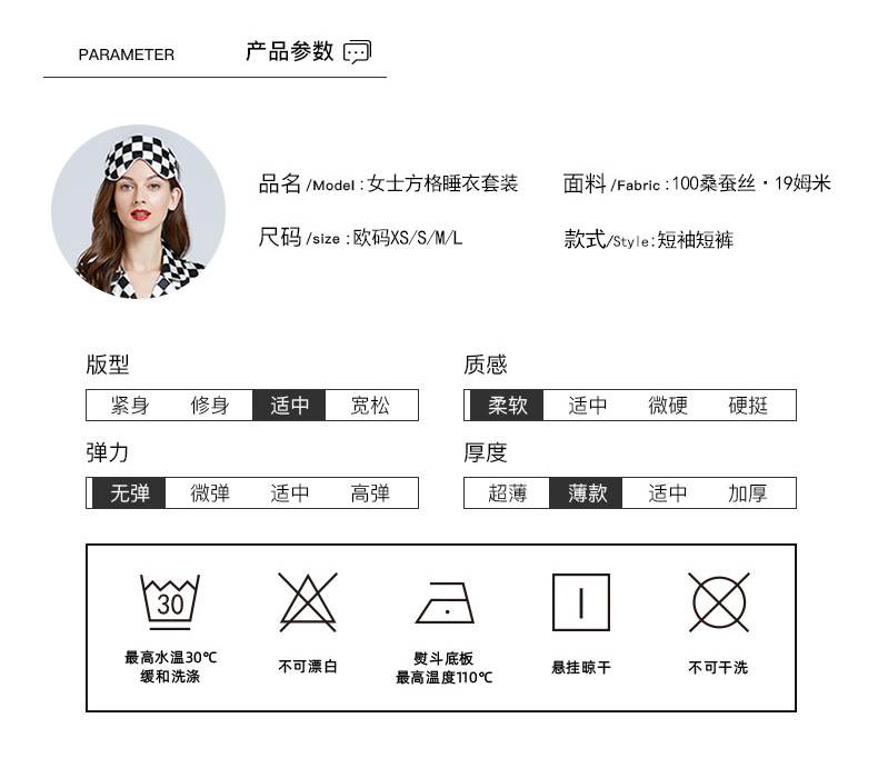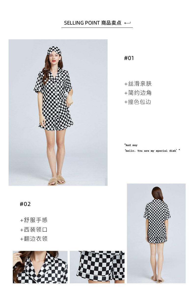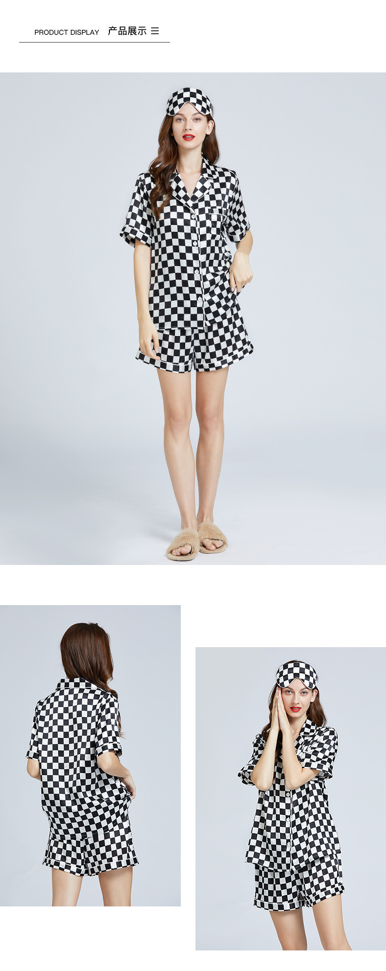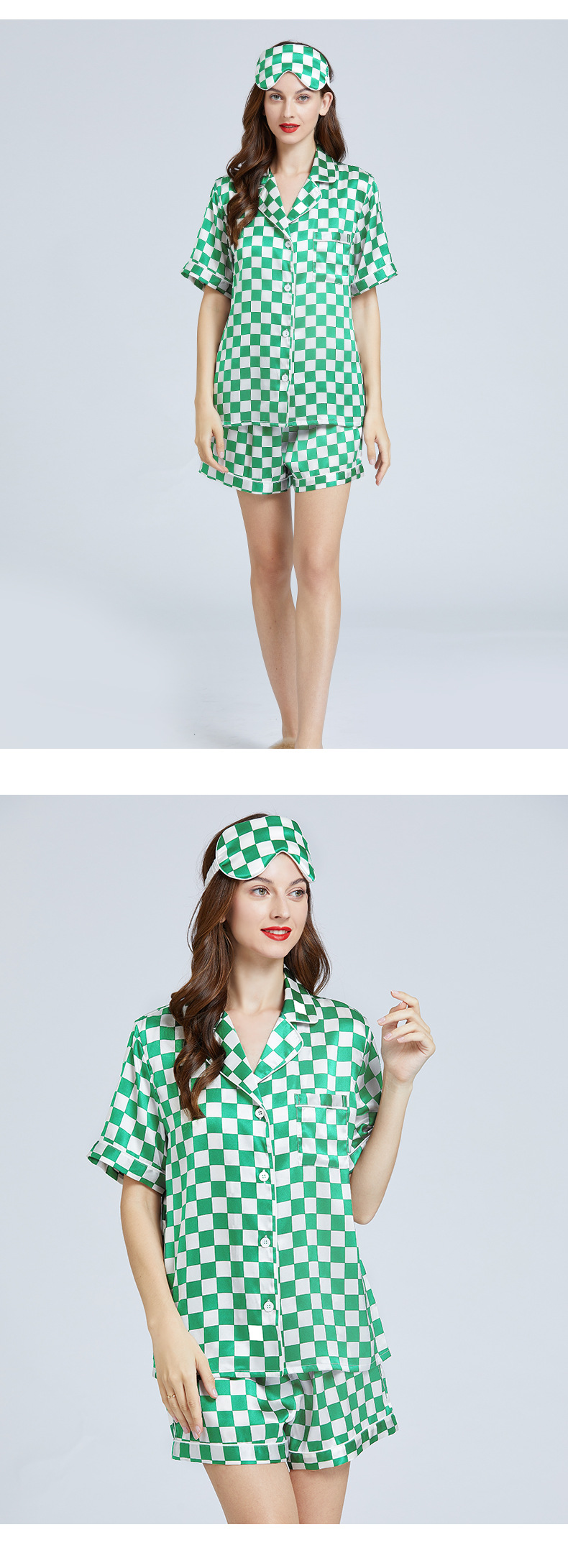Cocoonie 새로운 프랑스 격자 무늬 잠옷 여자의 세트 19 mm 무거운 실크 잠옷 캐주얼 통기성 옷스토어 가기