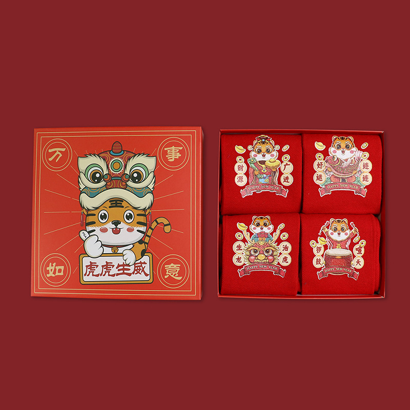 새해 모든 최고의 선물 상자 양말 올해 행운의 빨간 트렌드 만화 호랑이 튜브 양말 남성과 여성 커플스토어 가기