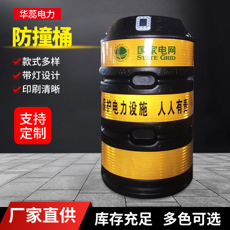 충돌 방지 배럴 전봇대 충돌 방지 배럴 플라스틱 반사 필름 도로 극 경고 배럴 라운드 충돌 방지 배럴