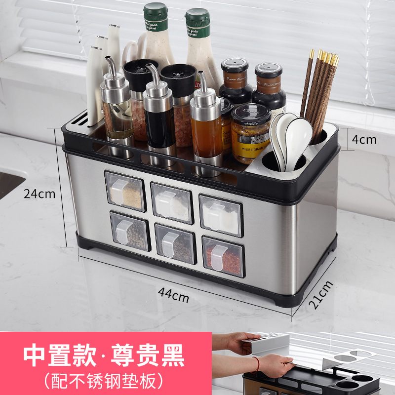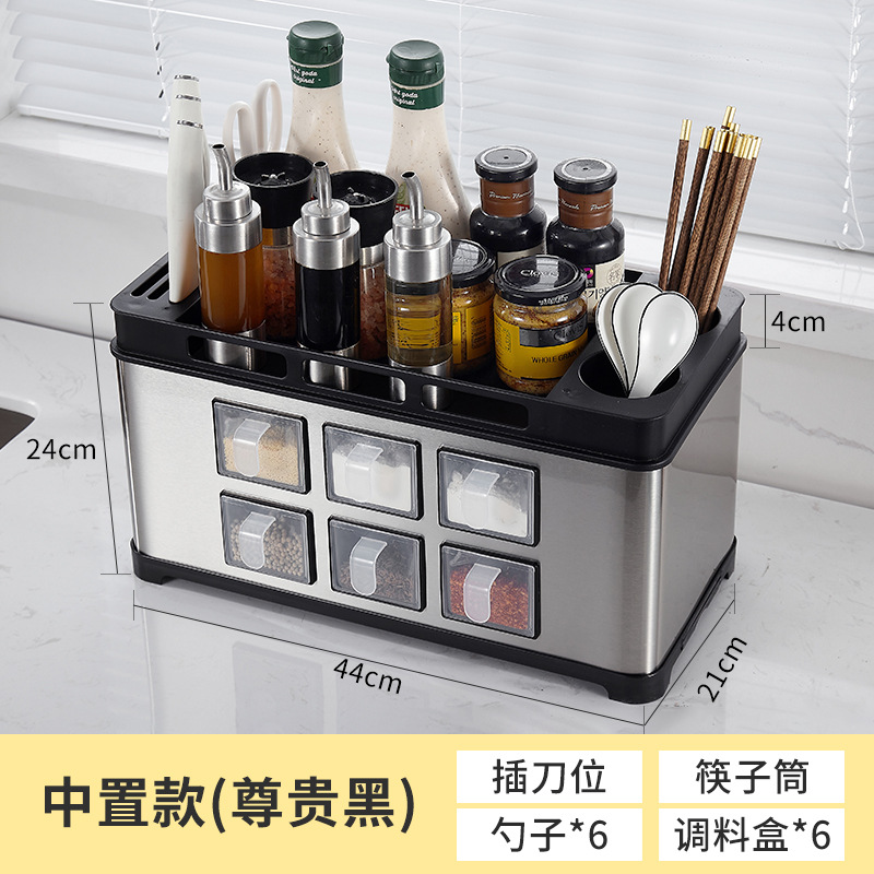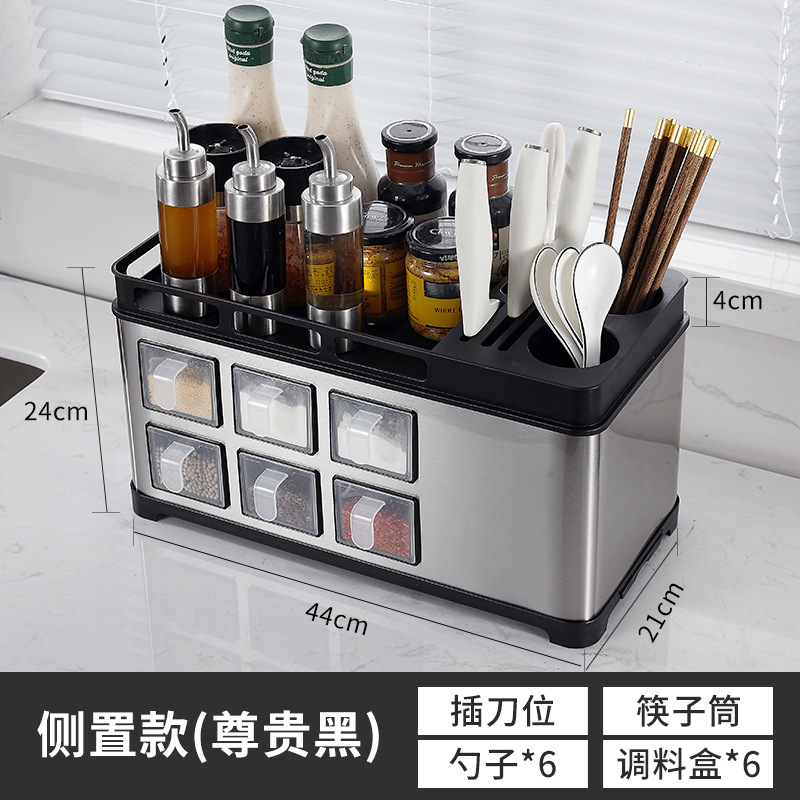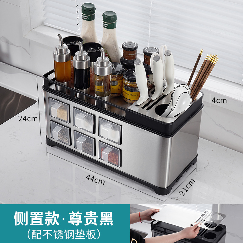 주방 조미료 보관함 세트 스테인레스 스틸 보관 랙 조미료 항아리 조리대 조미료 병 칼 홀더스토어 가기