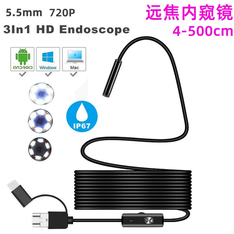 5.5mm 3 대 1 afocal 와이파이 내시경 720p HD 산업용 파이프 라인 자동차 검사 내시경 크로스 보더