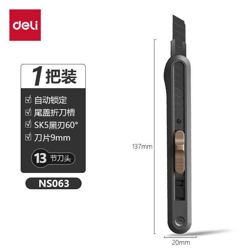 델리/델리 니우스 NS063 스몰 사이즈 합금 유틸리티 칼 상자 포장 풀기 익스프레스 칼 가정용 종이 커터 도구 칼스토어 가기