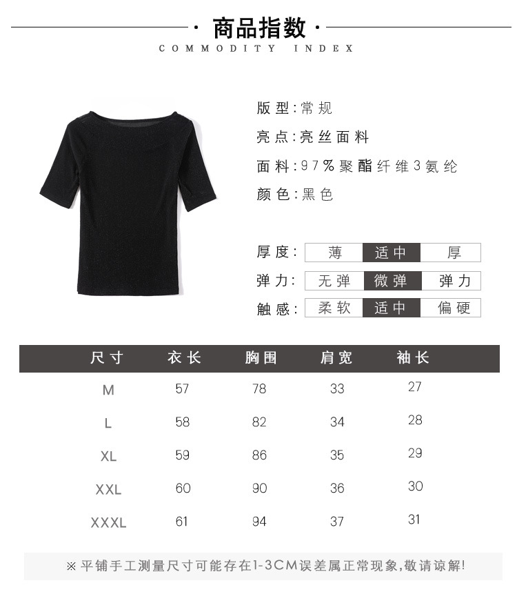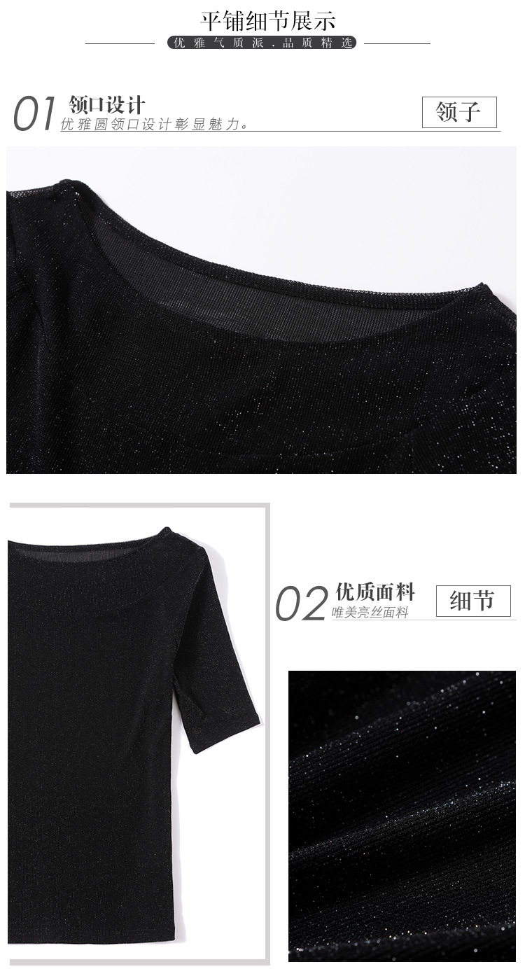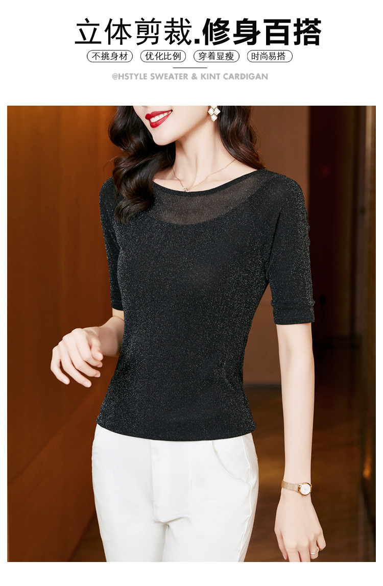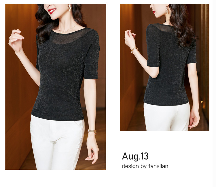2022 새로운 여름 클래식 다목적 블랙 원 라인 칼라 미드 슬리브 밝은 실크 메쉬 바닥 셔츠 슬림 슬림 티셔츠 여성용