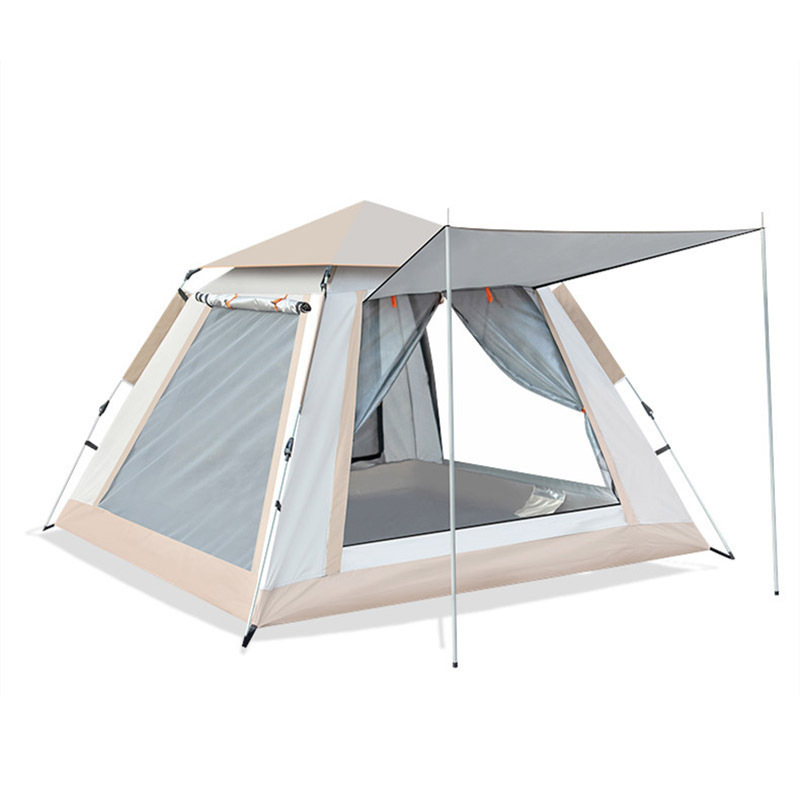 텐트 야외 완전 자동 4-5 인용 비치 퀵 오픈 캠핑 이중 방수 캠핑 텐트 2 개의 문과 4 개의 창문이 있습니다