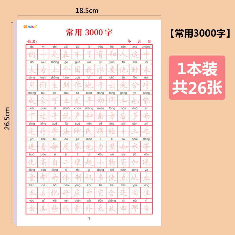 일반적으로 사용되는 3000 문자 연습 카피 북 성인 정사이즈 스크립트 복사 초등학생을위한 종이 Tian Zi Ge 하드 펜 서예 종이스토어 가기
