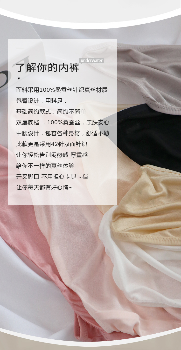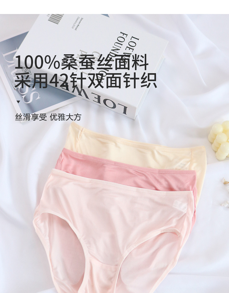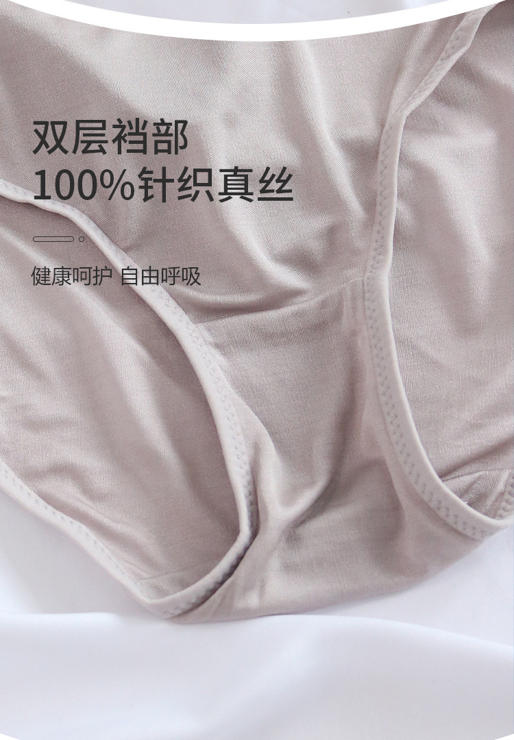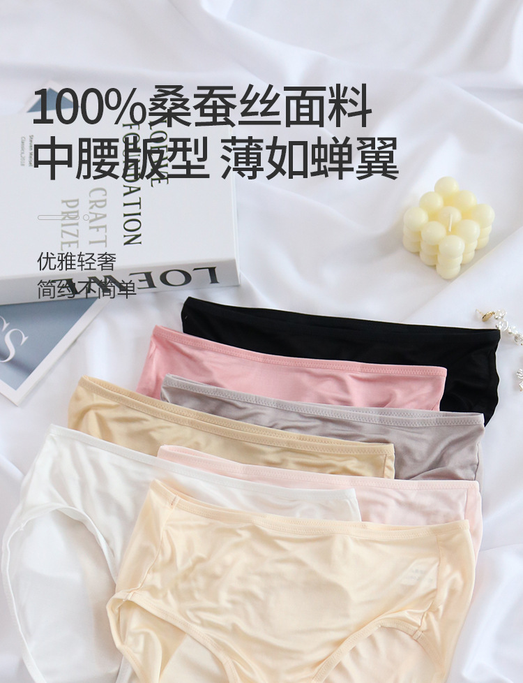 여성용 실크 미드 웨이스트 속옷 단색 기본 뽕나무 실크 브리프는 여성을위한 통기성 편안한 반바지스토어 가기