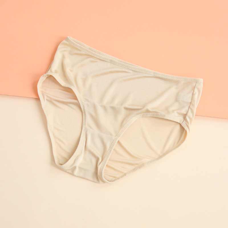 여성용 실크 미드 웨이스트 속옷 단색 기본 뽕나무 실크 브리프는 여성을위한 통기성 편안한 반바지