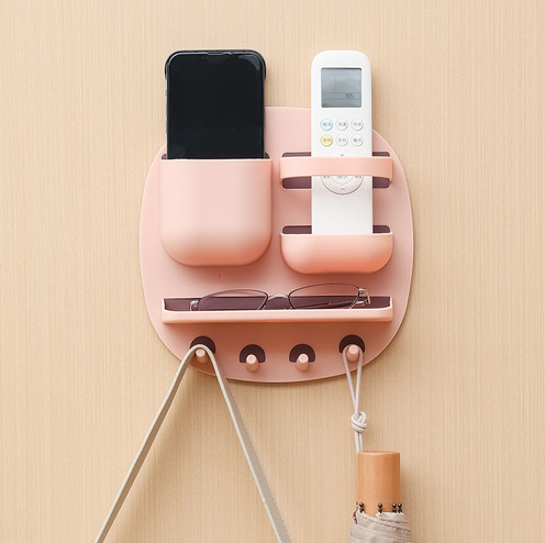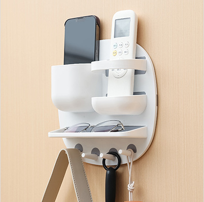 产品名称:壁挂卫浴三分格收纳架 带置物台四挂钩