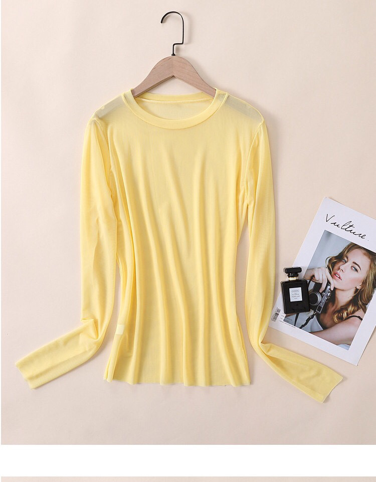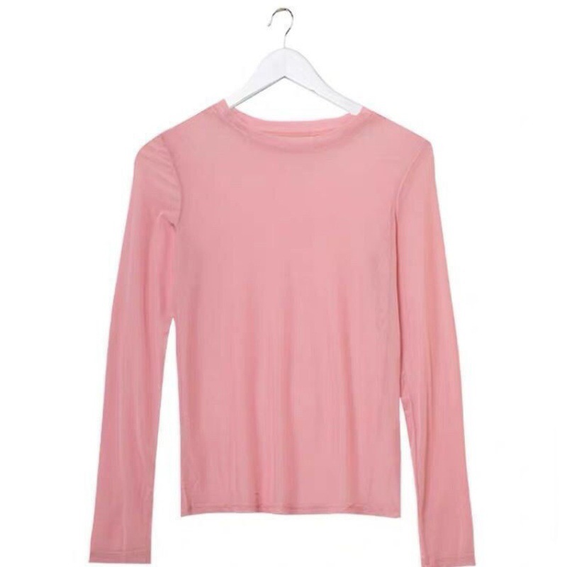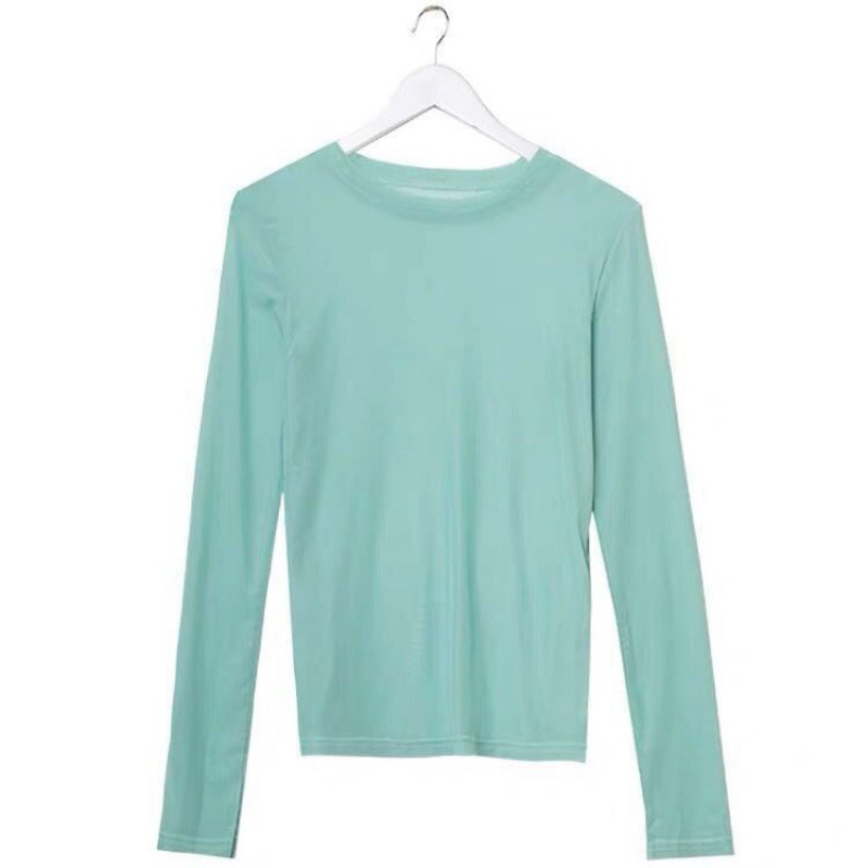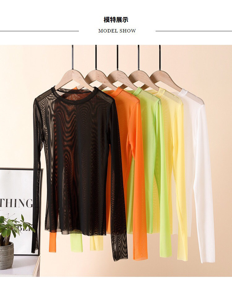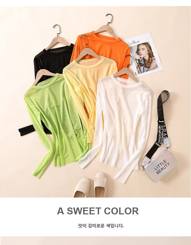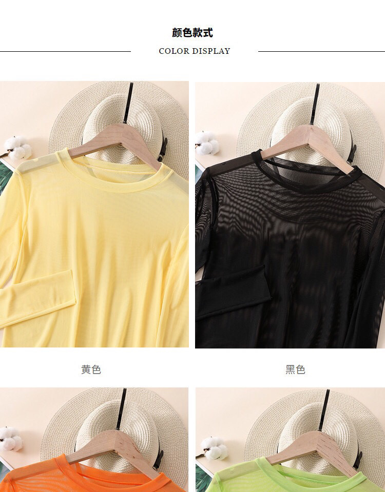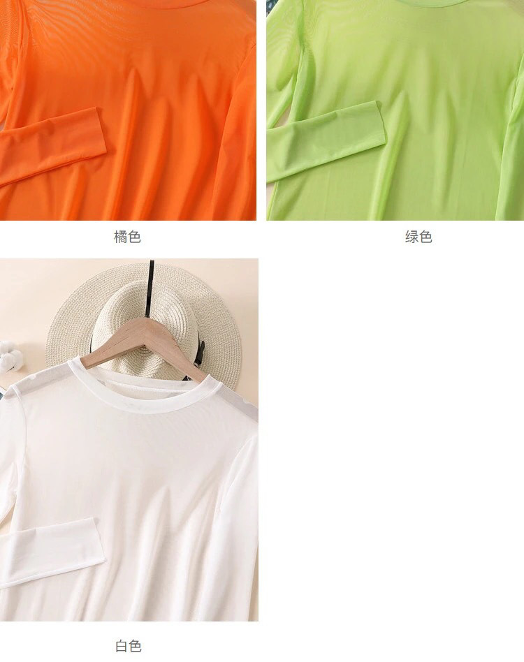 糖果色防晒衣女内搭冰丝网纱打底衫长袖T恤叠穿上衣2021夏季薄款