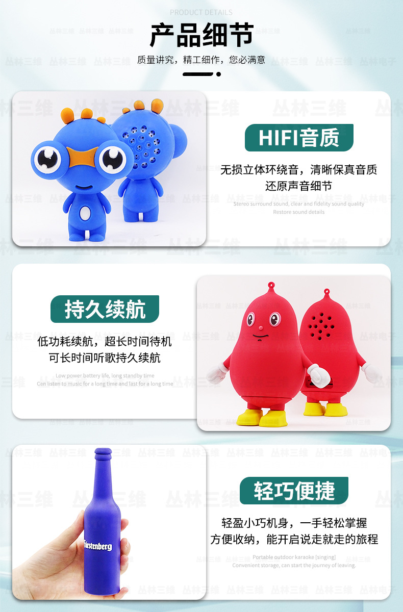 关于定制:非保密案例产品可免费发客户参考,敬请联系!本厂主要生产定制创意和卡通类的U盘、充电宝、音箱、灯类、挂饰和摆件公仔、无线充、充电线等产品,定制个性外形和功能,外壳材质主要为本厂具有源头生产优势的PVC软胶、硅胶、塑胶、搪胶等,具体请咨询业务人员;
