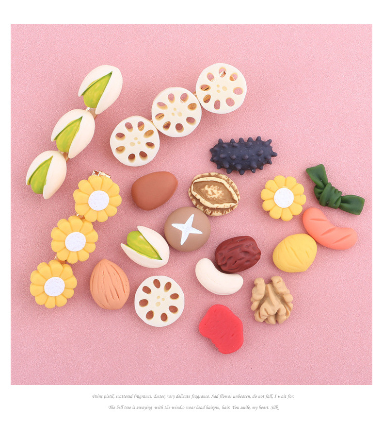 시뮬레이션 음식 피스타치오 캐슈 호두 바다 오이 버섯 전복 다시마 인형 집 장식품 머리핀 헤드 라인 장식