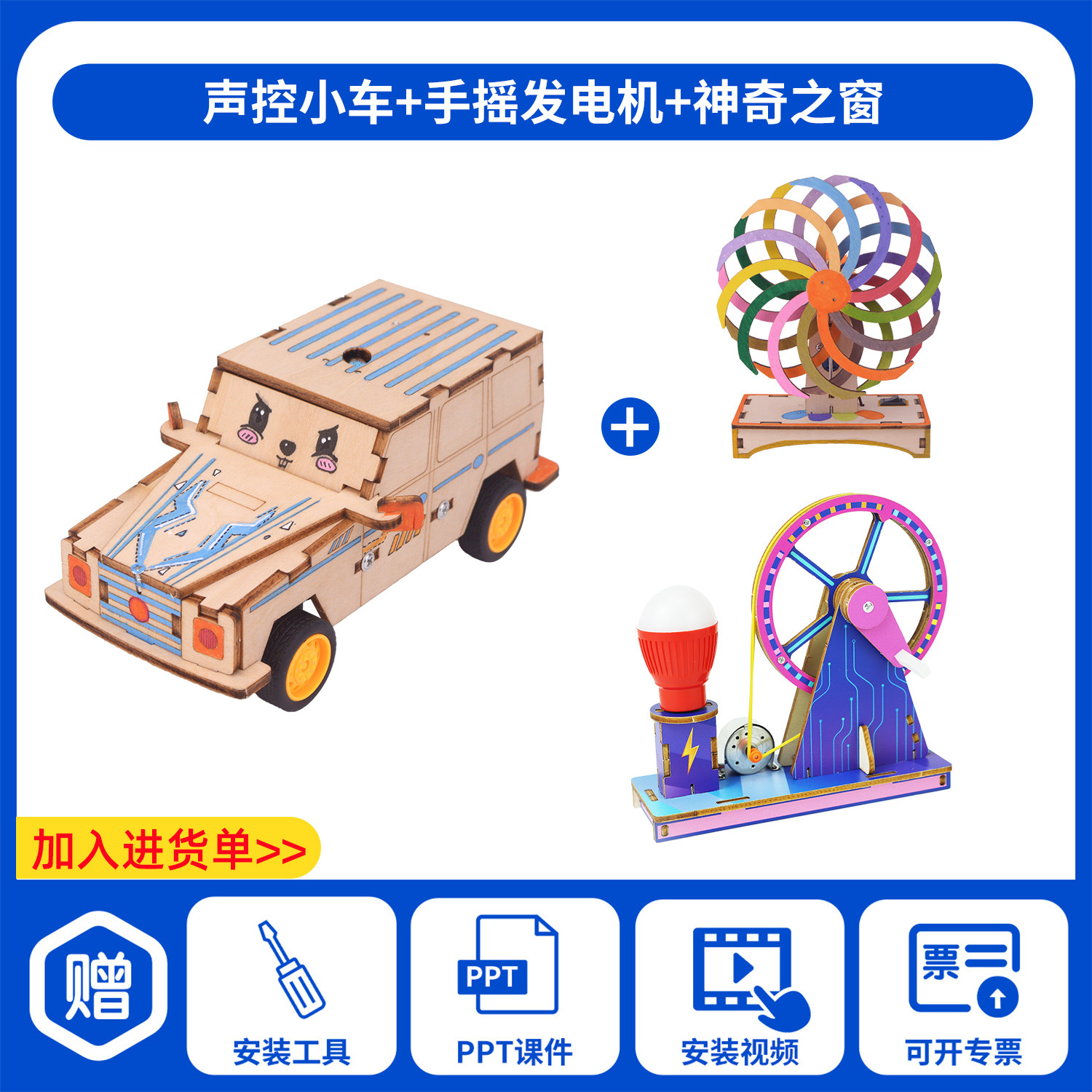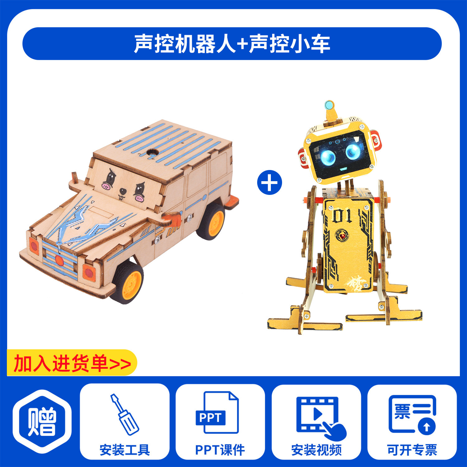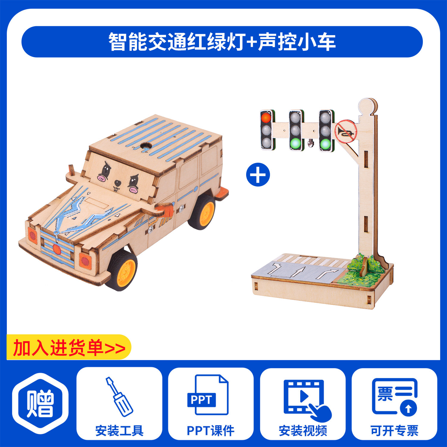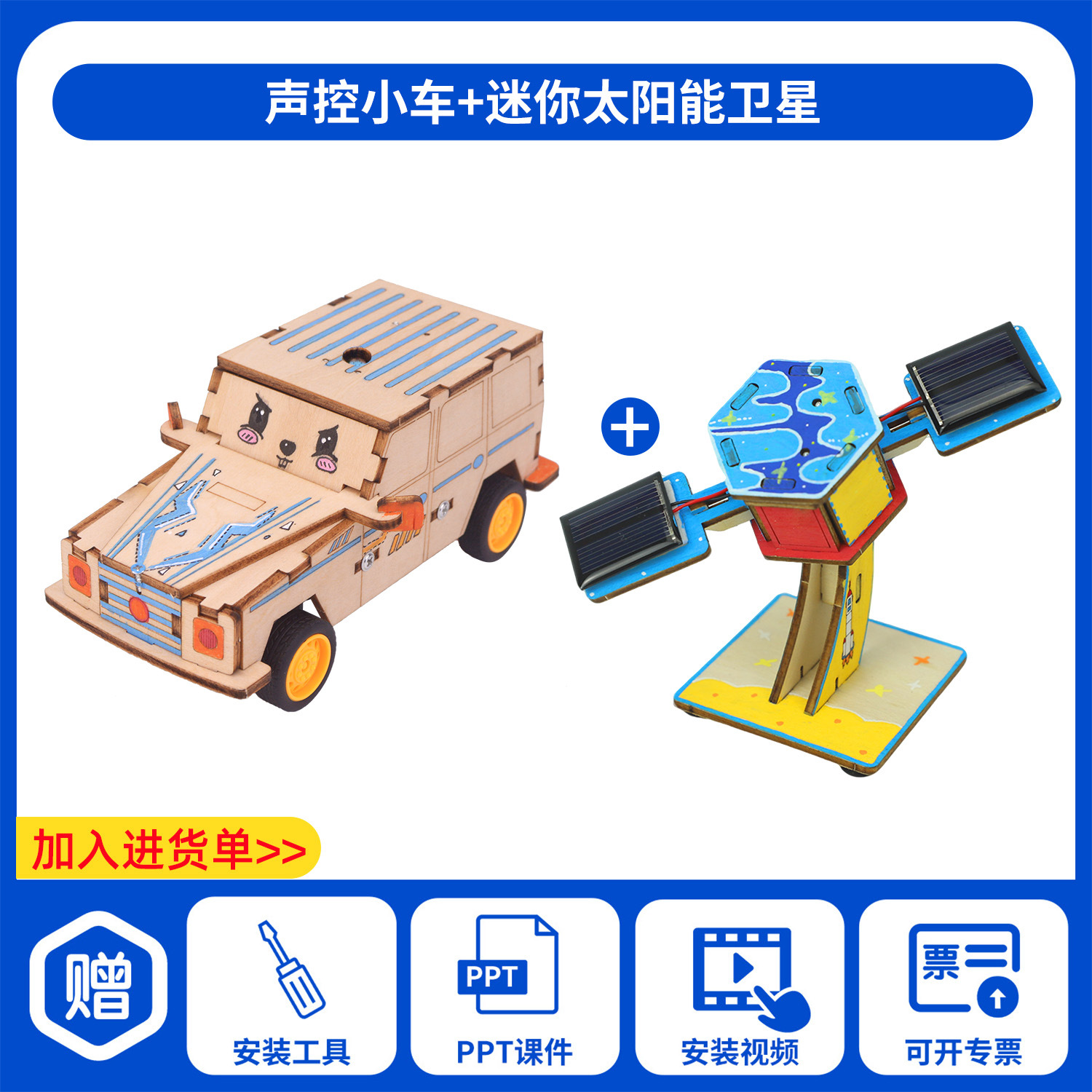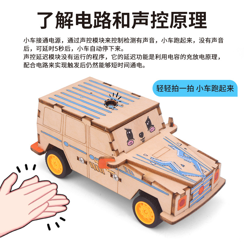 과학 기술 작은 생산 발명 diy 음성 제어 전기 자동차 손으로 조립 초등학교 학생 장난감 과학 실험 교육 보조스토어 가기